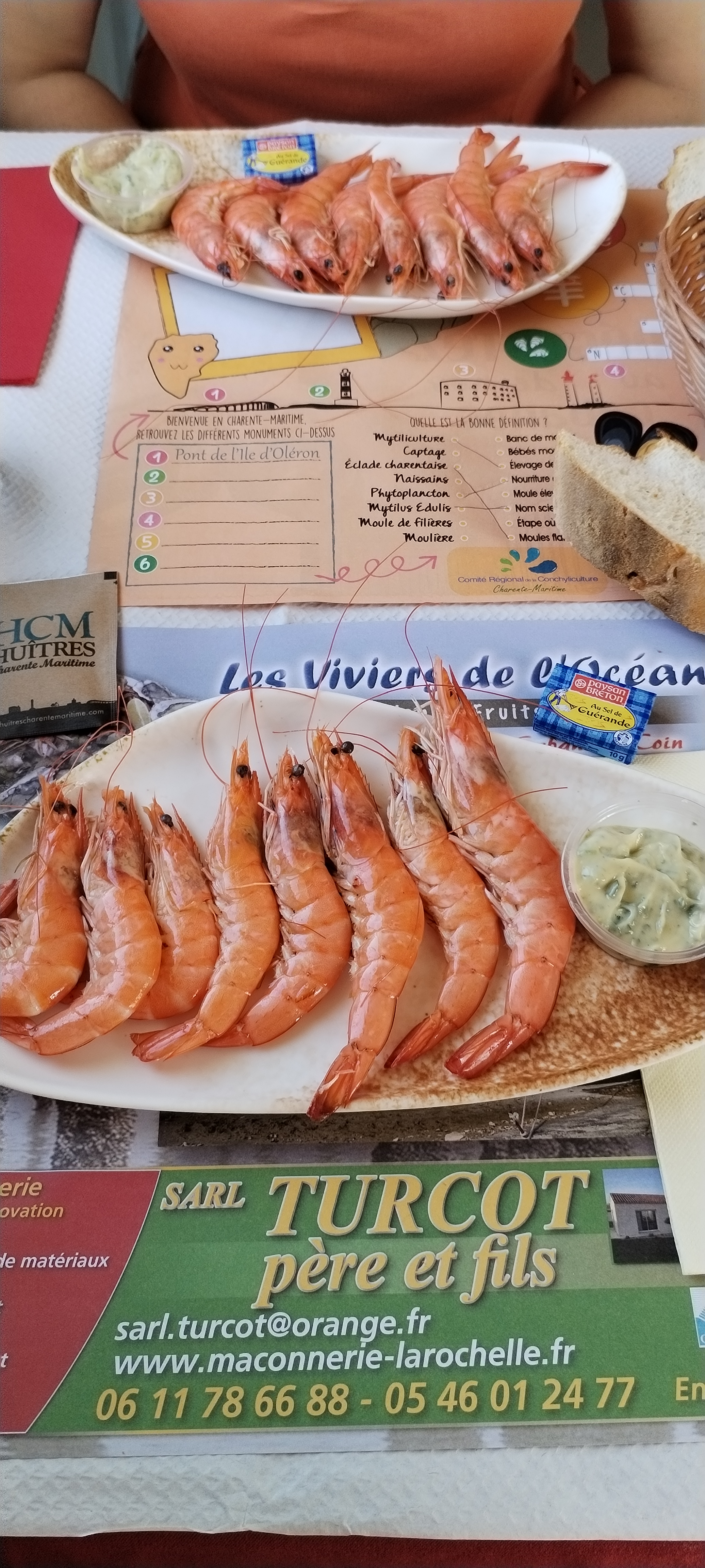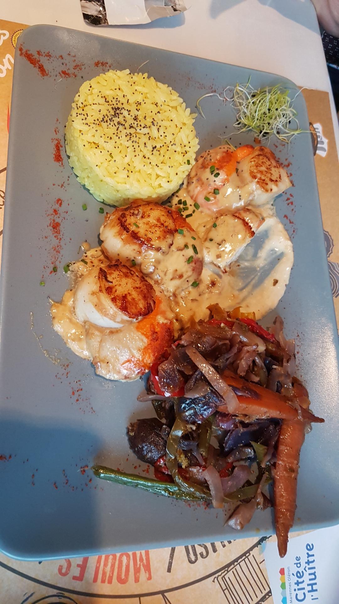 Excellent cadre, fruit de mer super frais avec plein de saveur même sans sauce. Rapport qualité prix top! Sans oublier l’accueil chaleureux du personnel, contrairement aux certains de La Rochelle.
