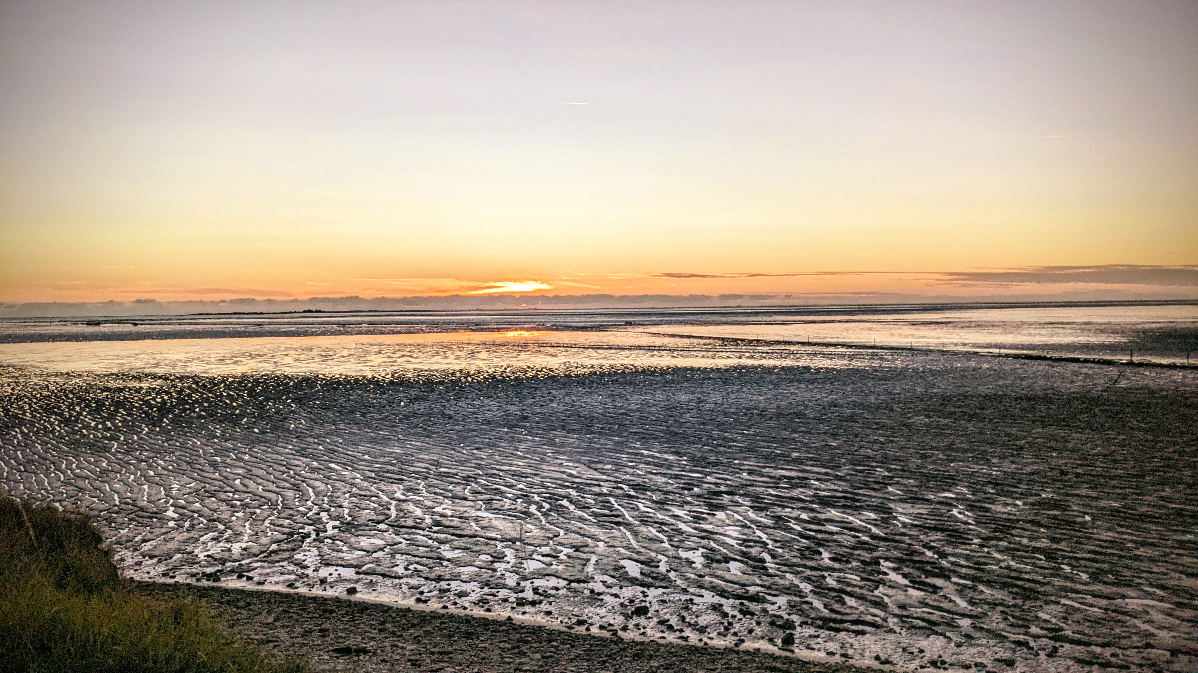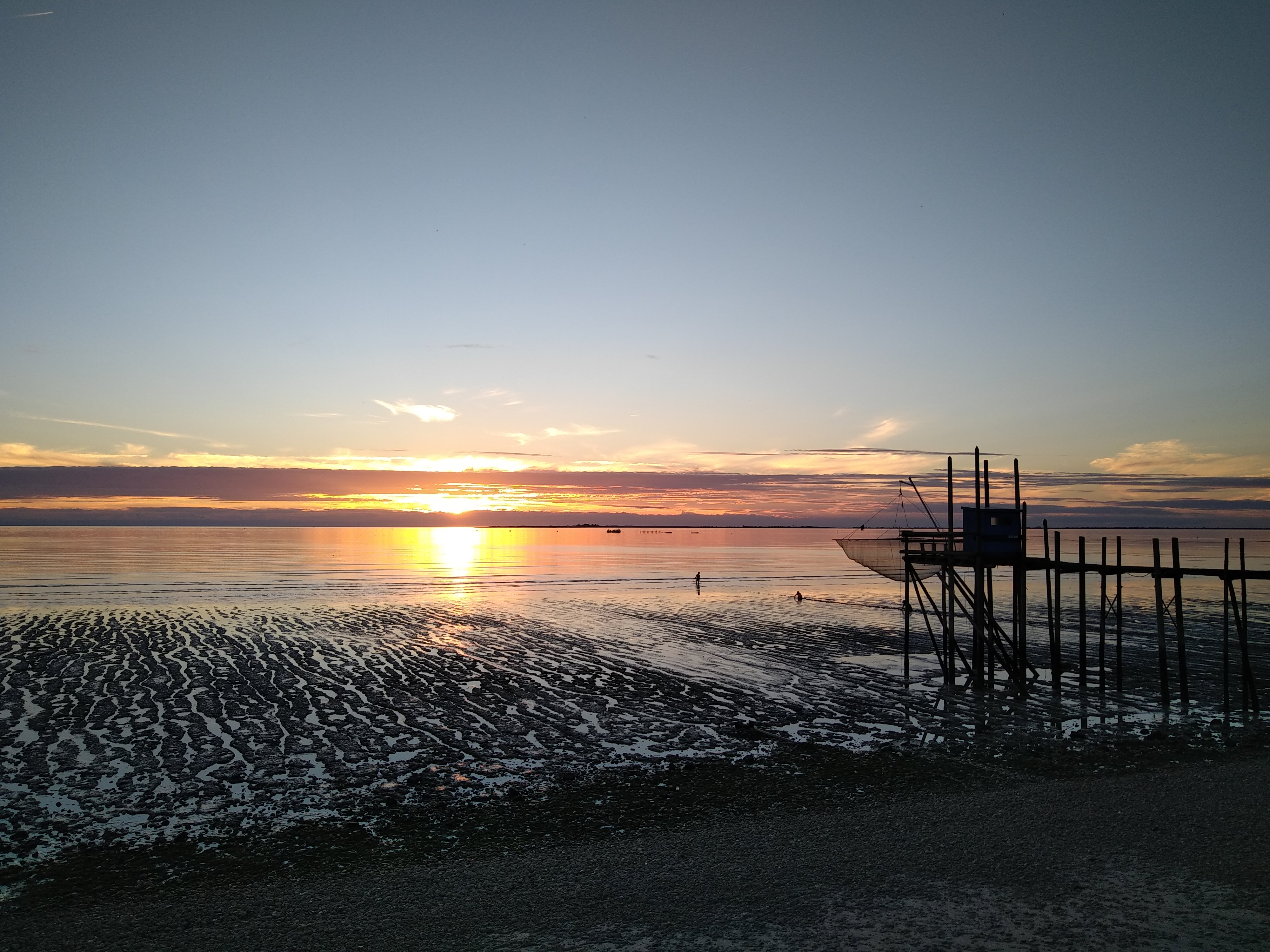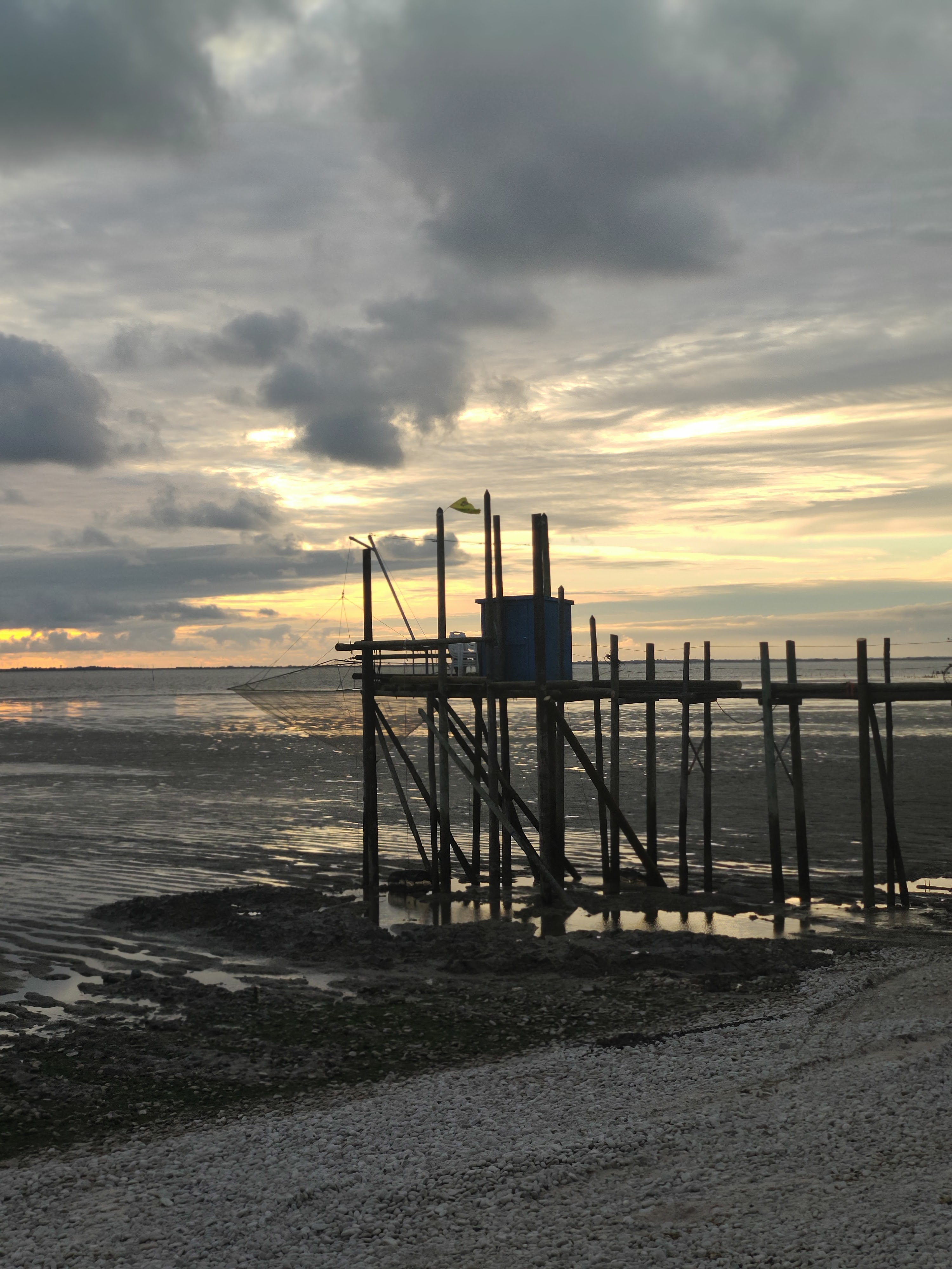 Je n ai pas pris de photos de mes plats et je m en excuse mais les moules et huitres étaient très bonnes. J ai vu passé un demi tourteau dans l assiette d un voisin de table et j avoue qu il a faillit me faire regretter mes moules mais du coup on reviendra. Alors je n ai pas pris de photo mais pour une bonne raison. Le spot est hallucinant !!. En face de la mer nous étions dans la petite terrasse a l abris du vent et au chaud malgré le vent nous en avons pris plein les mirettes et c est vers le coucher de soleil que mon appareil s est tourné. Les carrelets, la plage, le coucher de soleil, des fruits de mer bien frais bref une super soirée dont on ne peut se lasser. L accueil est très sympathique malgré mon arrivée maladroite avec un verre par terre en moins de 5mn. Un grand merci pour ce superbe endroit.