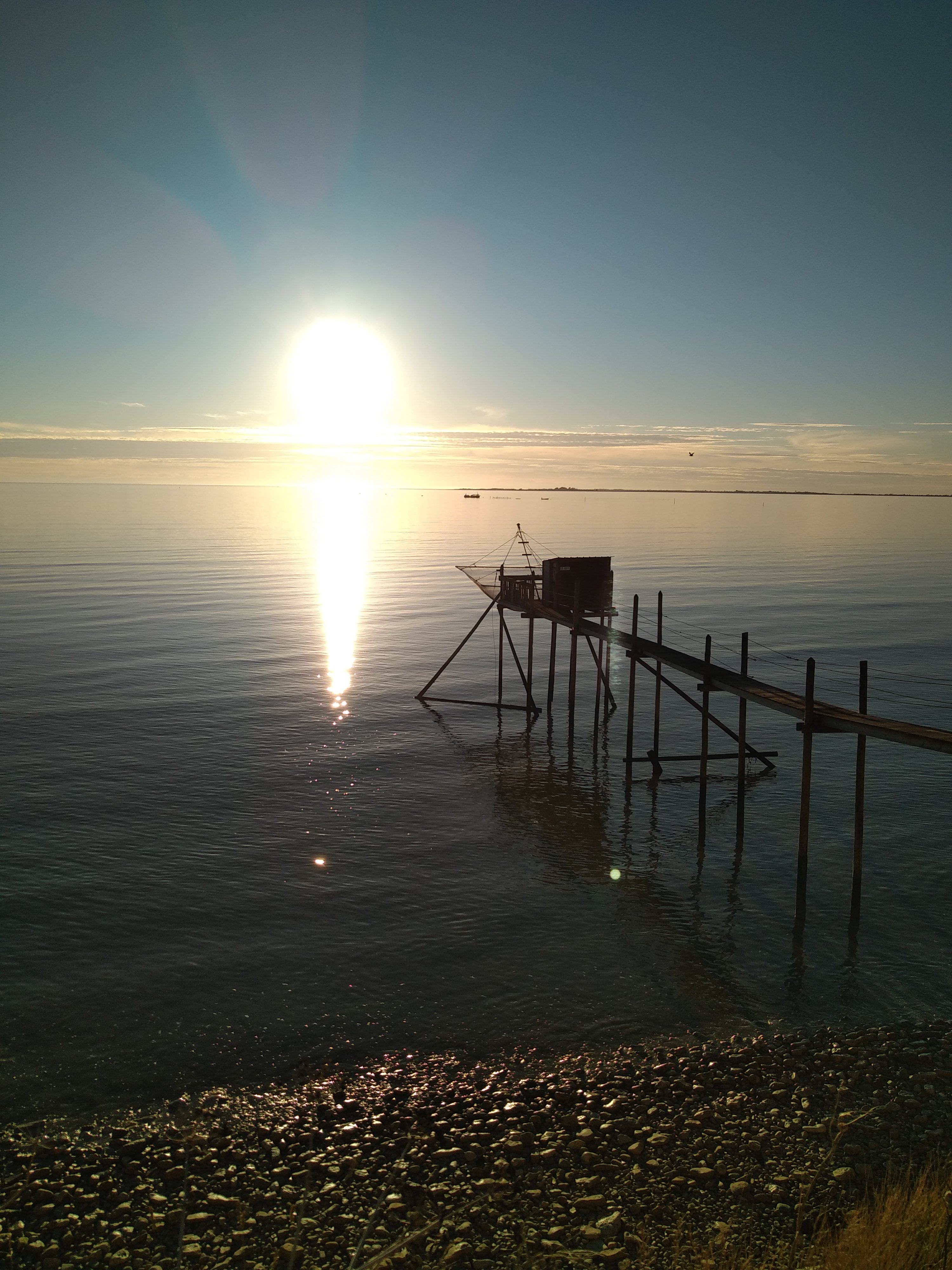 Ambiance sympathique repas correct Site très jolie, photo du coucher de soleil avec les carrelets et leurs petits cabanes superbes. Jolie vu sur la baie de l'aiguillon Et promenade le long de la côte très sympa A faire