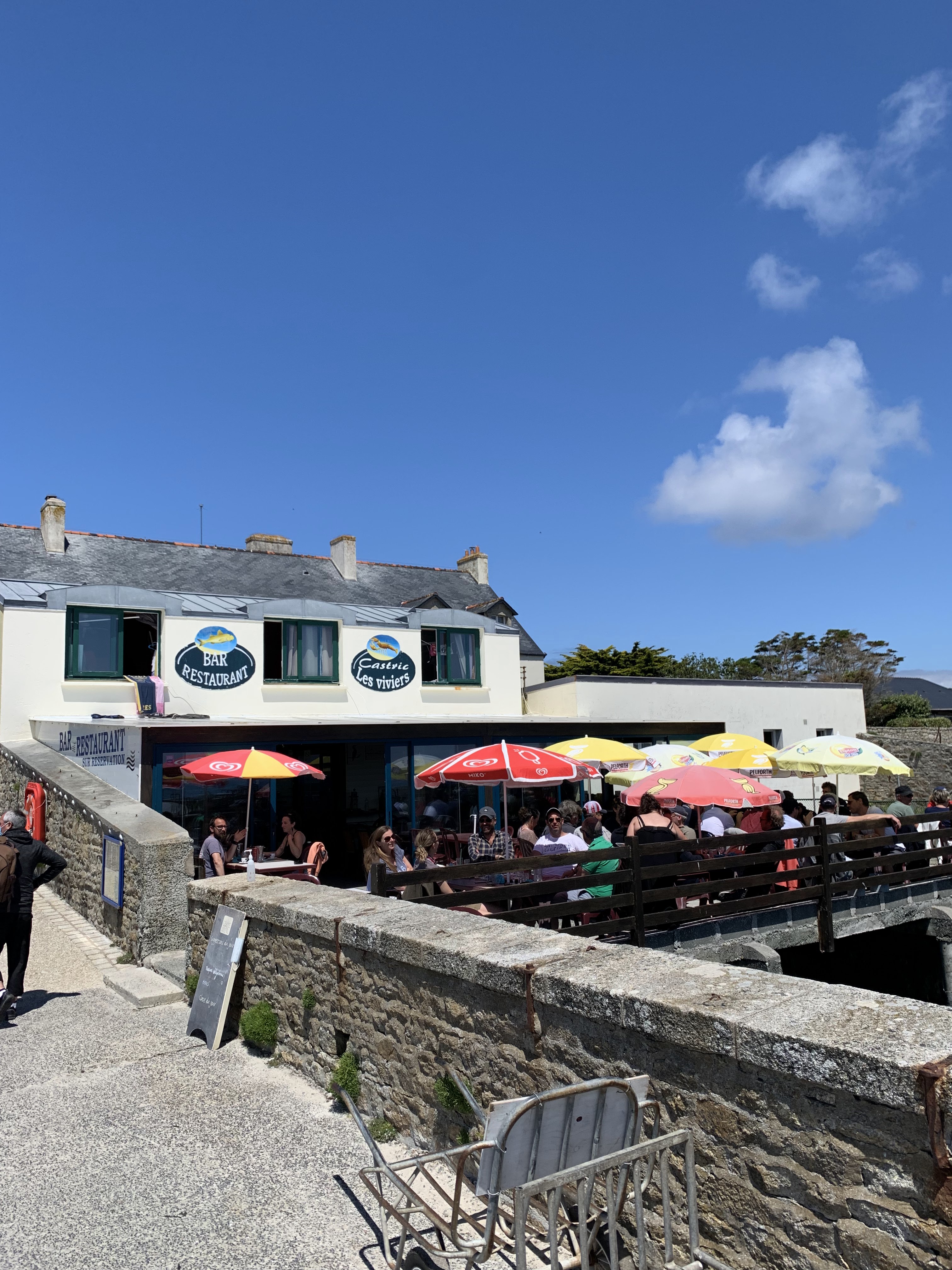 Au menu en ce 4 septembre 2020 : soupe de poissons, un délice + crabe bien plein, une tuerie et pour finir, far breton ! Prix correct malgré que nous soyons sur des îles. Personnel sympathique ! Vraiment, une belle journée.