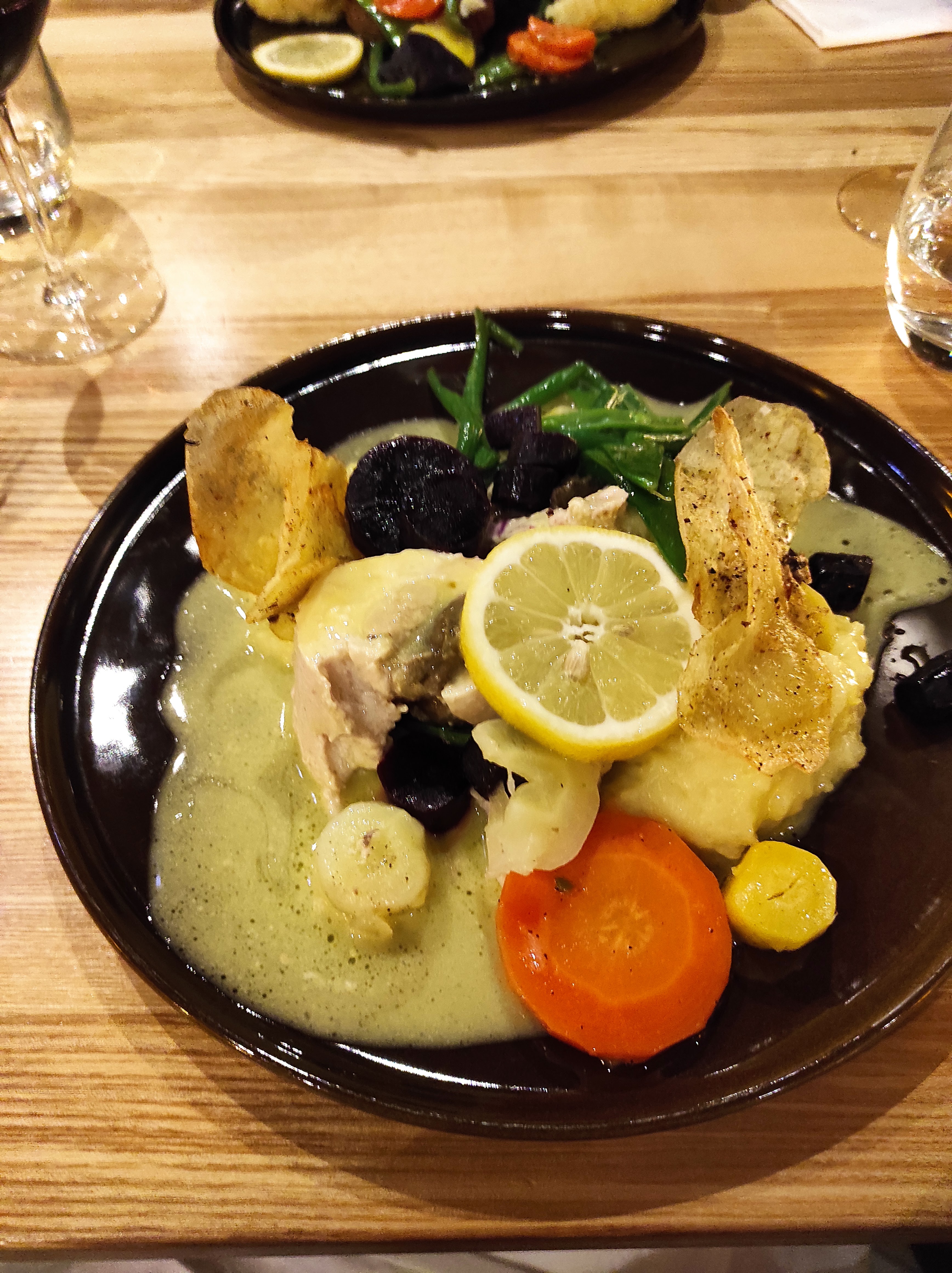 La cuisine est très bonne et soignée et à hauteur de la gamme de prix. Le serveurs sont attentifs et aimables mais sont hélas mal formés aux codes de la restauration haut de gamme. L'aménagement de l'intérieur casse tout, on a l'impression de se retrouver dans un modèle type d'Ikea, ce qui n'est pas cohérent à mon sens avec l'image d'un restaurant qui souhaite tendre vers de la haute cuisine, surtout pour un emplacement dans un centre-ville typique.