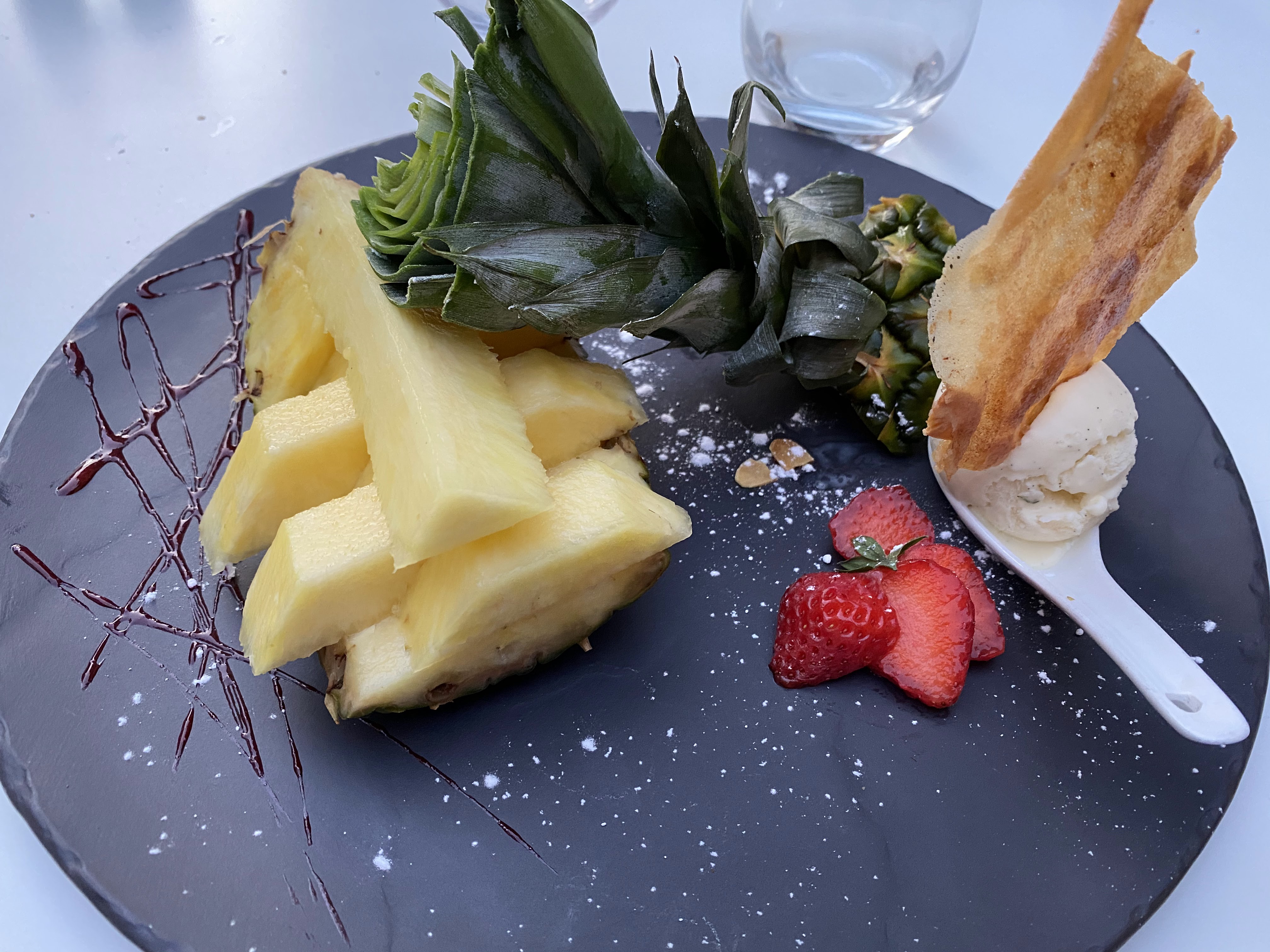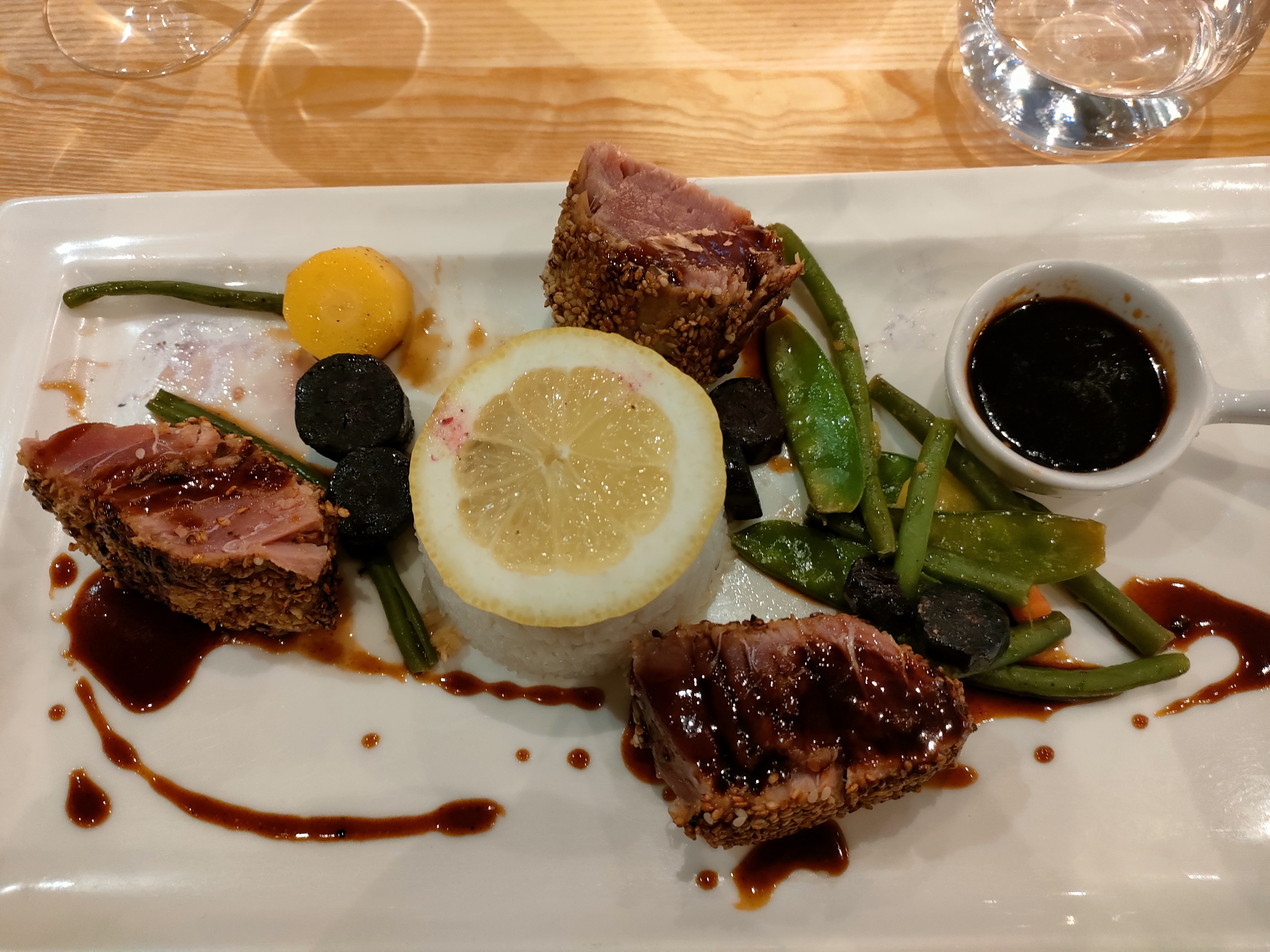 Plats très bien presenté, équilibrés et très bons, on sent des produits frais et bien travaillé. Le personnel était vraiment sympa, souriant et de bons conseils, malgré un riz au veau très fort, le repas s'est très bien déroulé, le soufflé glacé est juste excellent!