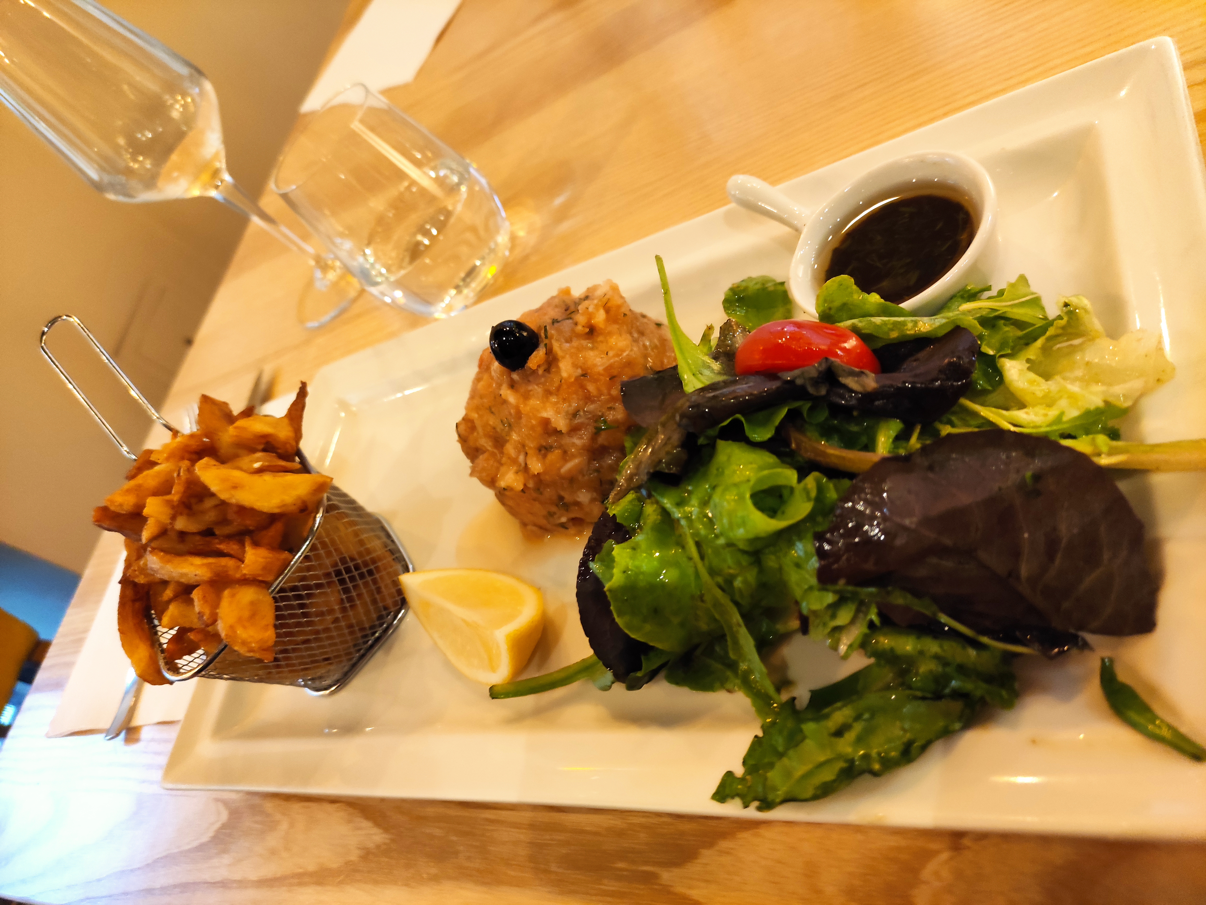 A fuir !!! Nous ne recommandons absolument pas cette adresse...ma compagne a eu droit à un tartare de saumon avarié avec du poisson pas frais, reparti en cuisine !!! Et même pas une excuse du personnel... Forcément, continuer le repas après cette expérience est un peu difficile... Une negligeance pareille peut être assimilée à une véritable FAUTE PROFESSIONNELLE... C'était la 1ère fois dans ce restaurant et la dernière, assurément !!! Établissement largement surcôté, je vous le déconseille fortement...
