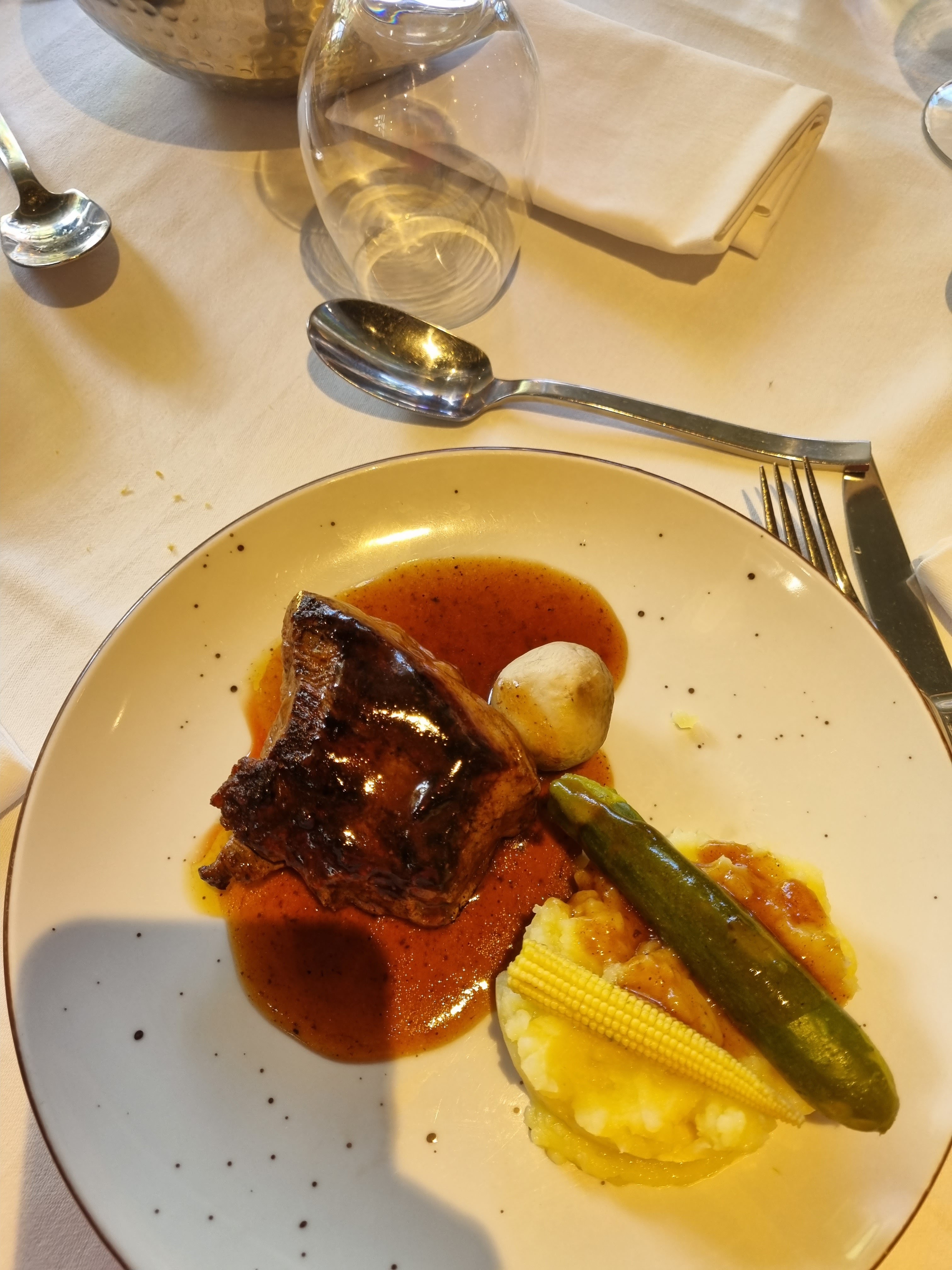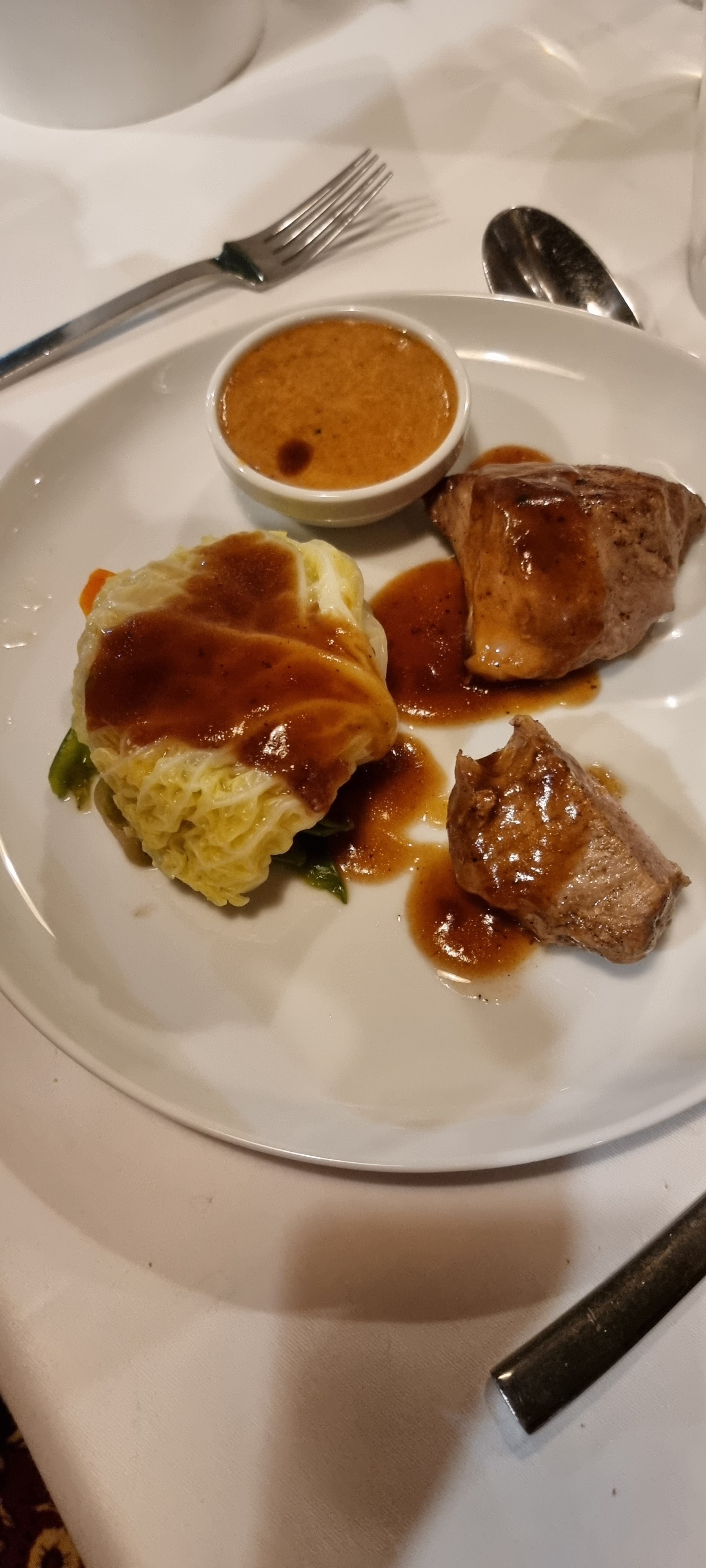 J'ai été déçu par le filet de bœuf Rossini et ses légumes, Les haricots vert étaient trop grillés, la tranche de foie poêlée vraiment petite pour 5€ de plus, dommage
