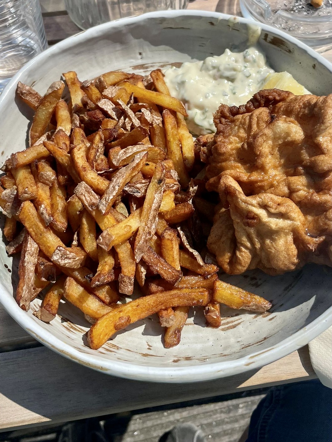 Excellent fish&chips et emplacement formidable en bord de mer Dog friendly +++