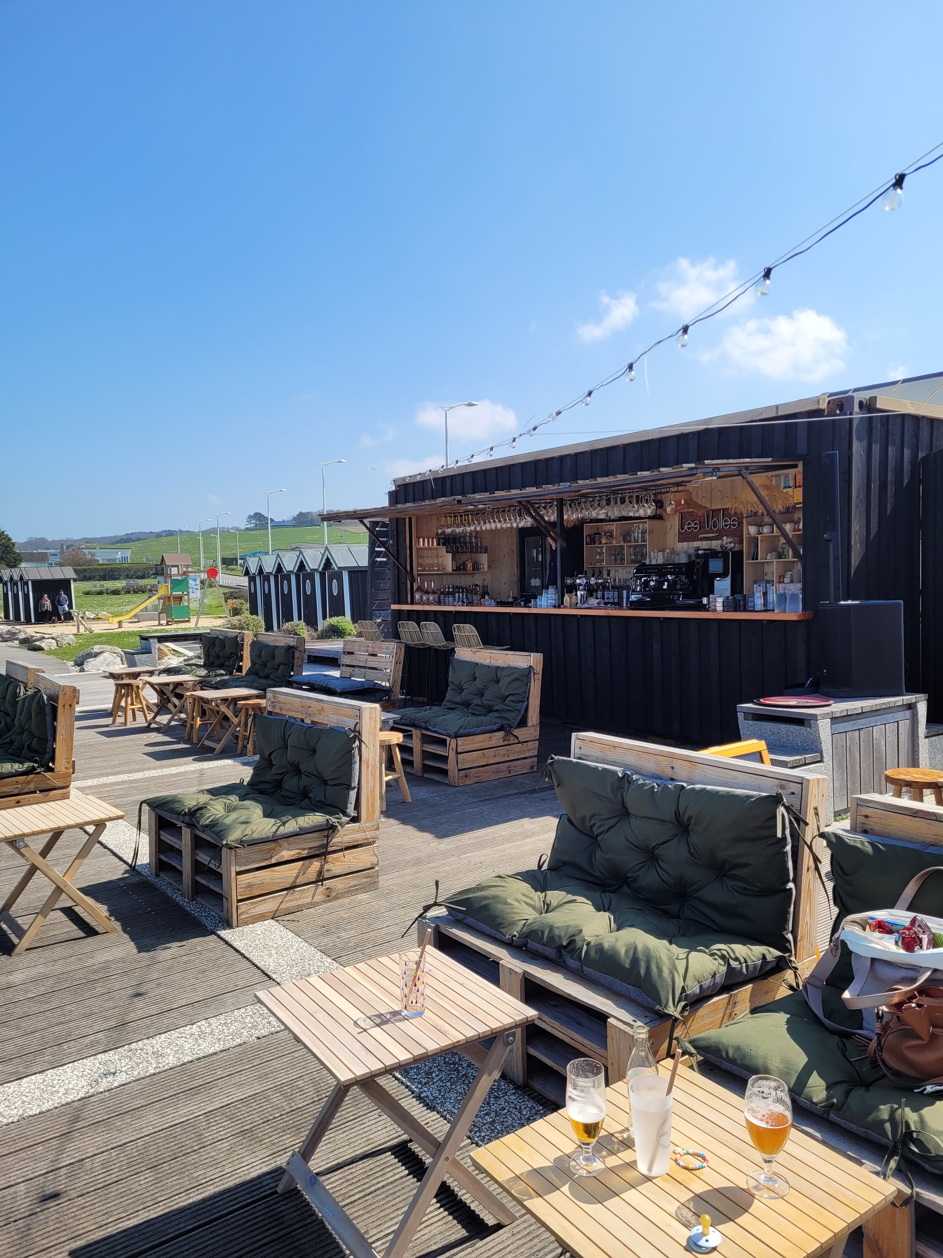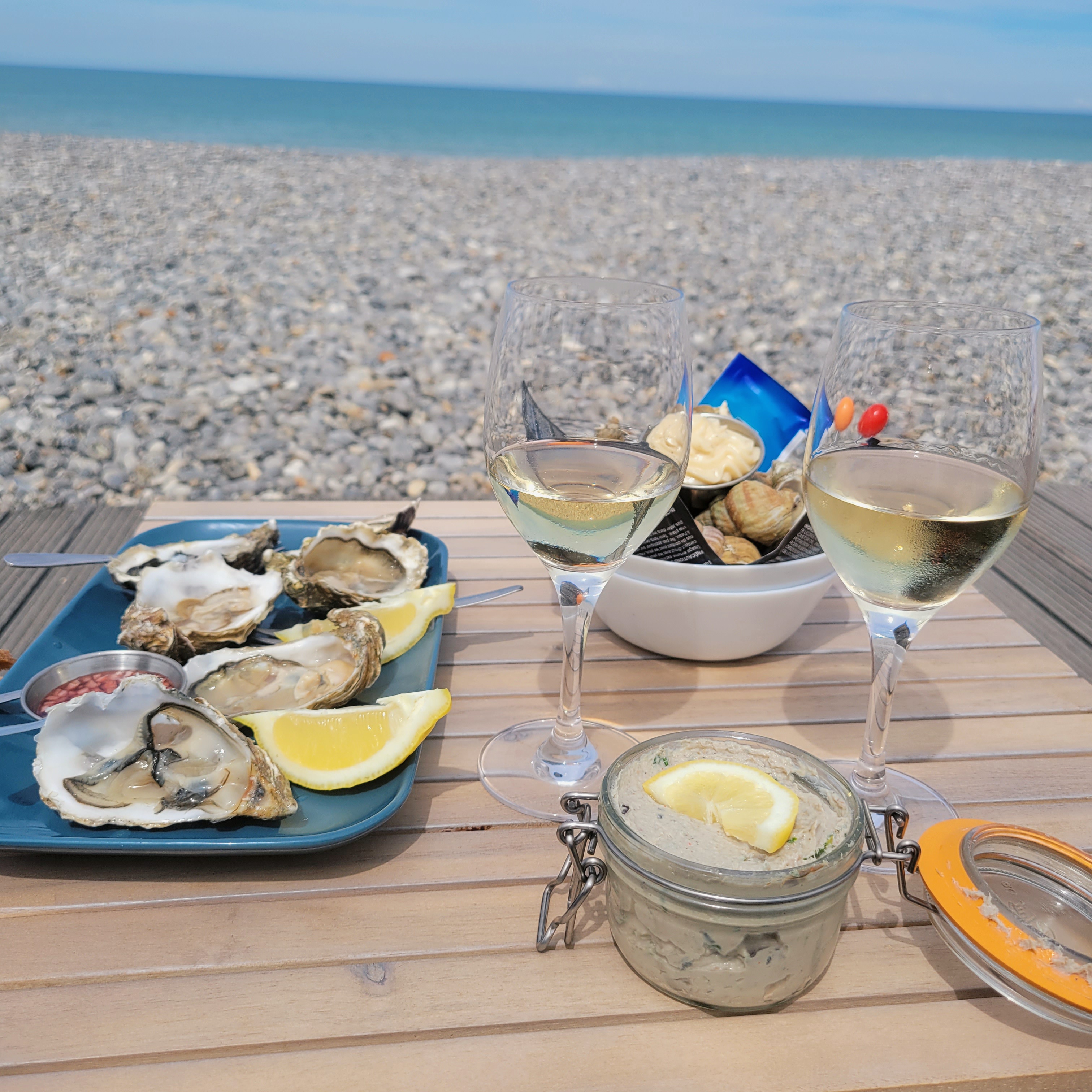 Un très bel endroit pour manger une planche de charcuterie ou de fromage en sirotant une boisson, dont une bière pression de la région face à la plage de galet et de la mer