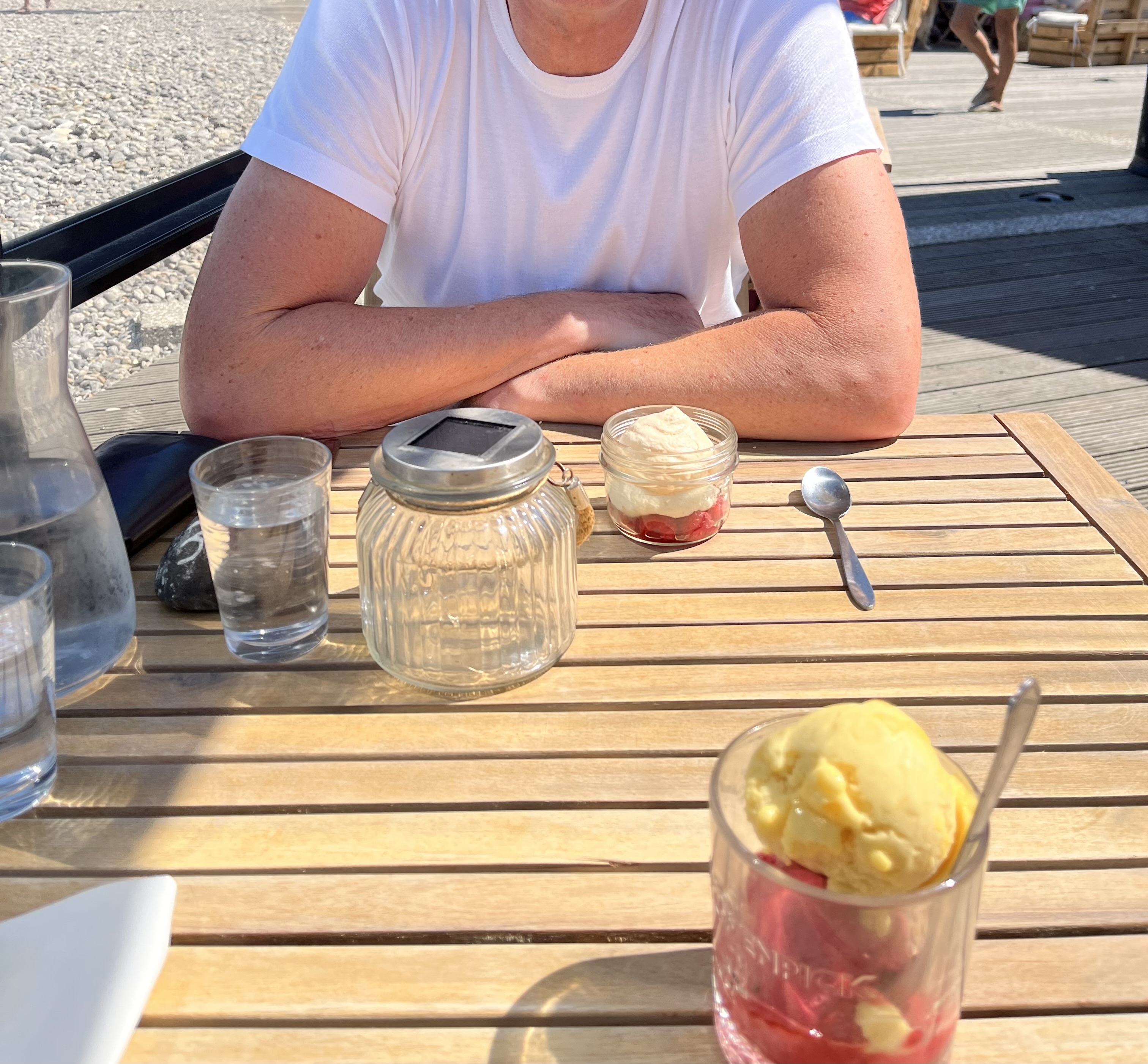 Pris 2 glaces Mavenpick à table au soleil. Excellentes. Face à la mer.