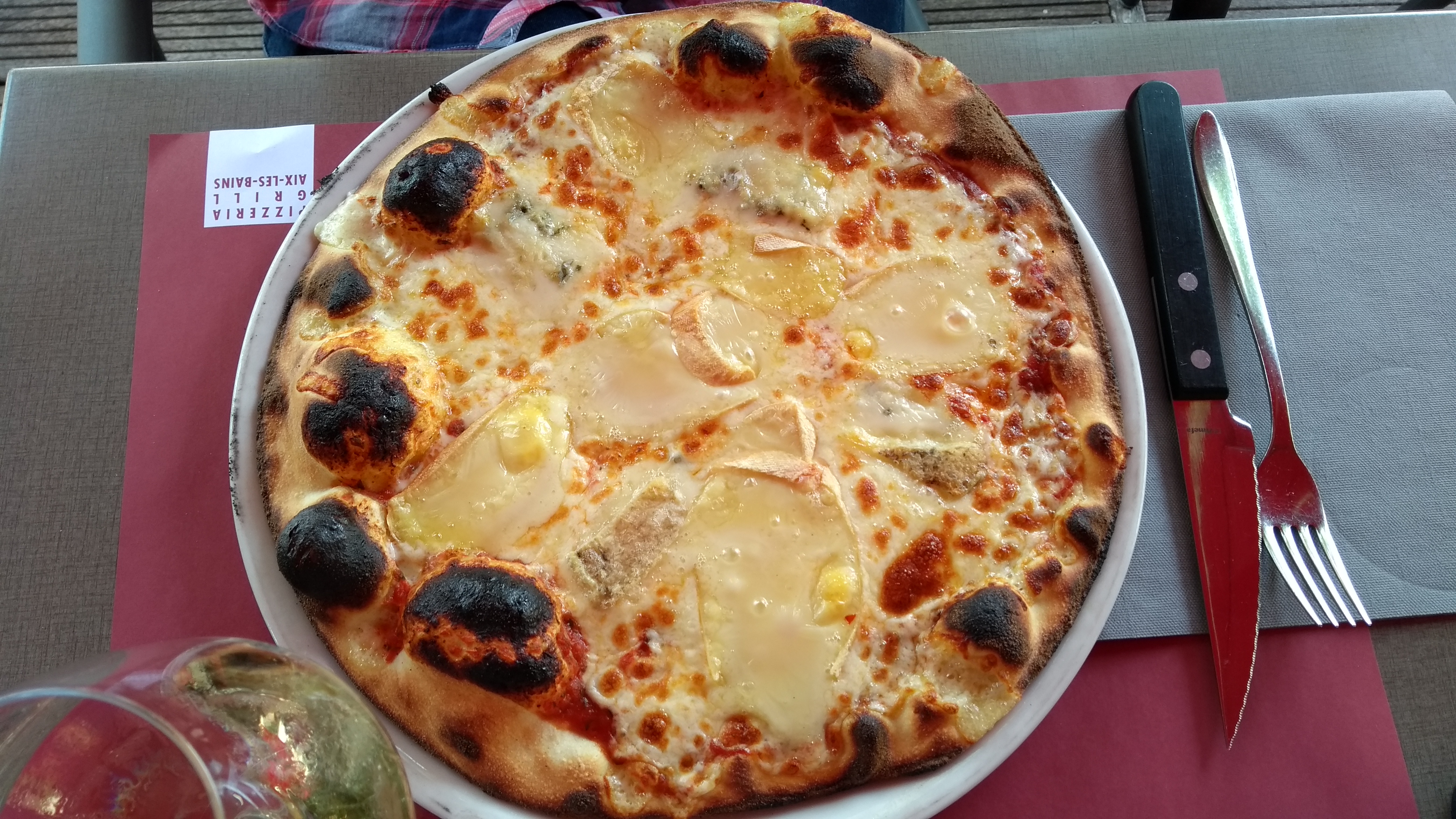 Endroit sympa mais très fréquenté. Normal pour un weekend du 15 août... Presque au bord de l'eau. Sans réservation, ils nous ont trouvé une place pour 7 personnes assez rapidement, bien joué :) Pizza végé et 4 fromages très bonnes.