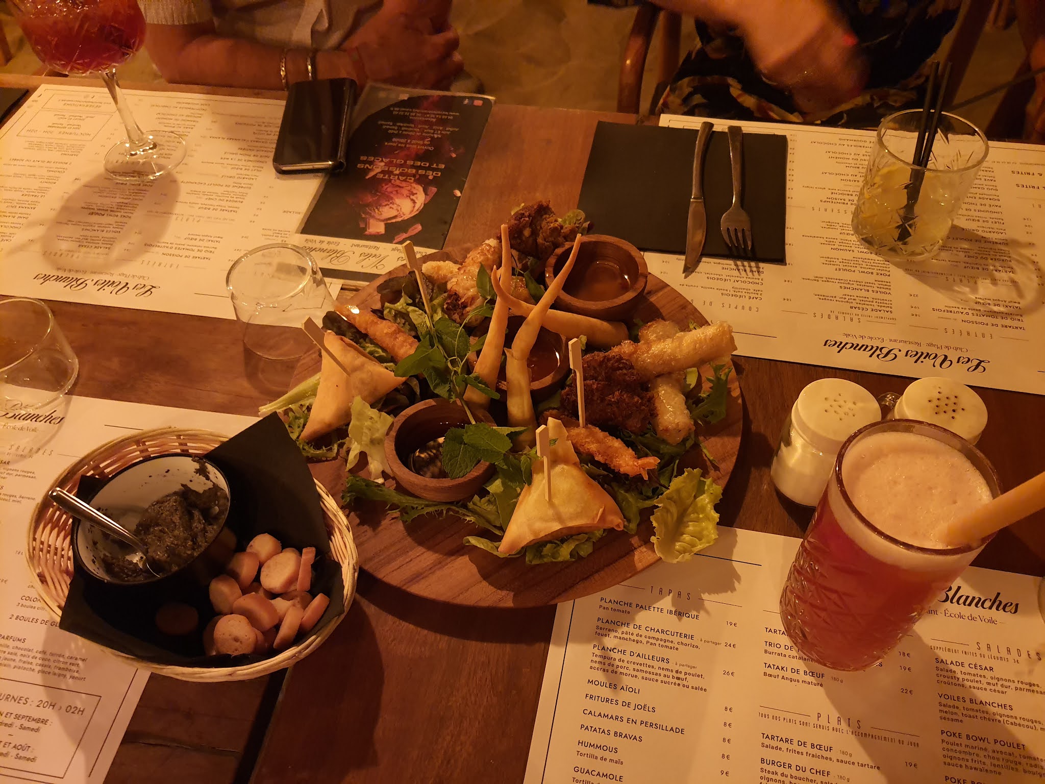 Comme tous les ans, nous avons mangé aux Voiles Blanches. Un cadre paradisiaque, des plats succulents et un personnel chalereux ainsi que le patron et la patronne. Pour de beaux souvenirs de vacances, une halte à ne pas manquer. À l'année prochaine, la famille Sinet
