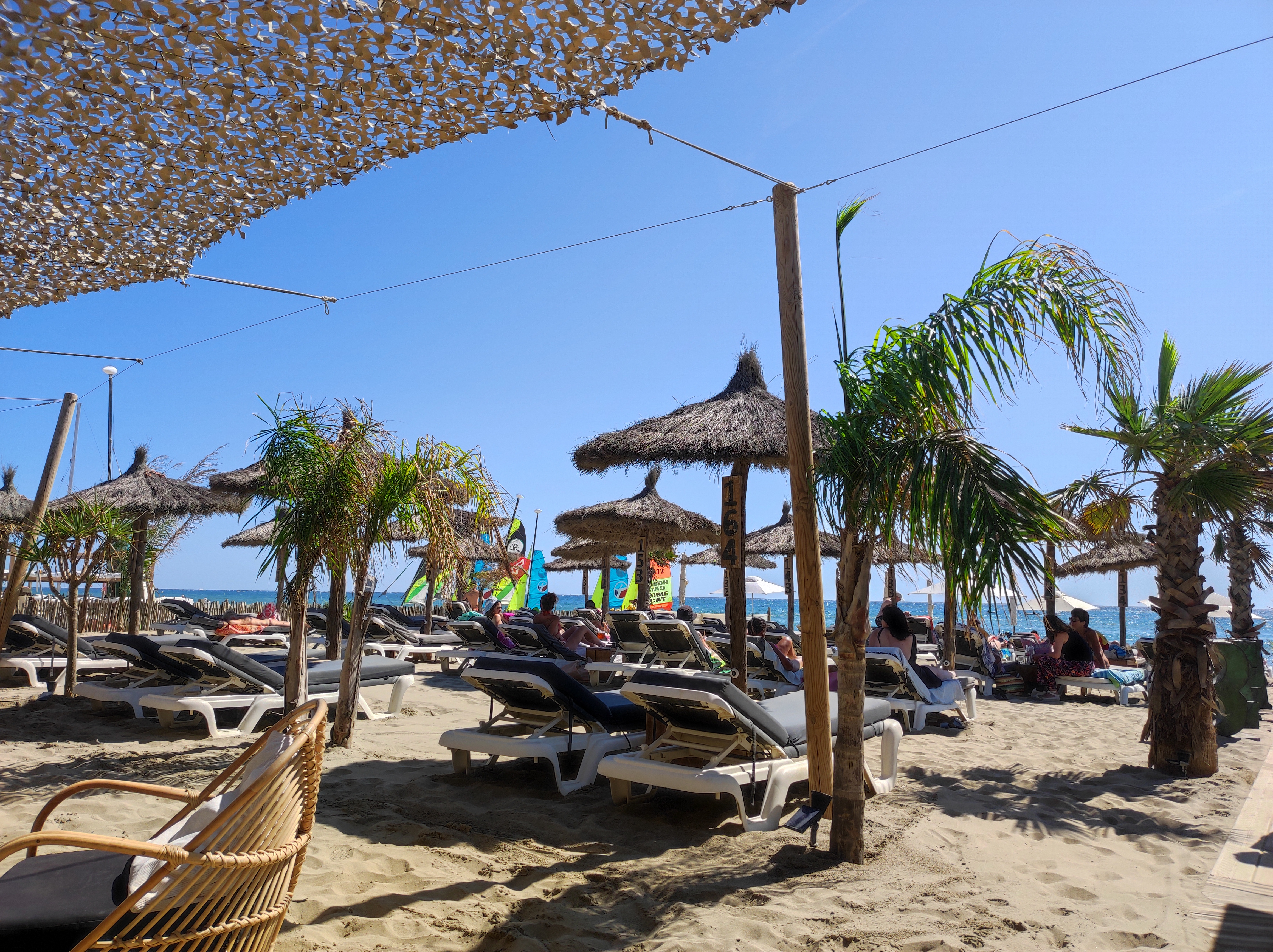 Le lieu est magnifique , 4 ans que je viens est toujours agréablement surpris , lieu paisible et calme , la déco est splendide avec du mobilier venu directement de Bali Indonésie , les transats sont biens avec des matelas dessus , confortable . La carte des repas est assez fournie et diversifié , plus les menus enfants , les activités sont diverses , planches à voiles , canoë kayak , voile et paddle , avec les instructeurs agréé et agréable , les tables du restaurant sont assez spacieux et espacé les uns des autres et le personnel est polie , disponible et agréable , il y a 2 toilettes et sont toujours propre , avec un vestiaire spacieux pour se changer a disposition ,et l'avantage c'est que les transat sont assez proche de la mer ( 5 mètres ) donc pour surveiller les enfants quand ils sont à l'eau est très facile , je recommande se lieu a 300%
