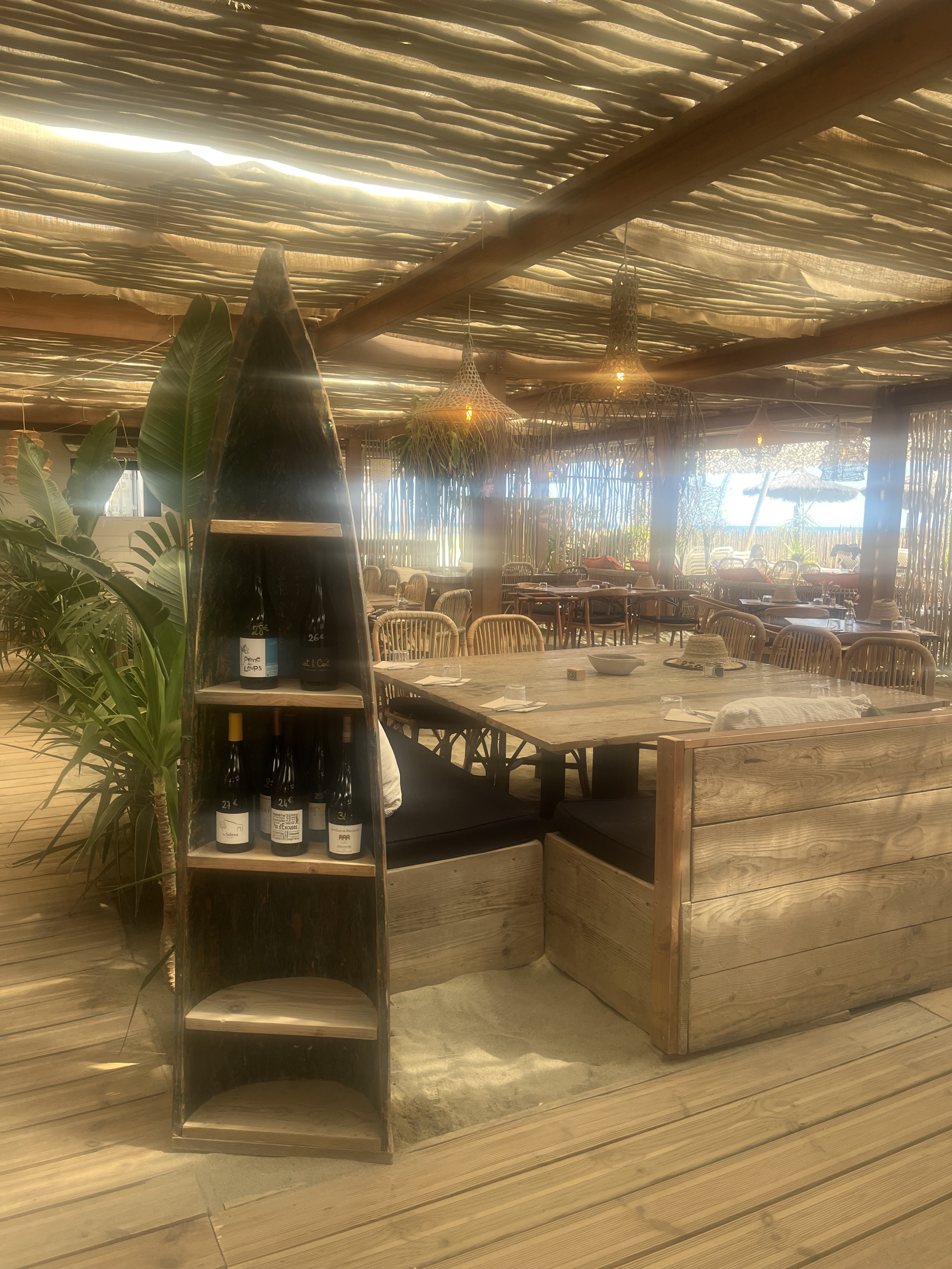 Accueil sympa, déco en bois chic et branchée mais sans chichi, cuisine simple dans l'air du temps avec tapas et Buddha bols. Possibilité de louer des transats à la demi-journée. Je recommande.
