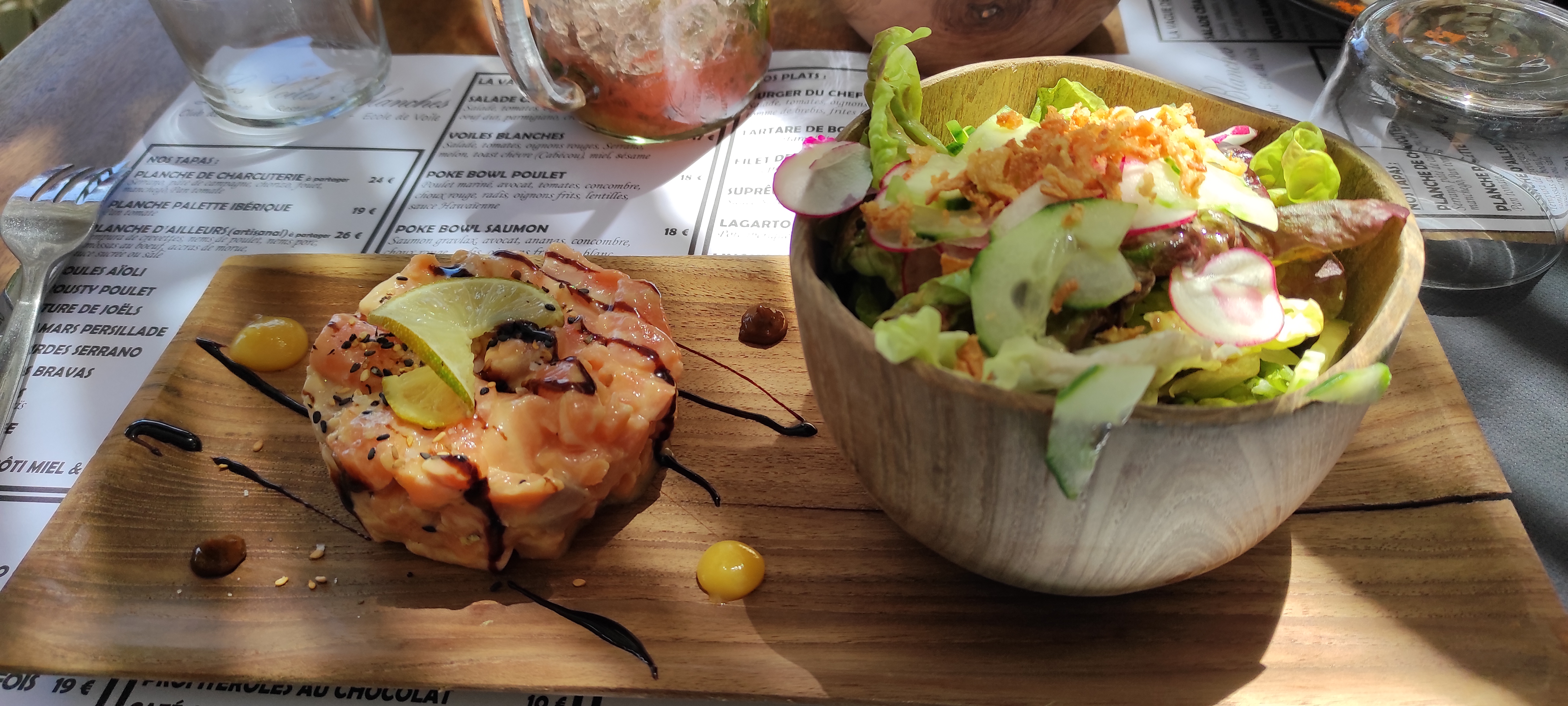Ce que nous avons mangé était très bon : tartare poisson (en l occurence du saumon) et pavé de thon. Nous avons été bien reçues et le lieu est beau, jolie ambiance