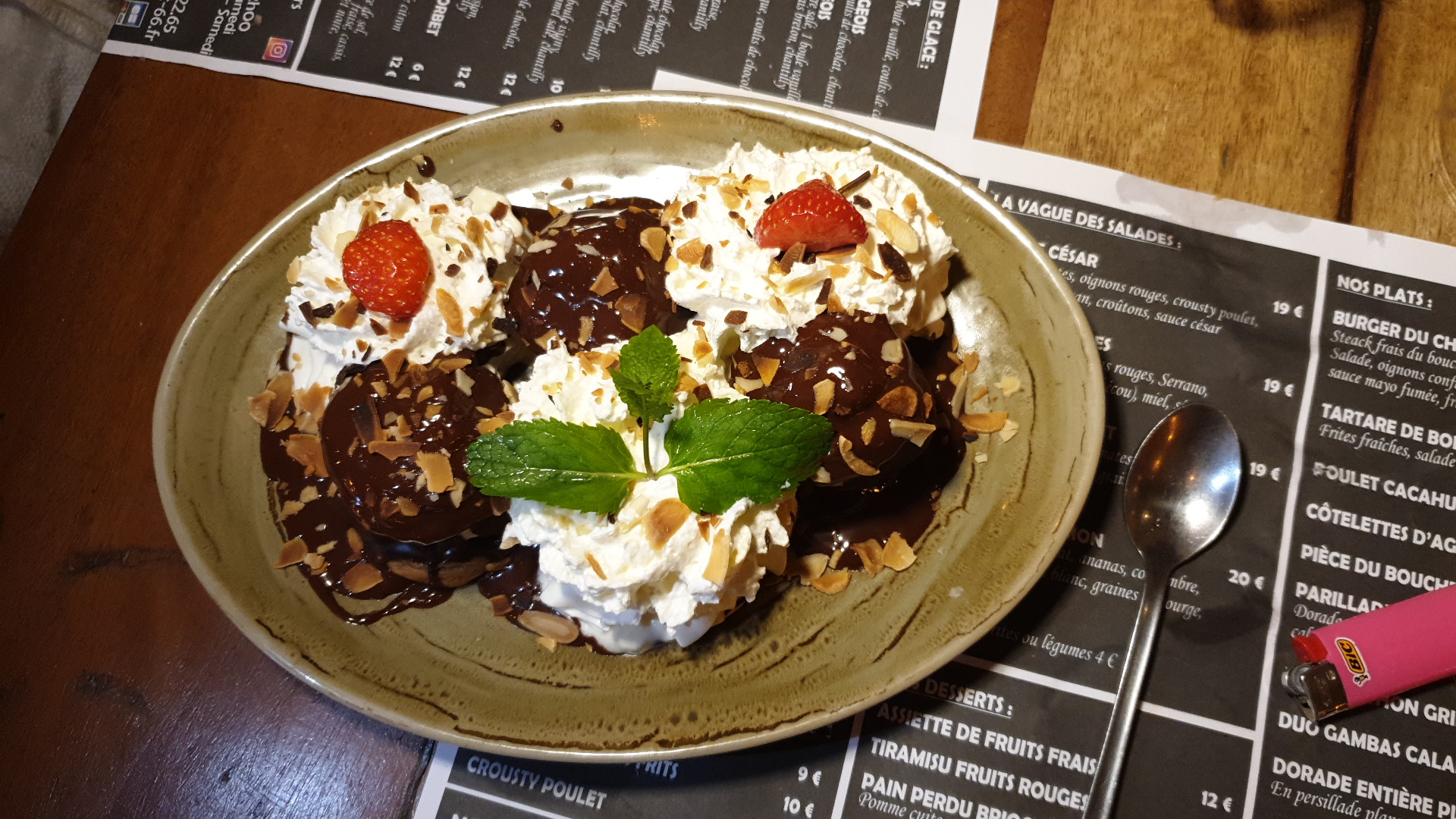 Comme d habitude. Rien a redire. Tartare de poisson et boeuf excellent Le burger incroyablement bon Les desserts: fondant... pain perdu et dame blanche. PARFAIT Merci pour ce dimanche
