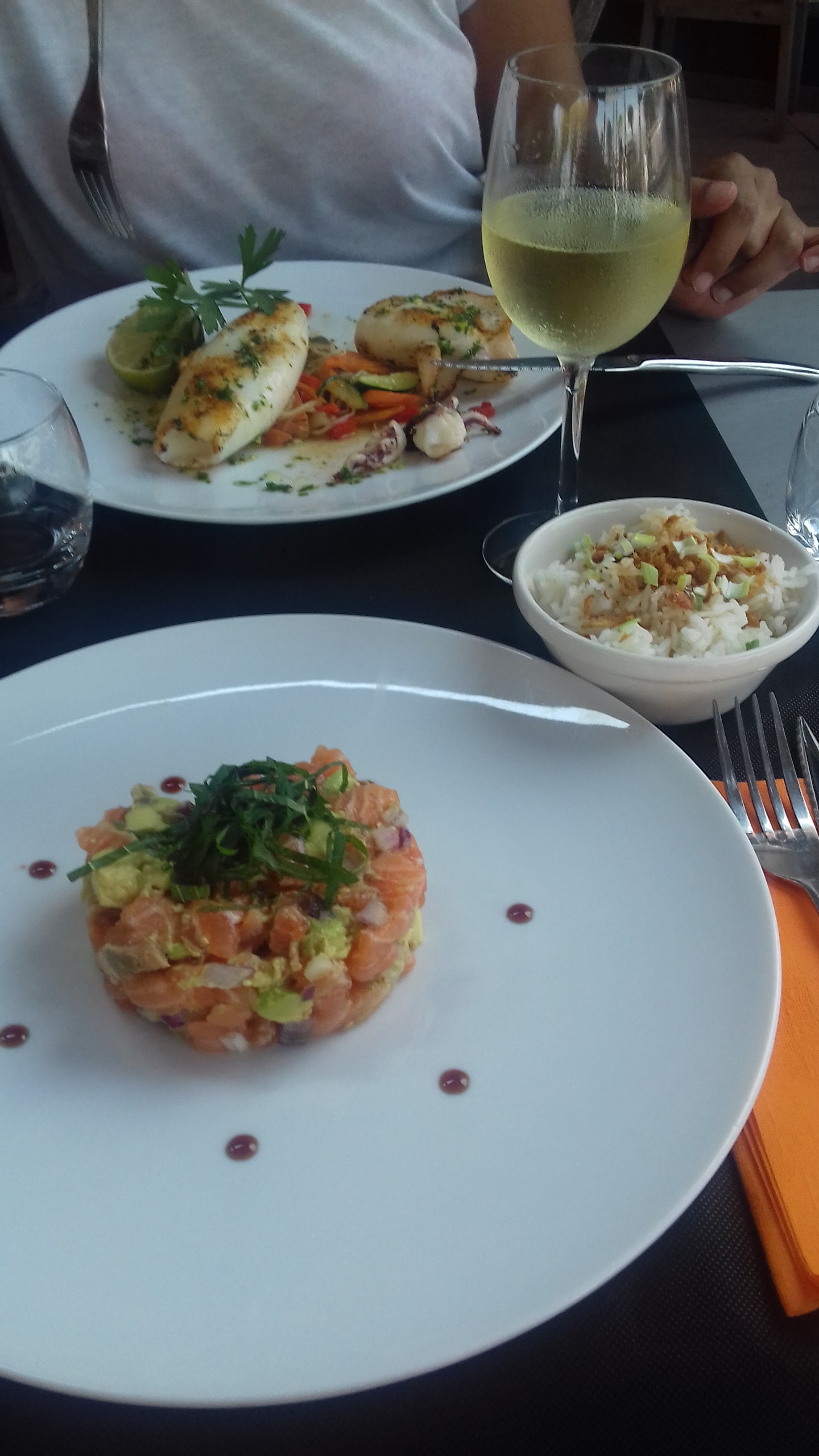 Resto sympa avec joli déco. Les plats sont copieux et très bon. Le tartare de saumon est délicieux mais seul bémol les frites sont congelés. 😱. Le thon et la seiche sont très bien aussi.