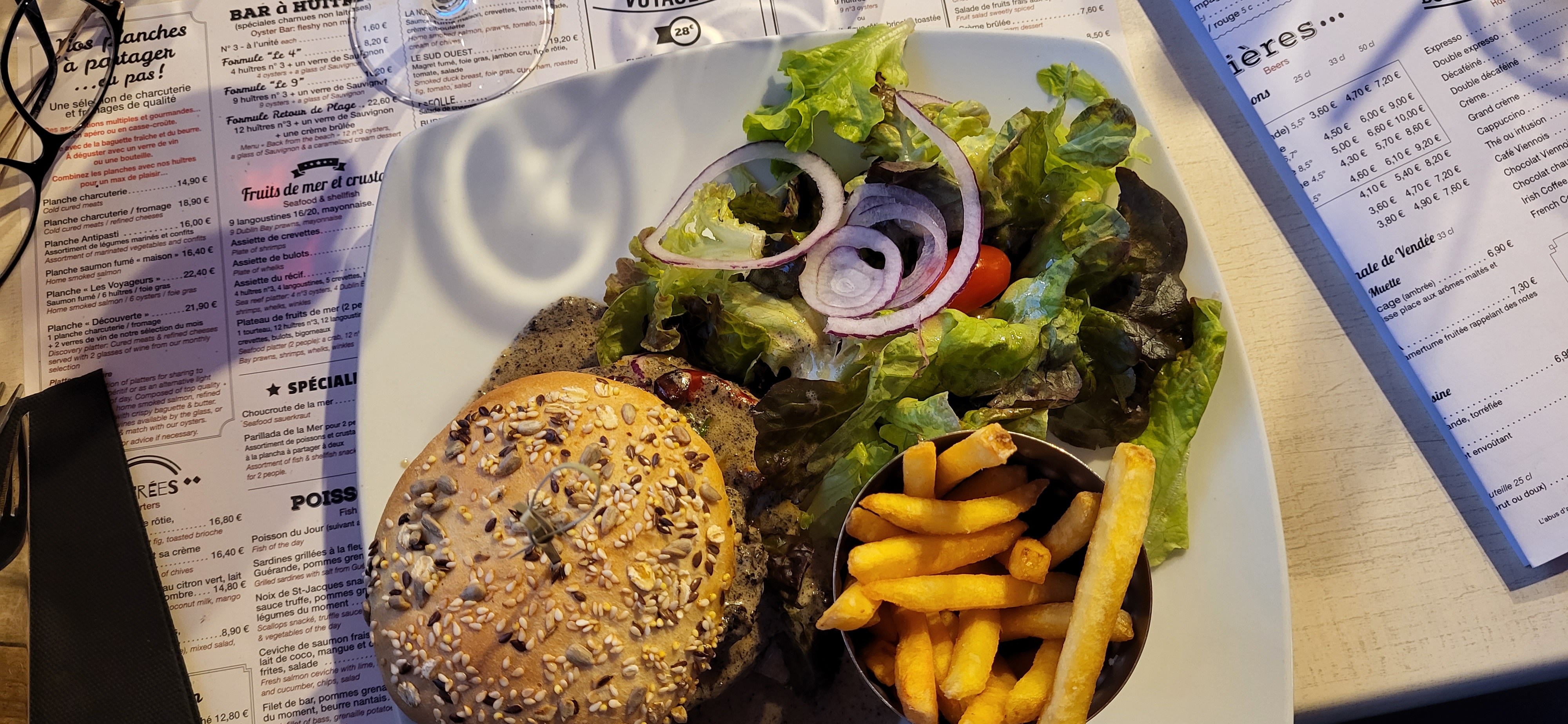Excellent, service rapide (presque trop). Prit un hamburger du Voyageur et vraiment me suis régalé!!! Mes amis on prit les gambas, le risotto de St Jacques et les sardines et tous sont unanimes, on reviendra pour essayer les plats des autres! Bref je recommande vivement.