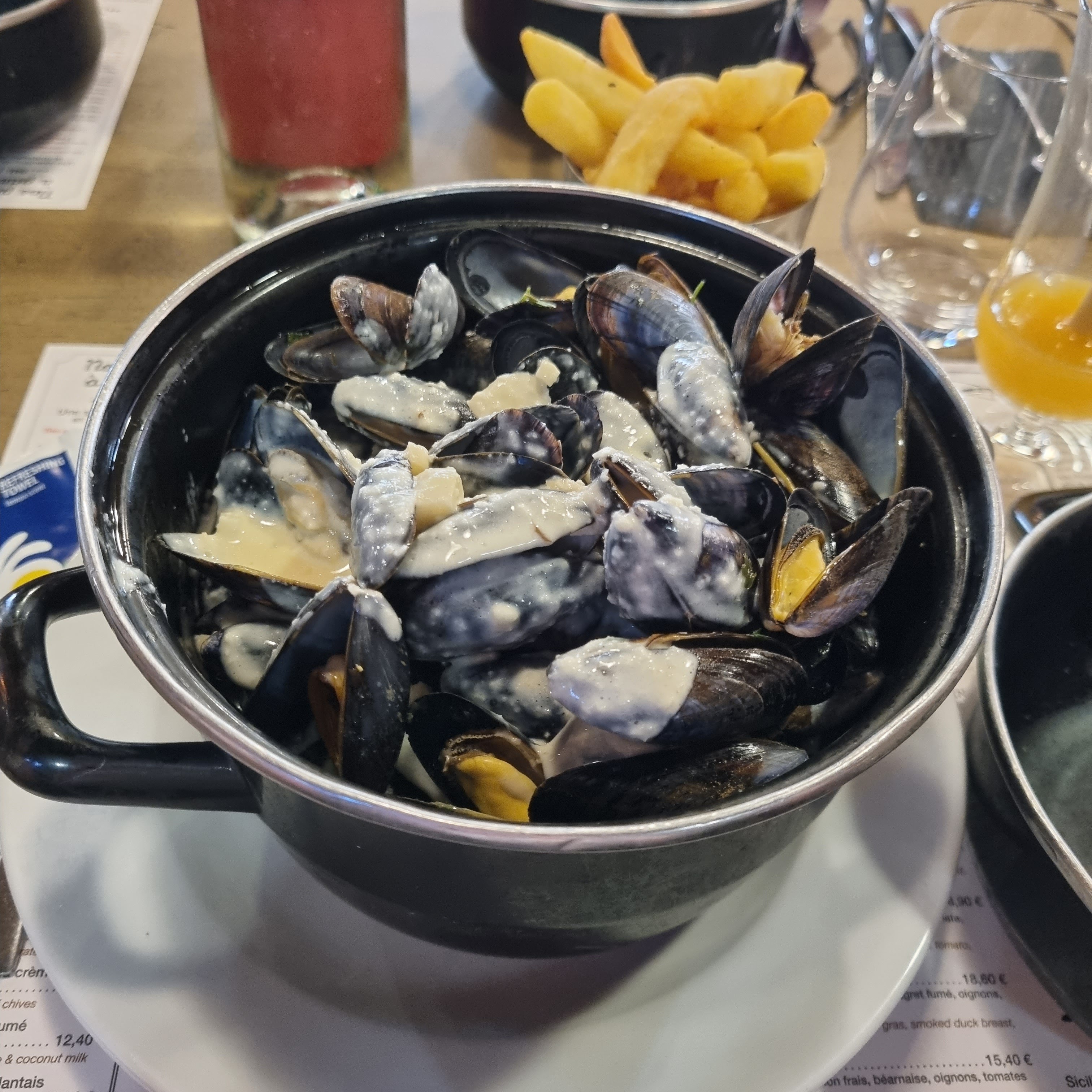 Malgré l'affluence, nous avons pu avoir une table tout de suite. Les moules au chorizo sont très bonnes et copieuses. Le poisson du jour était également bon, dommage de mettre des frites en accompagnement. Dans le menu enfant, possibilité d'avoir des moules même si la quantité est un peu insuffisante pour les grands. Prix corrects et service rapide et efficace.