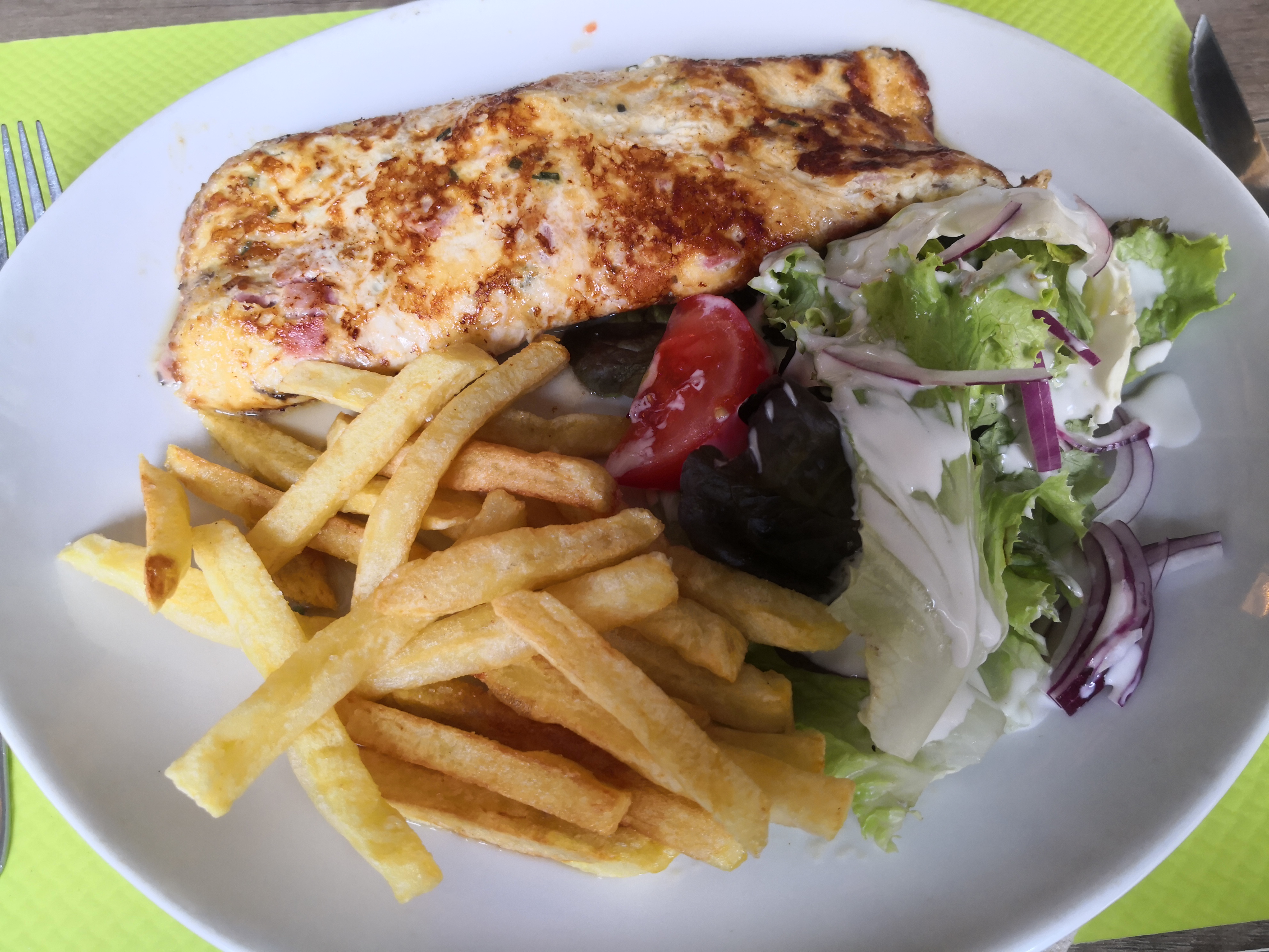 Rapport qualité prix exceptionnel, nous nous sommes délectés de choses simples. Les frites sont délicieuses, frites au gras de bœuf, moelleuses car fraîches ! Un régal. L'omelette saisie et baveuse, magnifiquement garnie. Et le chef fait cela en un tour de main, dans la meilleure humeur. Une performance pour un prix plus que raisonnable. A bientôt !