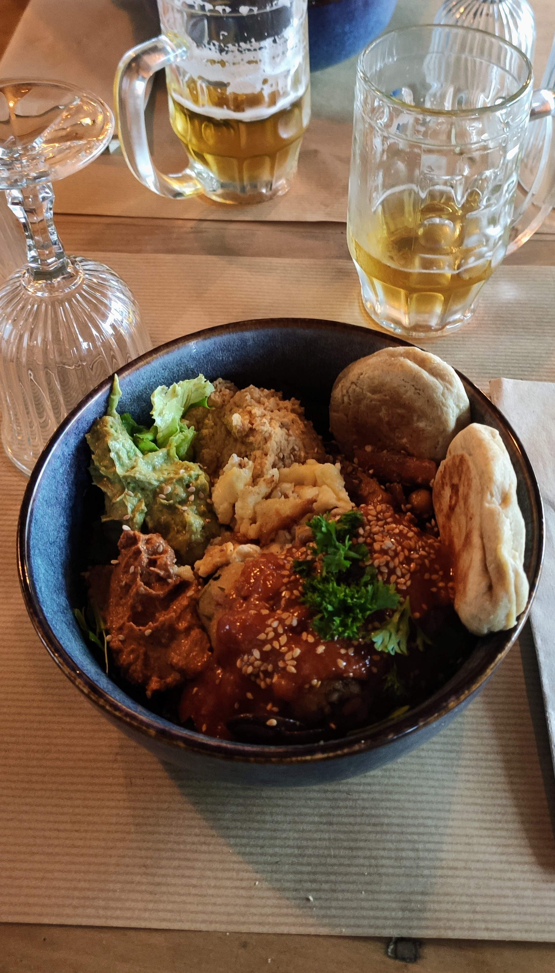 Dans ma recherche, j'ai trouvé ce que je cherchais : Cuisine végétarienne chez @les_yeux_dans_leau sur Crozon 💪 Ici, vous pourrez vous asseoir sur une petite terrasse avec vue sur l'eau. Il n'y a jamais qu'un seul plat à manger. Nous avons mangé un dahl végétarien ☺️ Le dahl était vraiment délicieux ! Beaucoup de composants de saveur différents - je n'ai jamais mangé de dahl comme ça auparavant ! 💪 Le prix (la modique somme de 17 €) comprenait une salade d'entrée et des petits pains plats (voir 3 photos), également très savoureux ! Il y avait aussi de l'eau gratuite - cela a déjà conquis mon cœur ☺️ Donc : Le goût est vraiment génial et c'est VÉGÉTARIEN 😍 Par contre, nous n'étions pas vraiment rassasiés - et ça pour 17€ 🙈 J'adore la nourriture 😍 donc si vous avez besoin de conseils pour savoir où manger végétarien, consultez mon compte Instagram @klapptundstulle☺️
