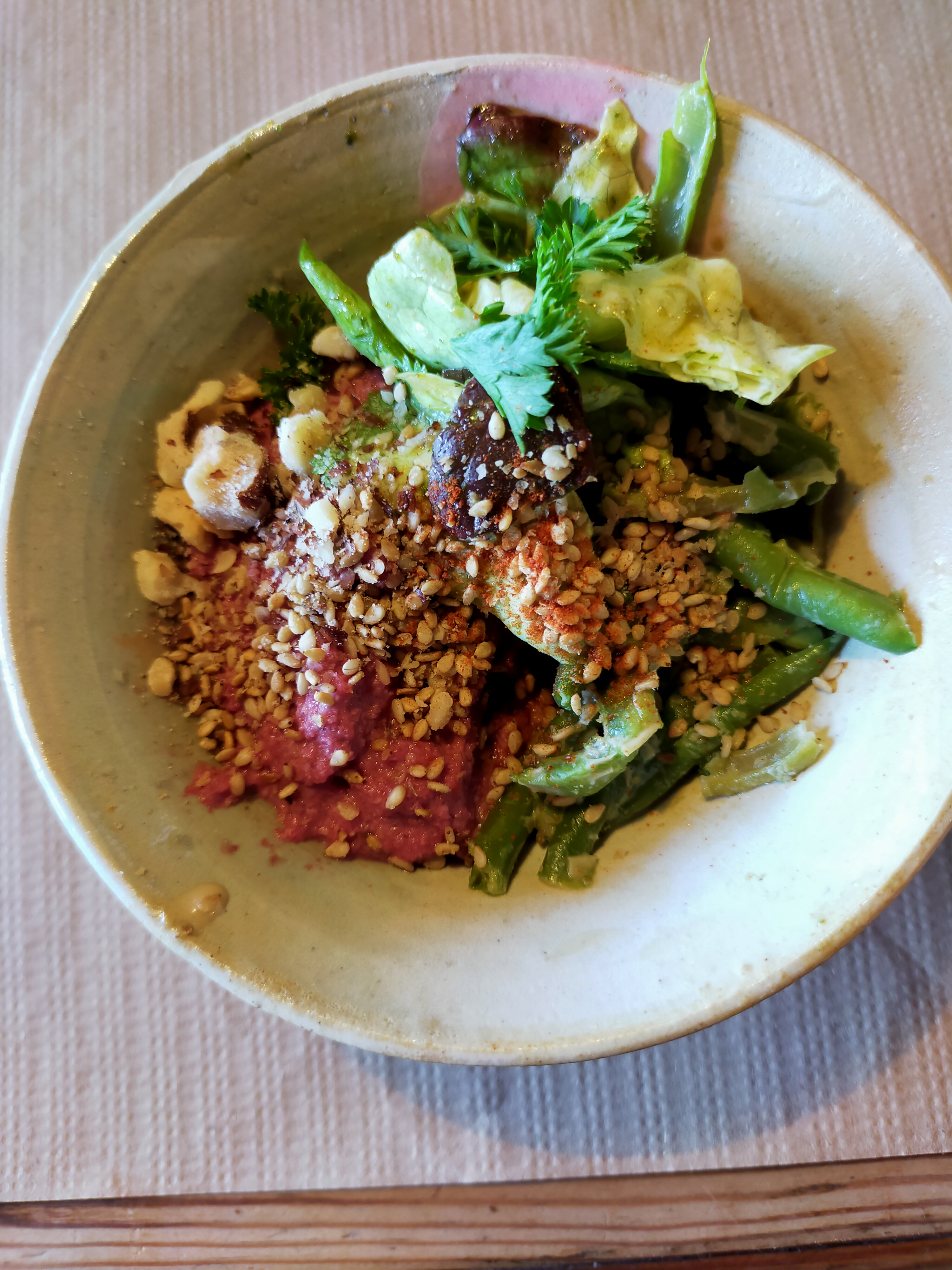 Une trouvaille - un super petit endroit proposant un salon de thé et un restaurant - nous recherchions des plats végétaliens et végétariens : et nous l'avons trouvé ici ! Joli bol libanais vegan, frais et servi avec le sourire. L'endroit a une atmosphère de salon de thé britannique. J'ai beaucoup apprécié.