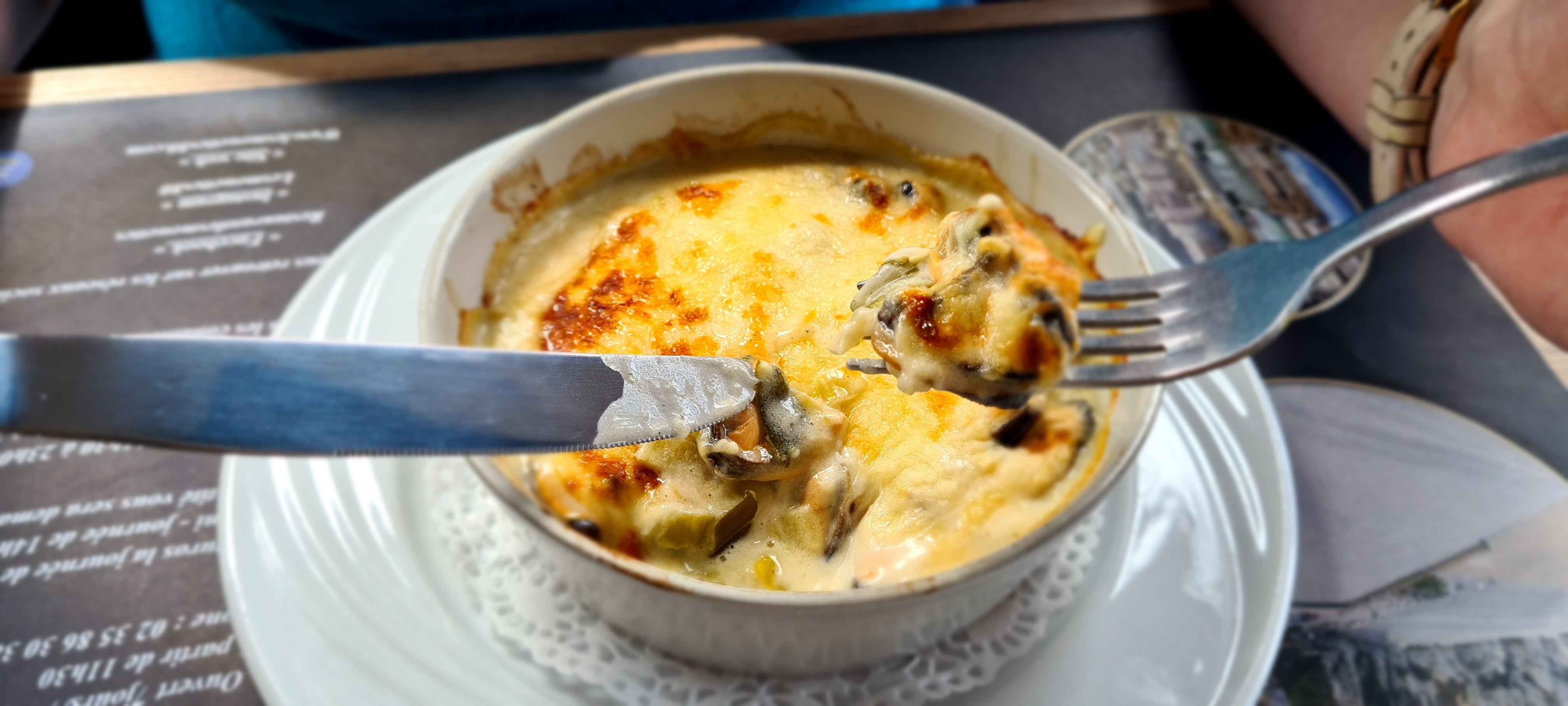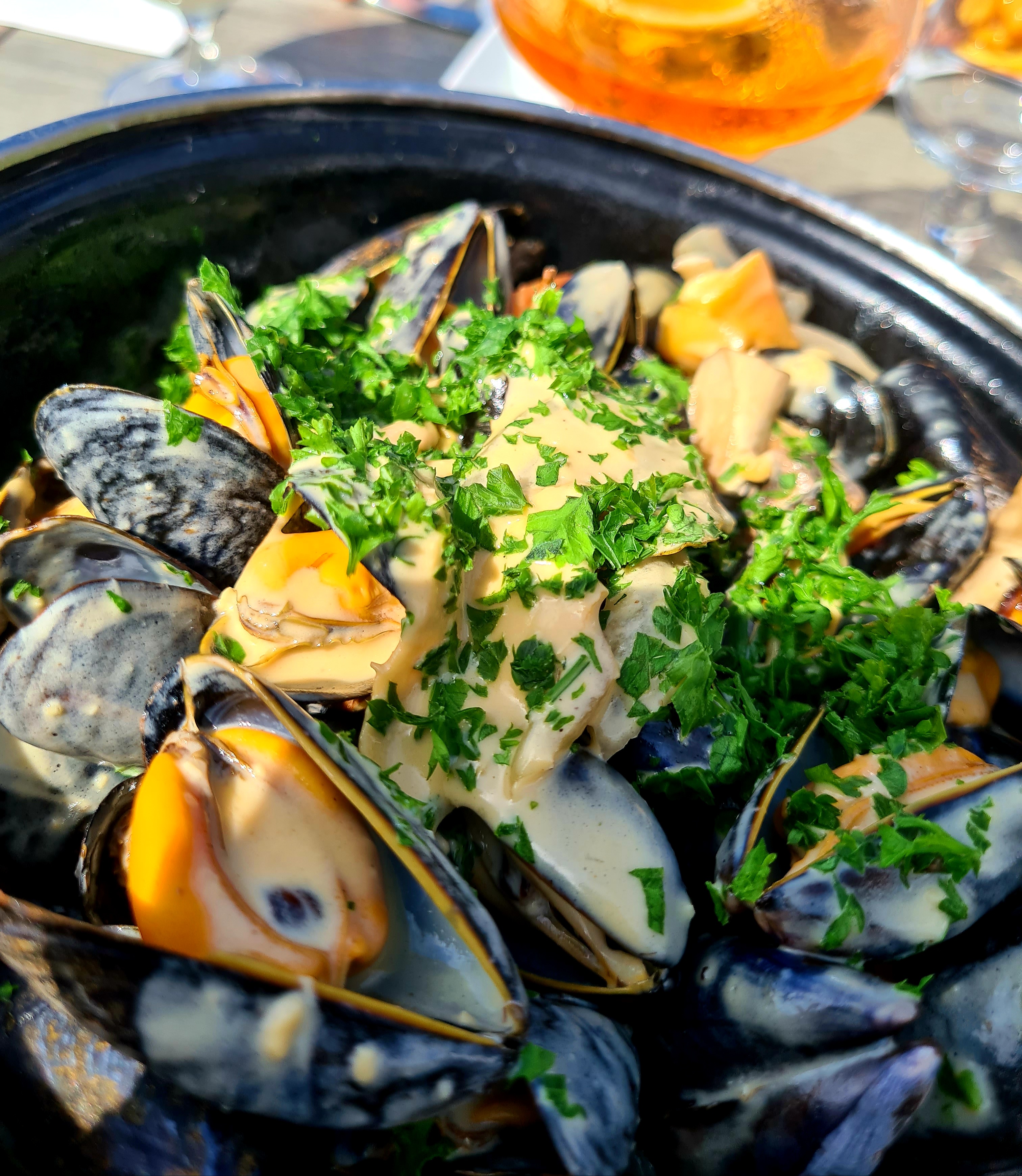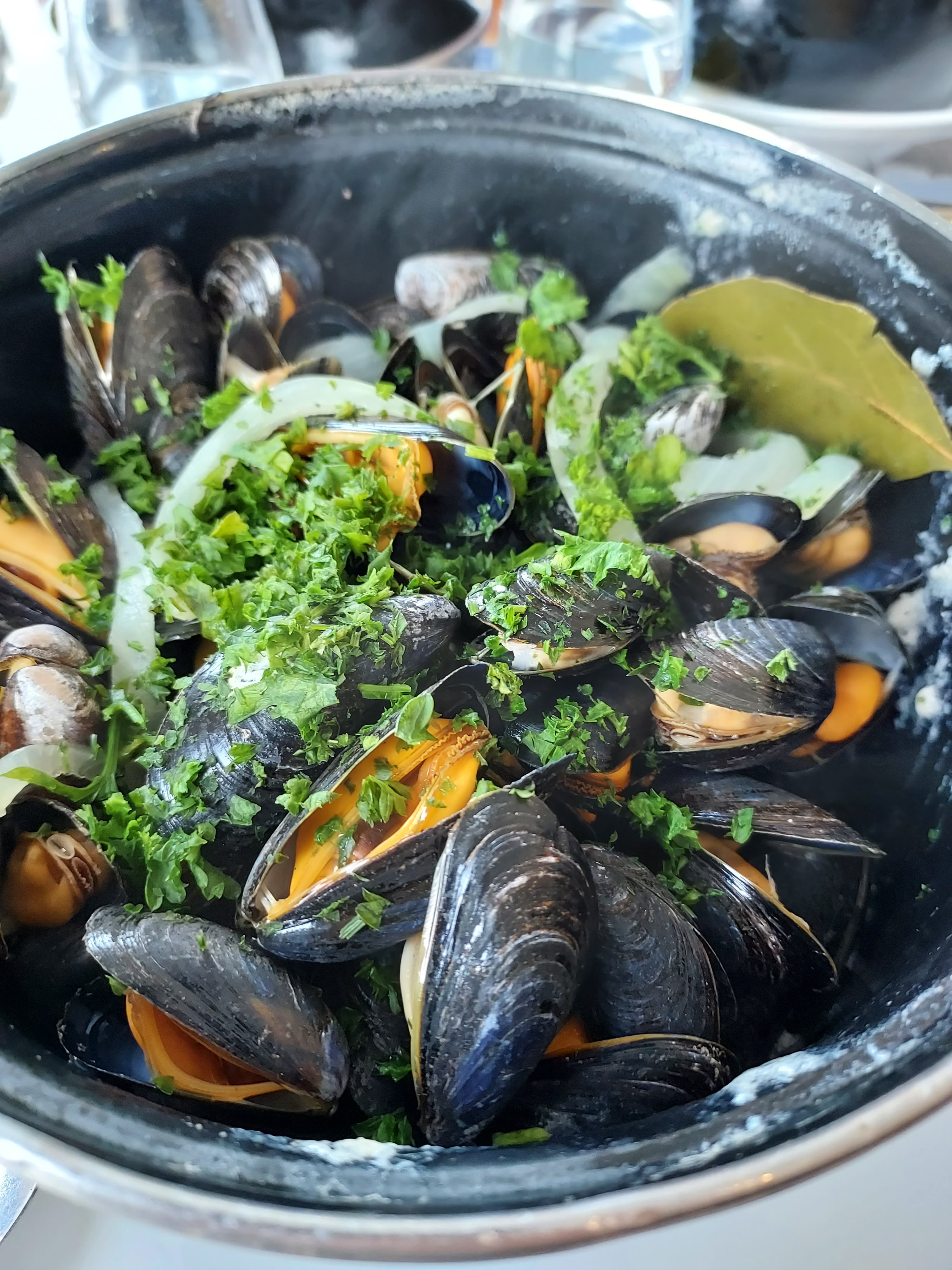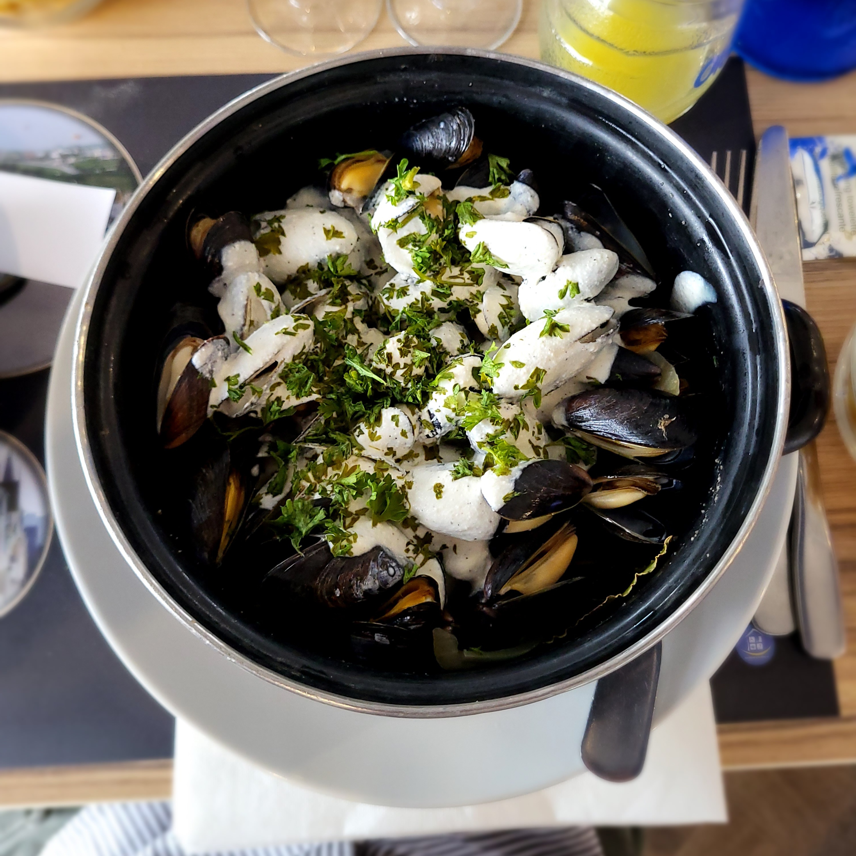 Déçue par les moules trop cuites voir sèches. Ça donnait l'impression quelles avaient été cuite, recuite et encore cuite. Le persil dessus faisait penser à du lyophilisé... Ma fille a pris les pâtes au saumon et s'est régalée. Accueil et service vraiment très bien. Thé gourmant très bon.