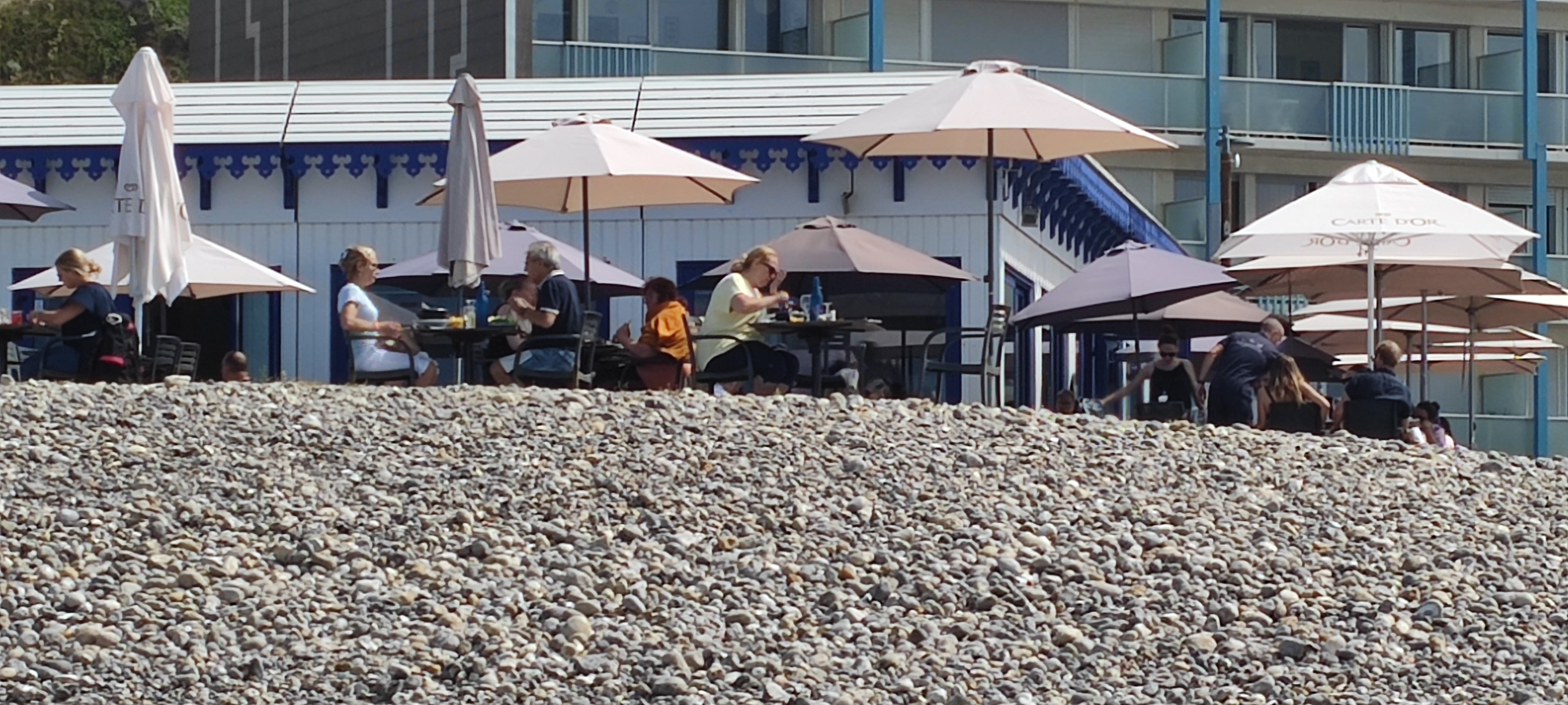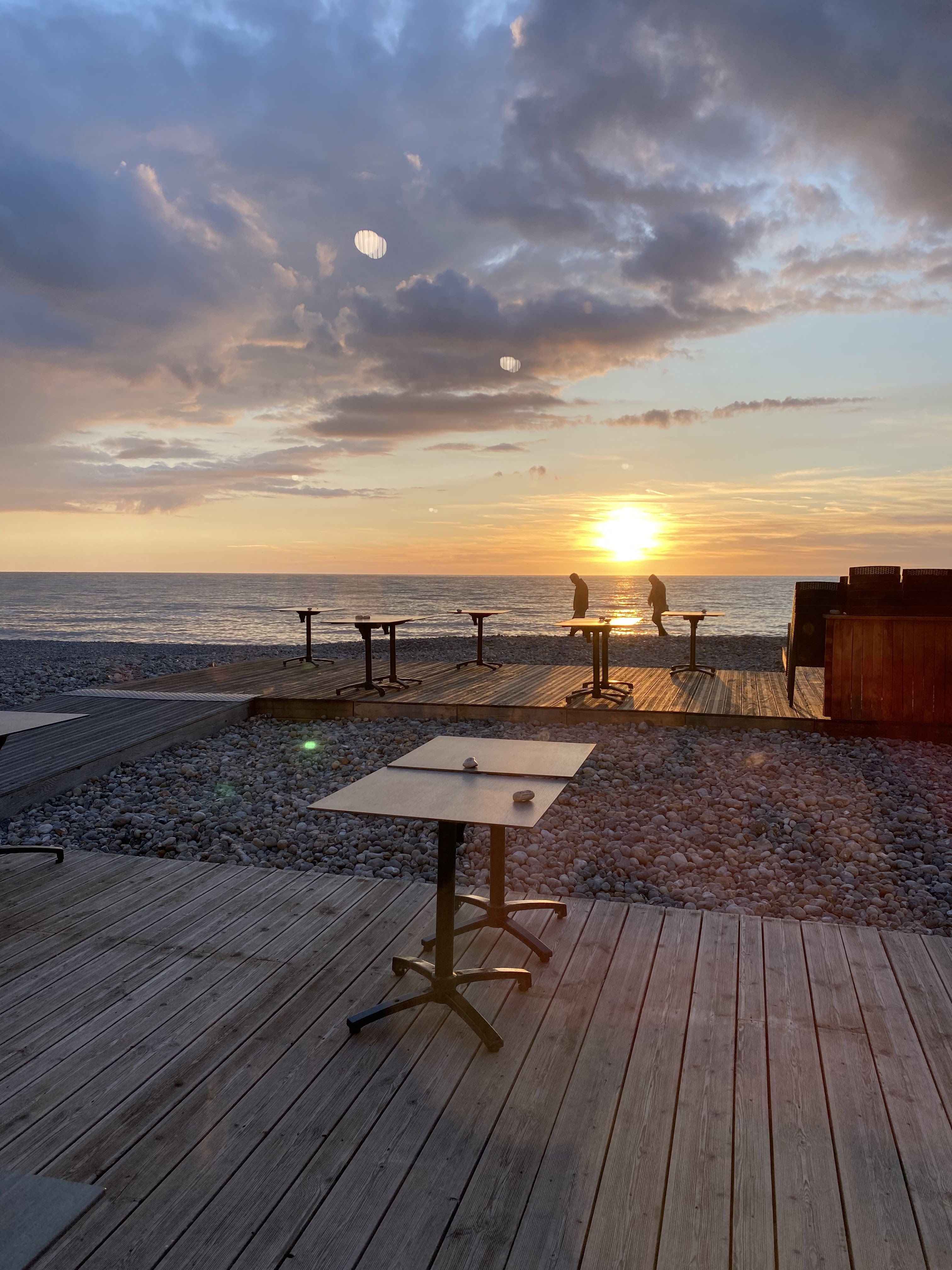 Petit restaurant avec une cuisine sans prétention mais bien exécutée. Les prix sont corrects pour la qualité et les quantités servies. Plusieurs formules sont proposées et il est possible aussi de commander à la carte. Le service est rapide et les serveurs prévenants. Le grand atout des lieux, c'est la terrasse sur la plage de galets. On mange littéralement sur la plage avec les vagues et les mouettes.