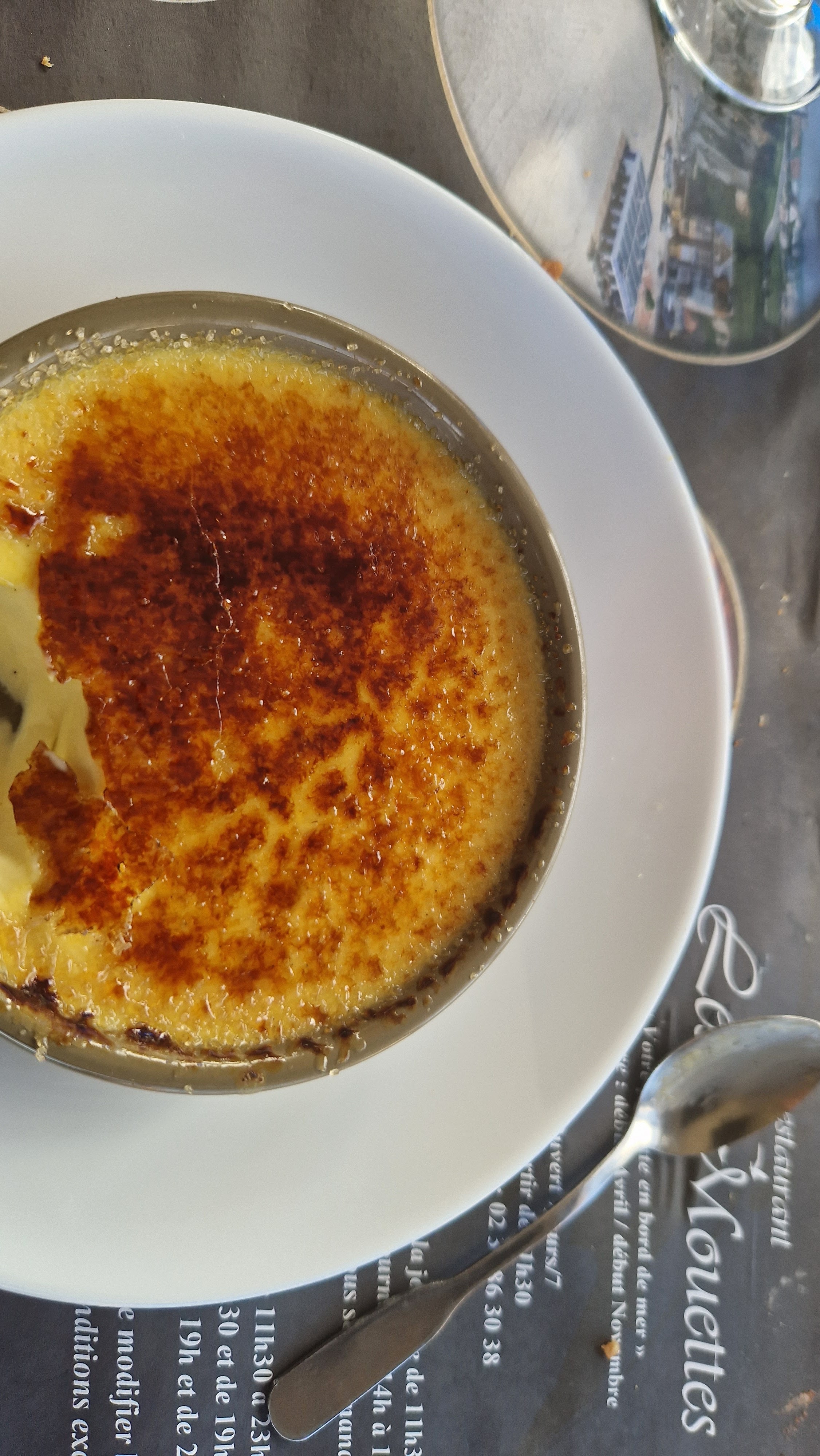 Parfait du début à la fin. Joli terrasse bien exposé vue sur mer. Nous sommes venus avec notre chien, celui-ci a était très bien accueilli, on lui a même donné une gamelle d’eau. Entrée foie gras avec confit excellent. Moules marinières fraîches avec frites très bon. Et le meilleur pour la fin une petite boule vanille qui était mais délicieuse. Bien loin du goût que l’on peu connaître des supermarchés. Tous les serveurs que l’on a pu voir étaient gentil. Addition un peu élevé mais cela le vaut ! Merci à toute l’équipe 👍