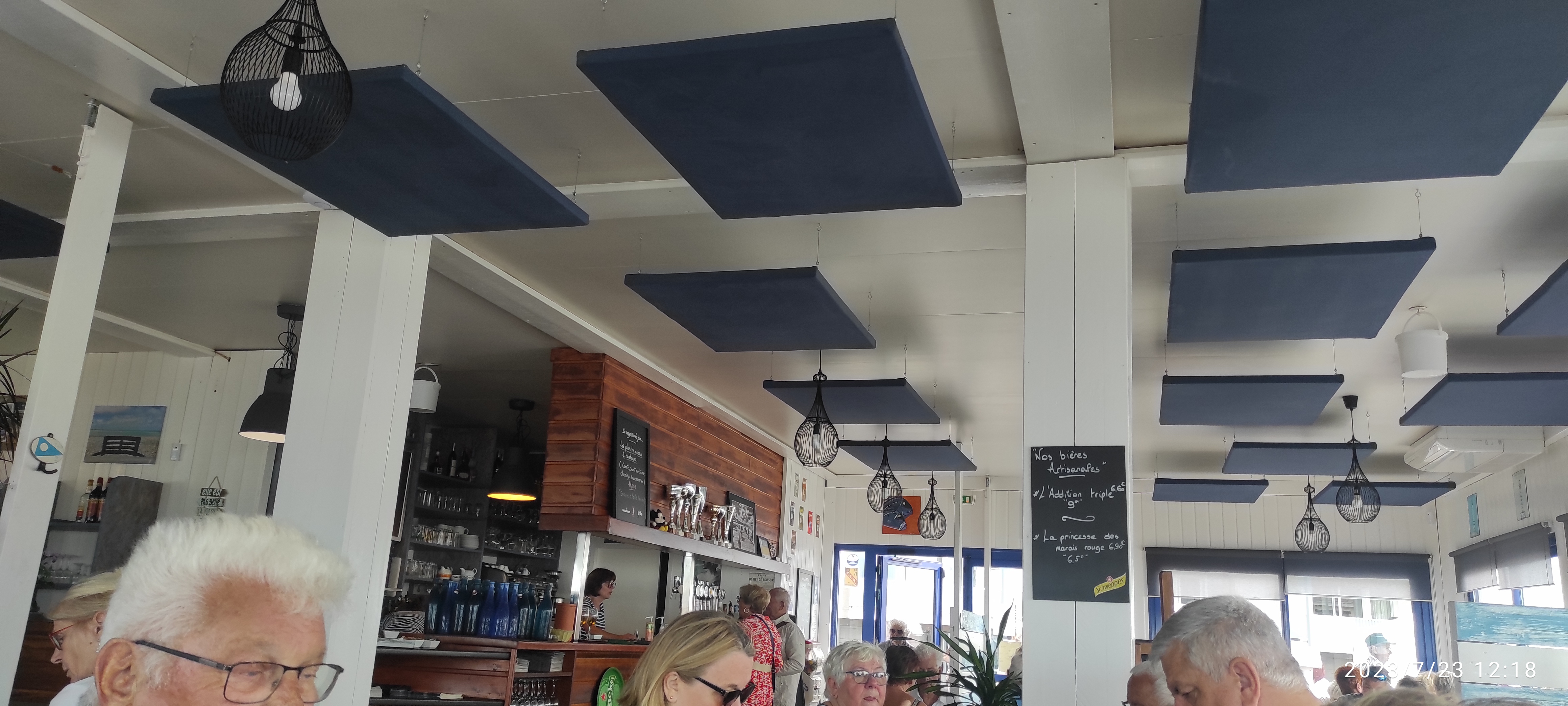 Restaurant très sympathique surtout en terrasse avec vue mer. Pas de réservation possible en terrasse il faut donc venir tôt ! (Avant 11h30 pour avoir une place le midi). Les plats sont très bons (crustacés, poissons, moules frites..). 3 chaises hautes seulement pour une si grosse structure c’est trop peu. Heureusement nous étions dans les premiers pour en avoir une. Serveurs souriants et agréables. Service rapide. Bref, une jolie adresse !