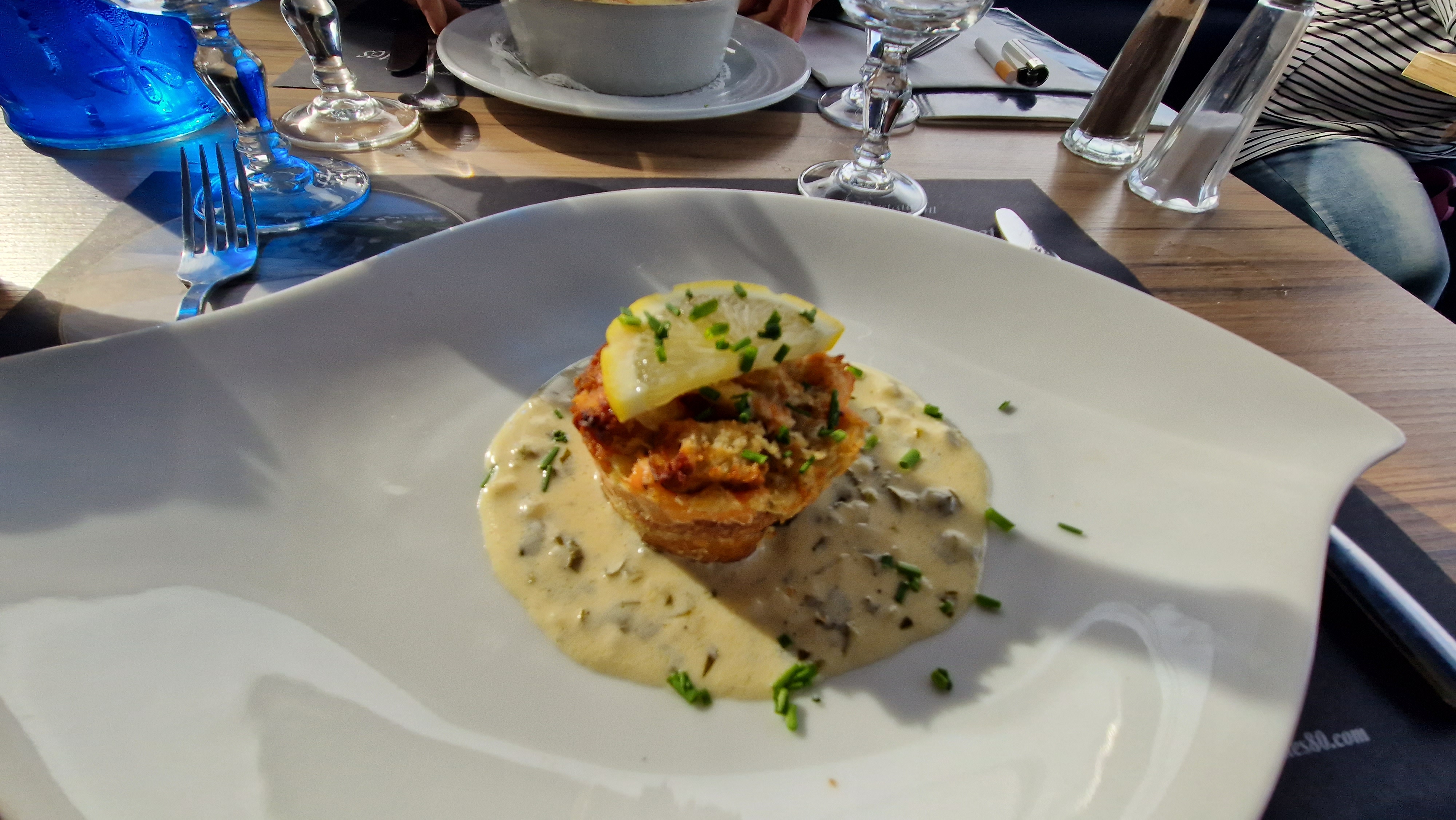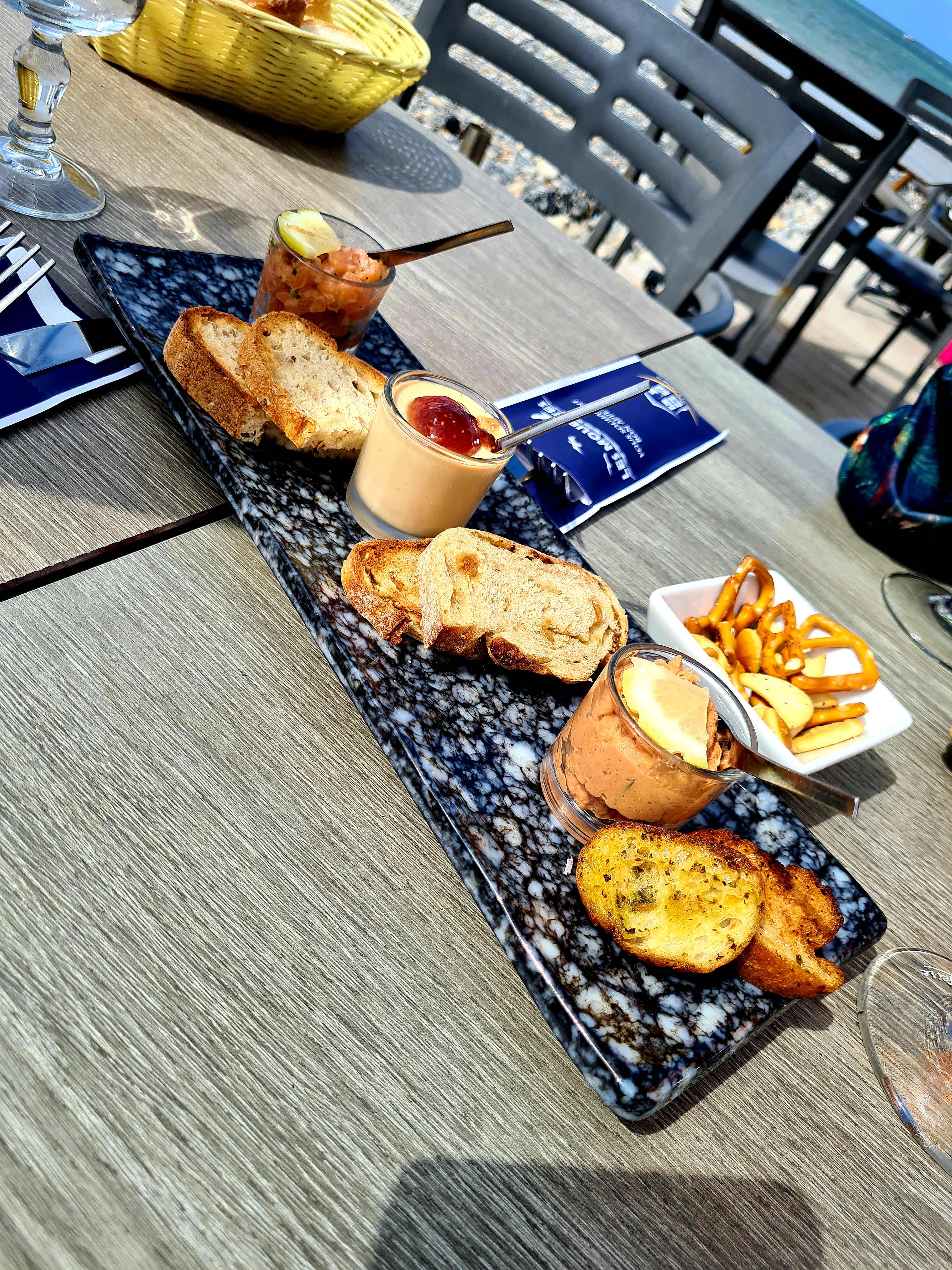 Nous sommes venus avec ma conjointe dans se restaurant en bord de plage. Rillettes de saumon fait maison très bonne. Faux fillet relativement correct et moules marinière bonne malheureusement la suite ne vas pas vraiment suivre dans le positif Frites pas fraîche , mayonnaise en tube ( si dure de mélanger des œufs, moutarde et de huile? ) Un ridicule dessert fondant chocolat et son caramel de chez Métro sans amour et beaucoup trop « parfait » au prix de 6.90. La marge doit être très belle. Pour finir nous avons mangé en terrasse pour profiter de cette super vue avec un supplément de 0.40€ par personne, le prix du lieux n’est pas déjà assez compris dans les plats? à croire que non. On m’a toujours dit de ne pas aller dans les restaurant avec les photos des plats et bien j’aurais du encore une fois écouter.