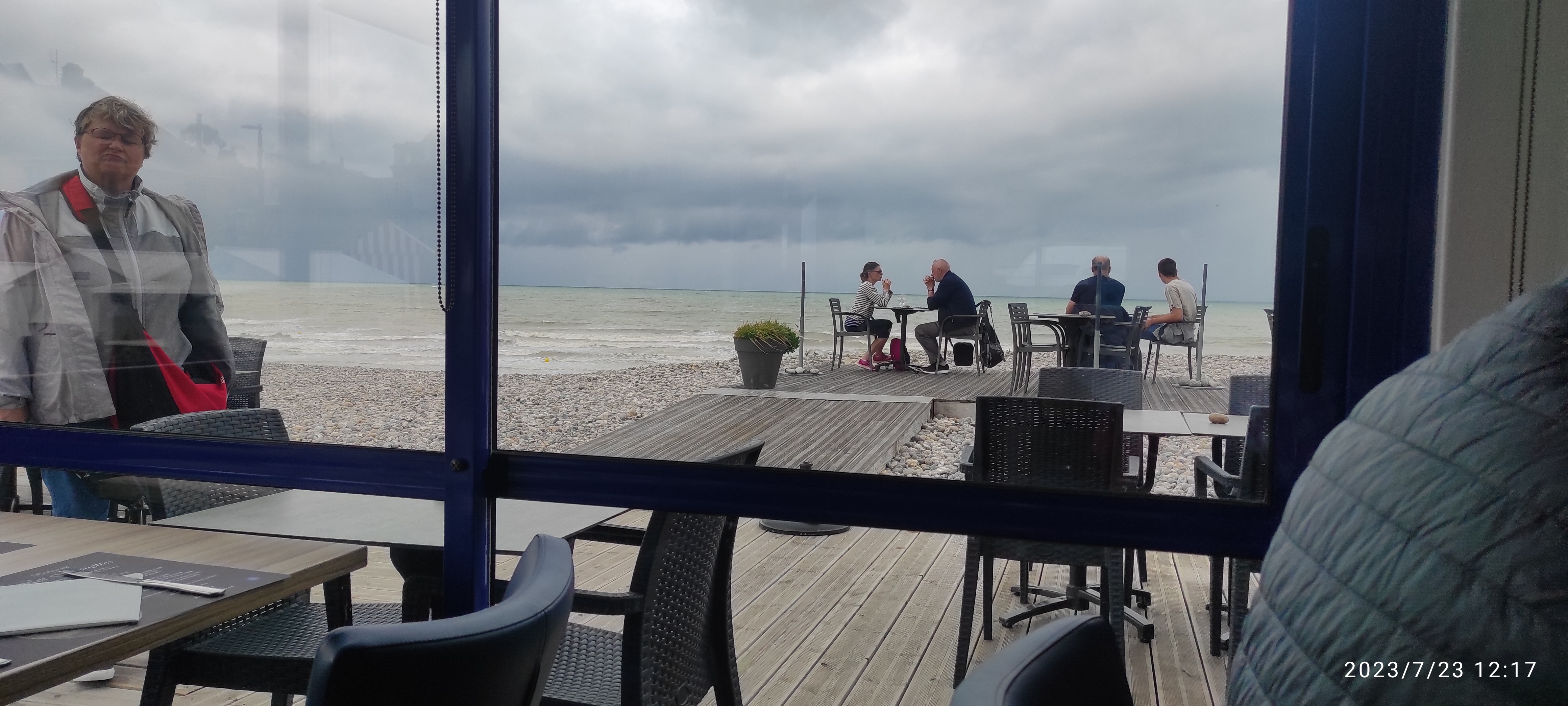 Belle vue, mais ne tardez pas les places sont chères. Les moules frites à la normande étaient bonnes, mais arrêtez de mettre des morceaux de pommes, mettez y des lardons c'est tout aussi normand et bien meilleur. Surpris de voir aussi une taxe terrasse à 40 cts pas personne.....