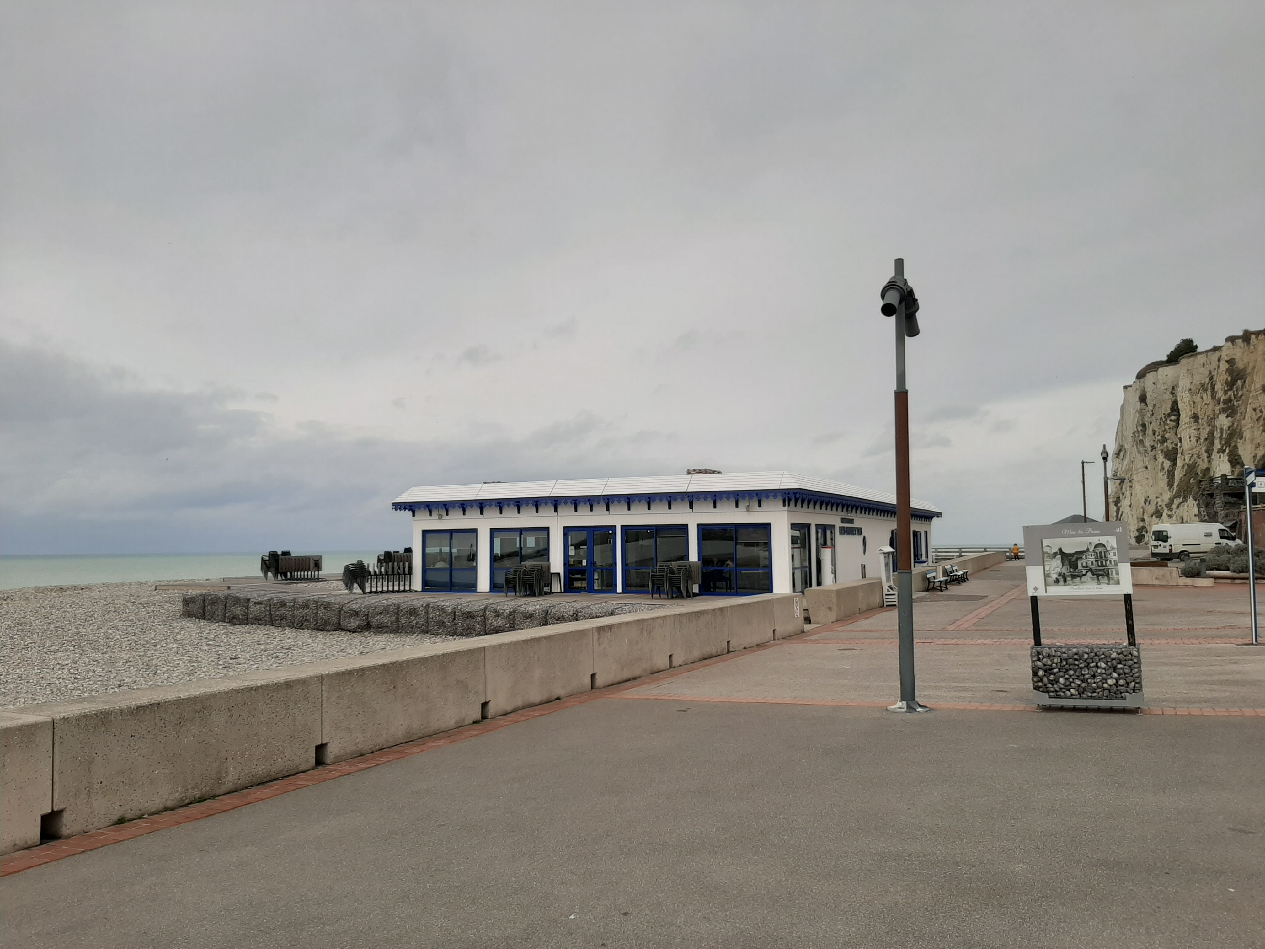 Très bon emplacement au pied des falaises vue superbe sur la plage et la mer . Les moules sont un régal.ambiance et conviviale ou passer un très bon moment .