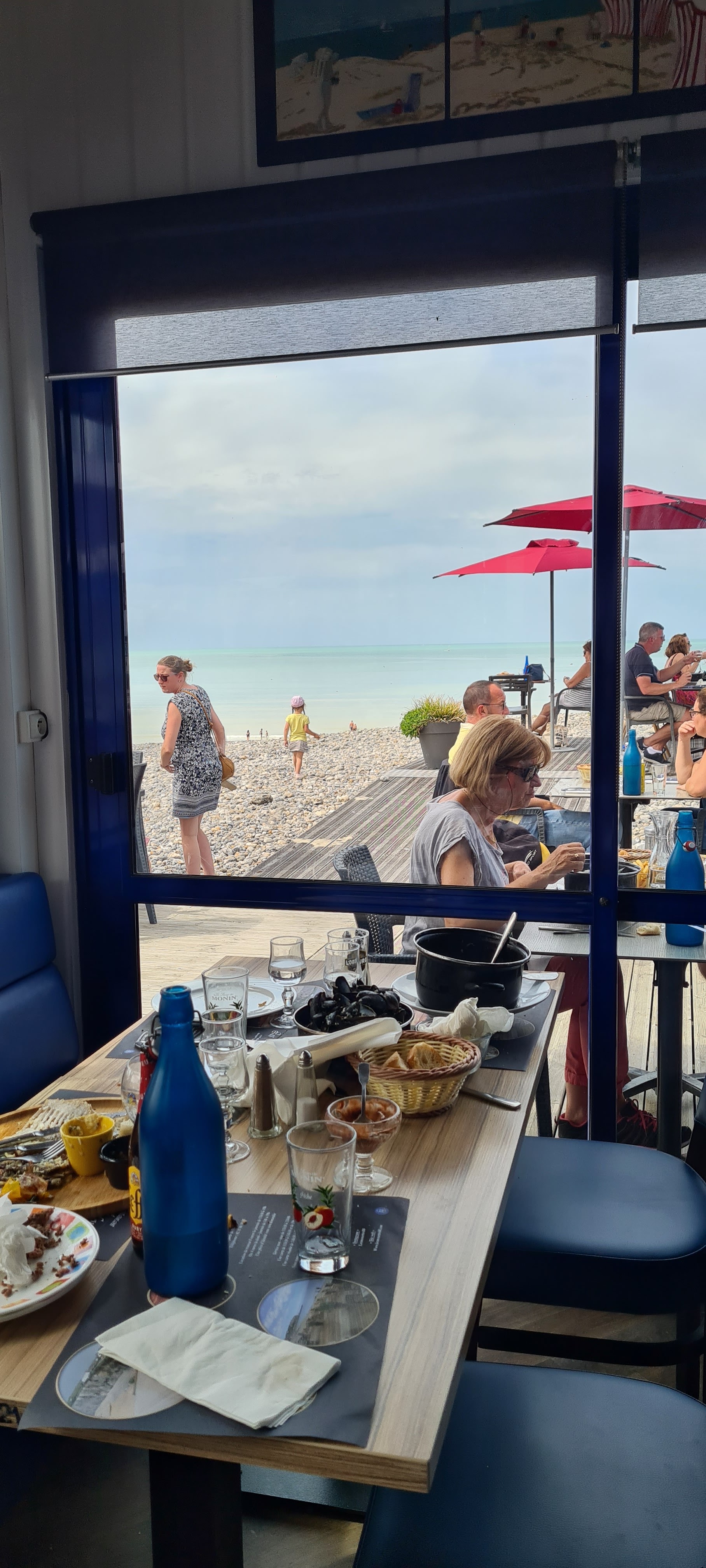 Excellent, super bon poisson frais grillé On a adoré Pensez à réserver pour manger à l’intérieur sinon mangez en terrasse avec vue sur la falaise du Tréport d’un côté et de l’autre la falaise de Mers-les-Bains, pieds presque dans les galets. Le personnel et super gentil et le restaurent et très propre.