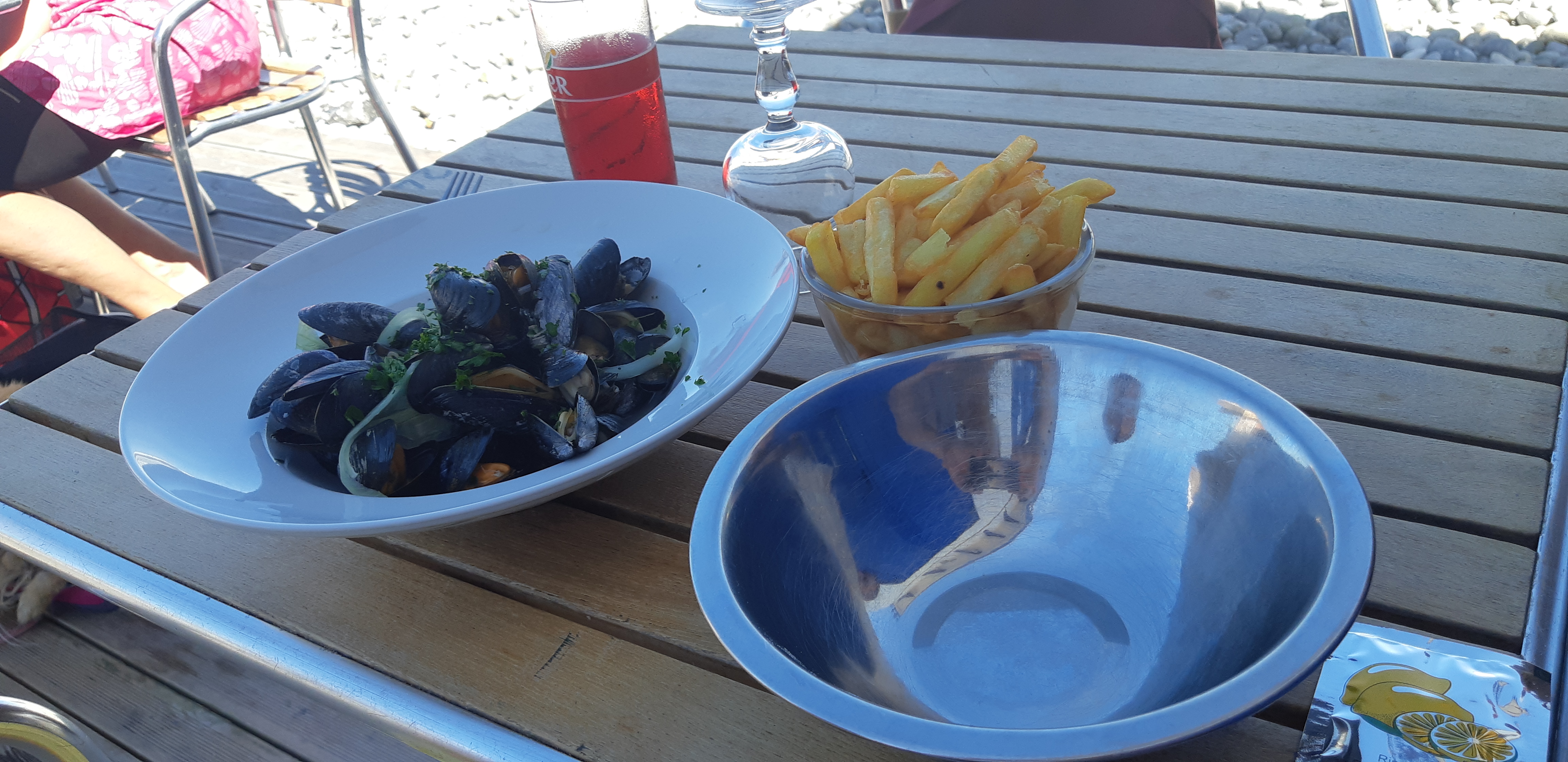 Très belle terrasse idéalement située pour assister au couché de soleil. Moules excellentes ! ... un bémol sur les frites...
