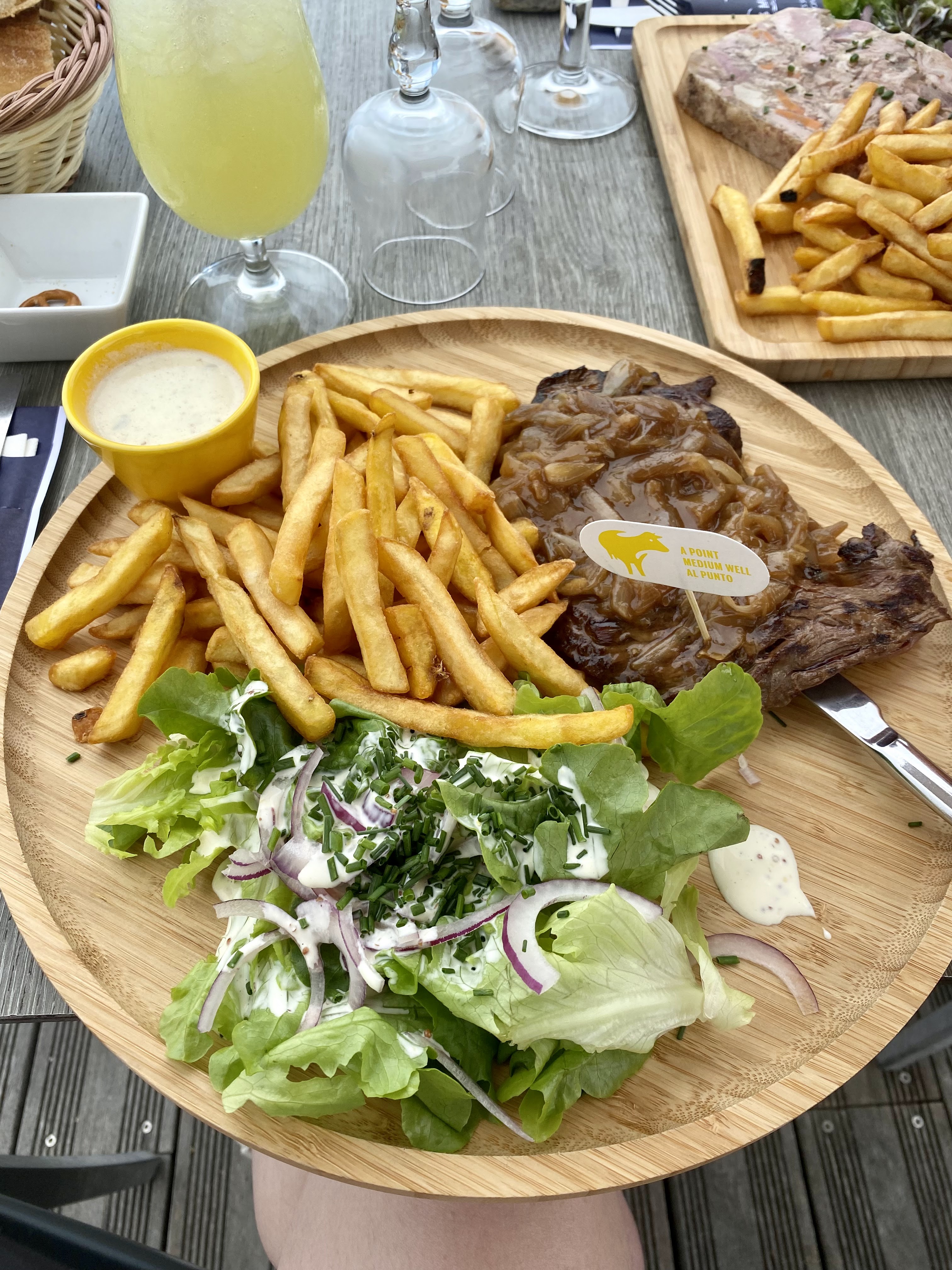 Repas en famille. Faux filet et moules au top. Bonne quantité au point de pas prendre de dessert. J'ai adoré le kir à la violette. Très bonne accueil et service.