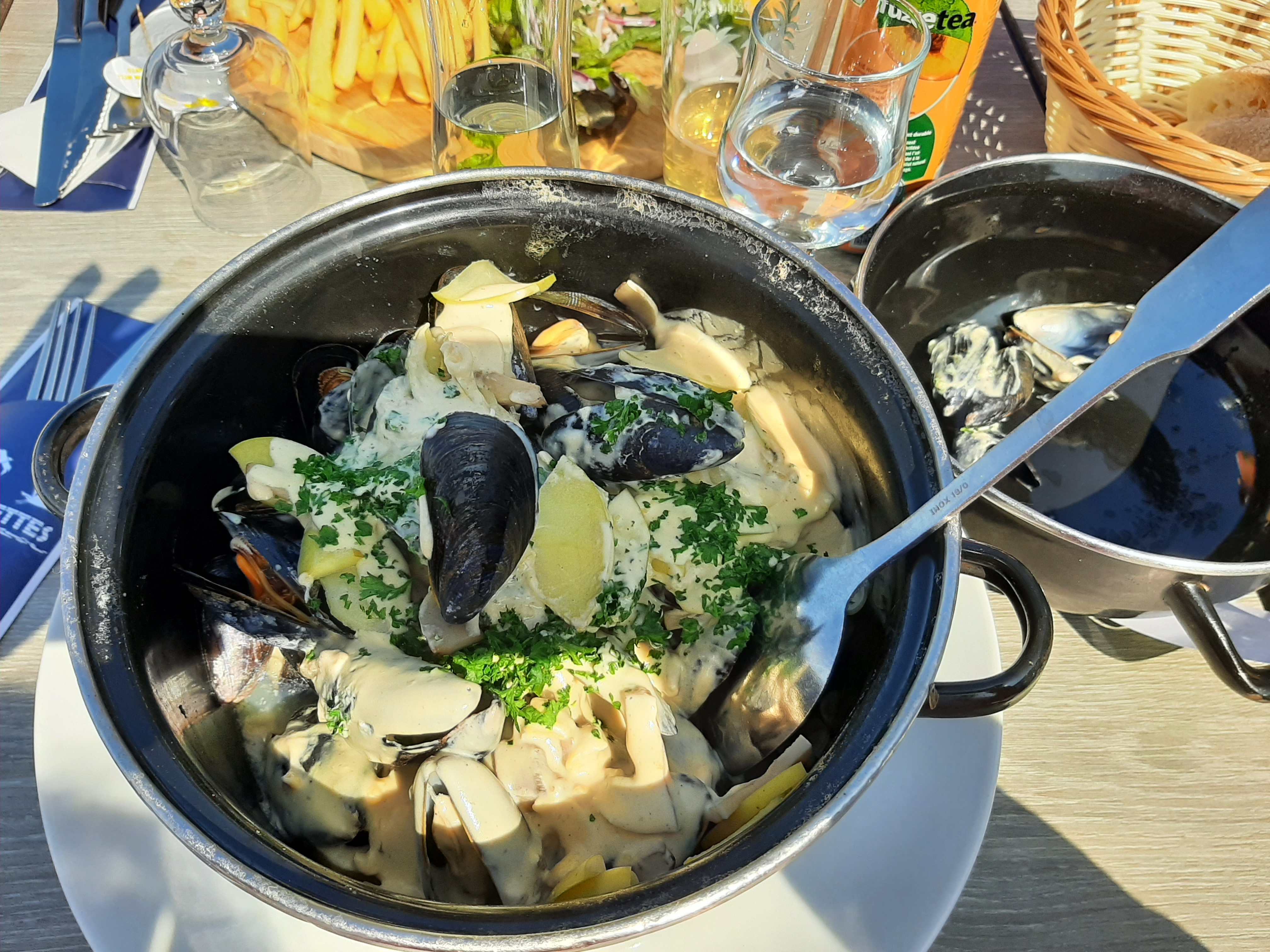Très belle terrasse, face à la mer. Un service impeccable et des menus à des prix raisonnable 👍 Nous avons tous pris des moules frites et c'était très bon.