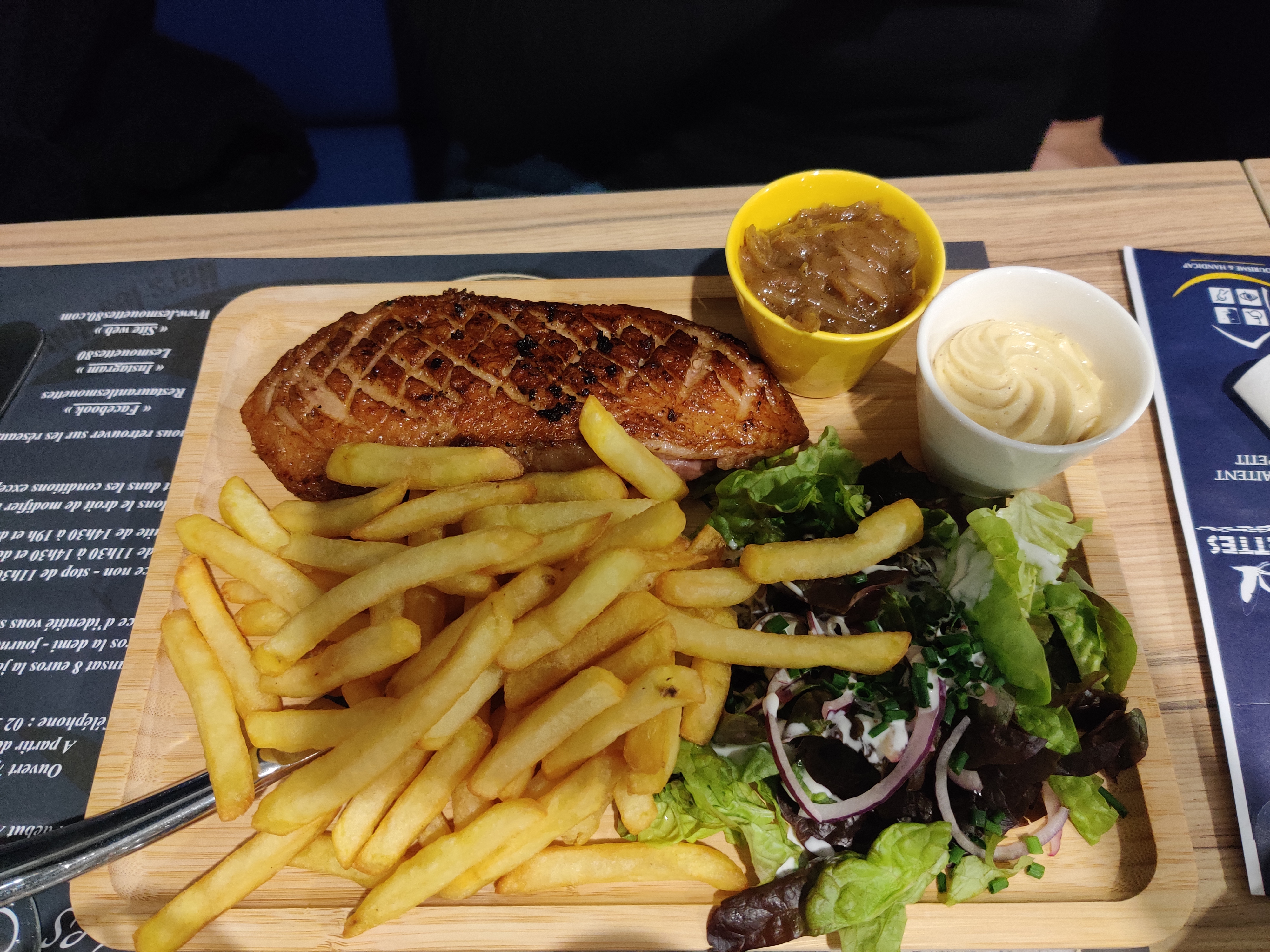 Terrasse fantastique, plats du jour bons, service efficace. Au soleil c'est très agréable. Avec du meilleur pain et des frites fraîches ce sera parfait.