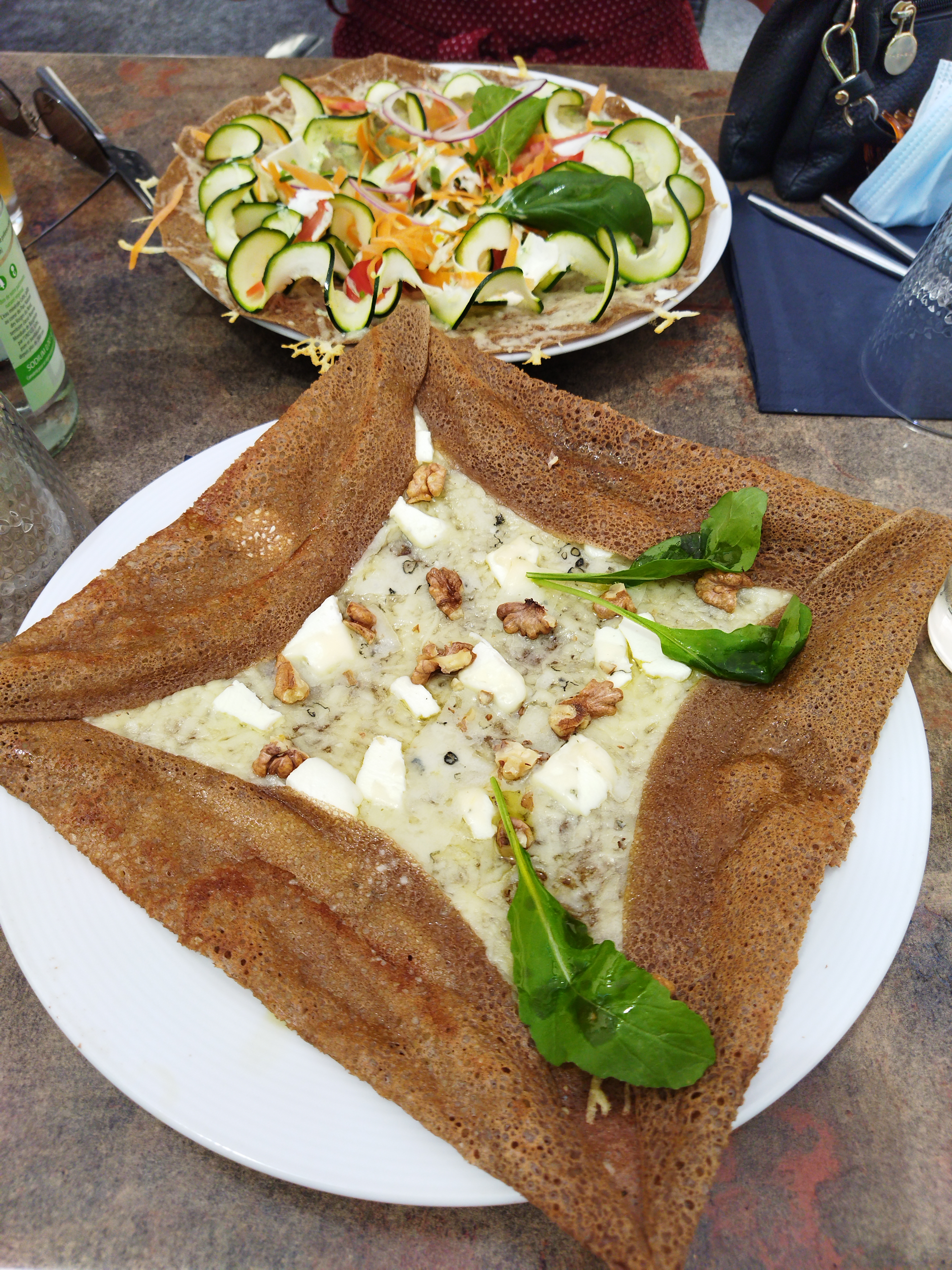 La cuisine est bonne (crêpes bios, je recommande le cidre avec) mais personne ne porte le masque. Je note quand même la présence de gel hydro-alcoolique à l'entrée.