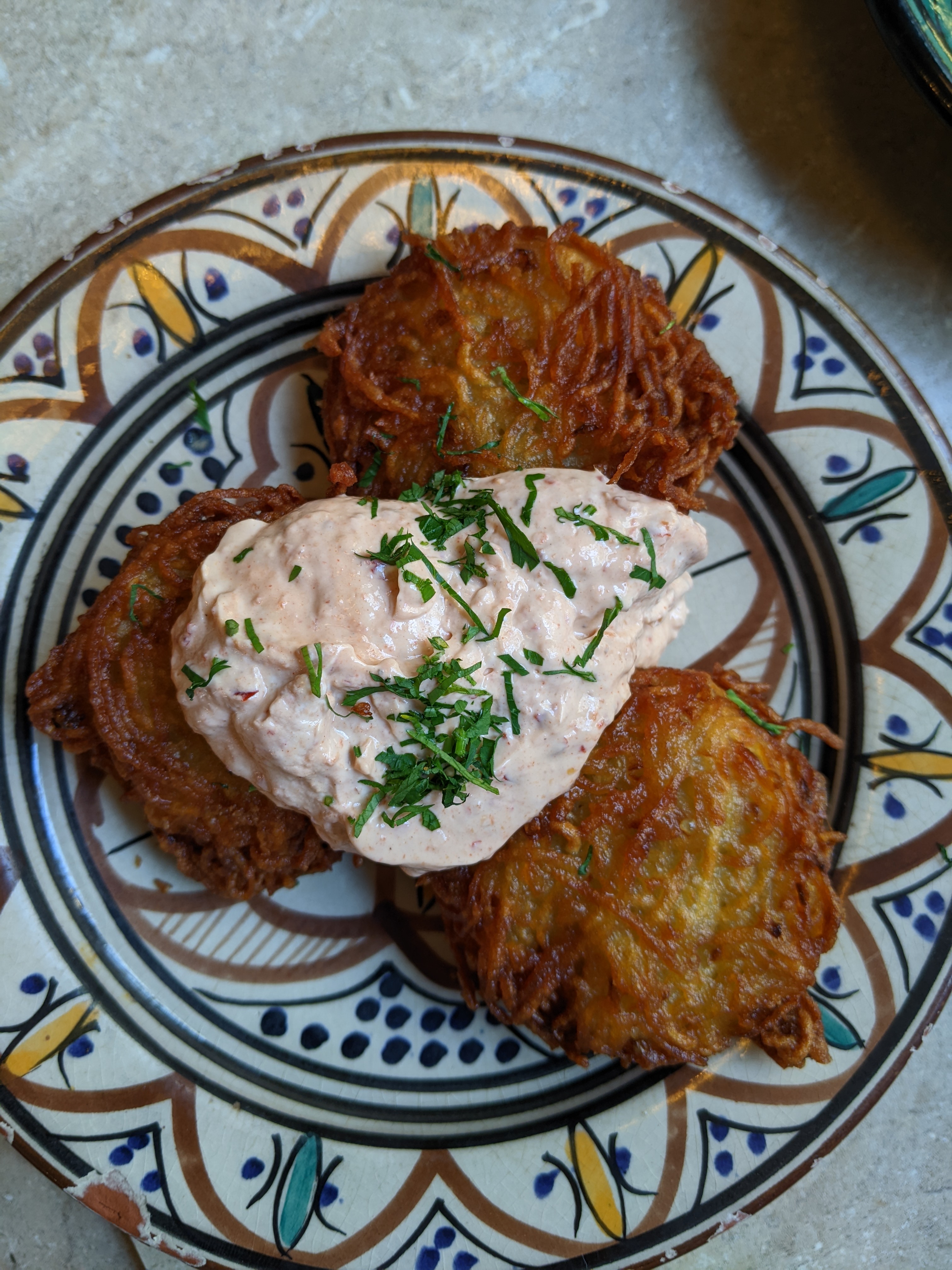 De très bonnes bouchées méditerranéennes à partager. J'ai particulièrement aimé le houmous et les latkes. La limonade maison était très rafraîchissante.