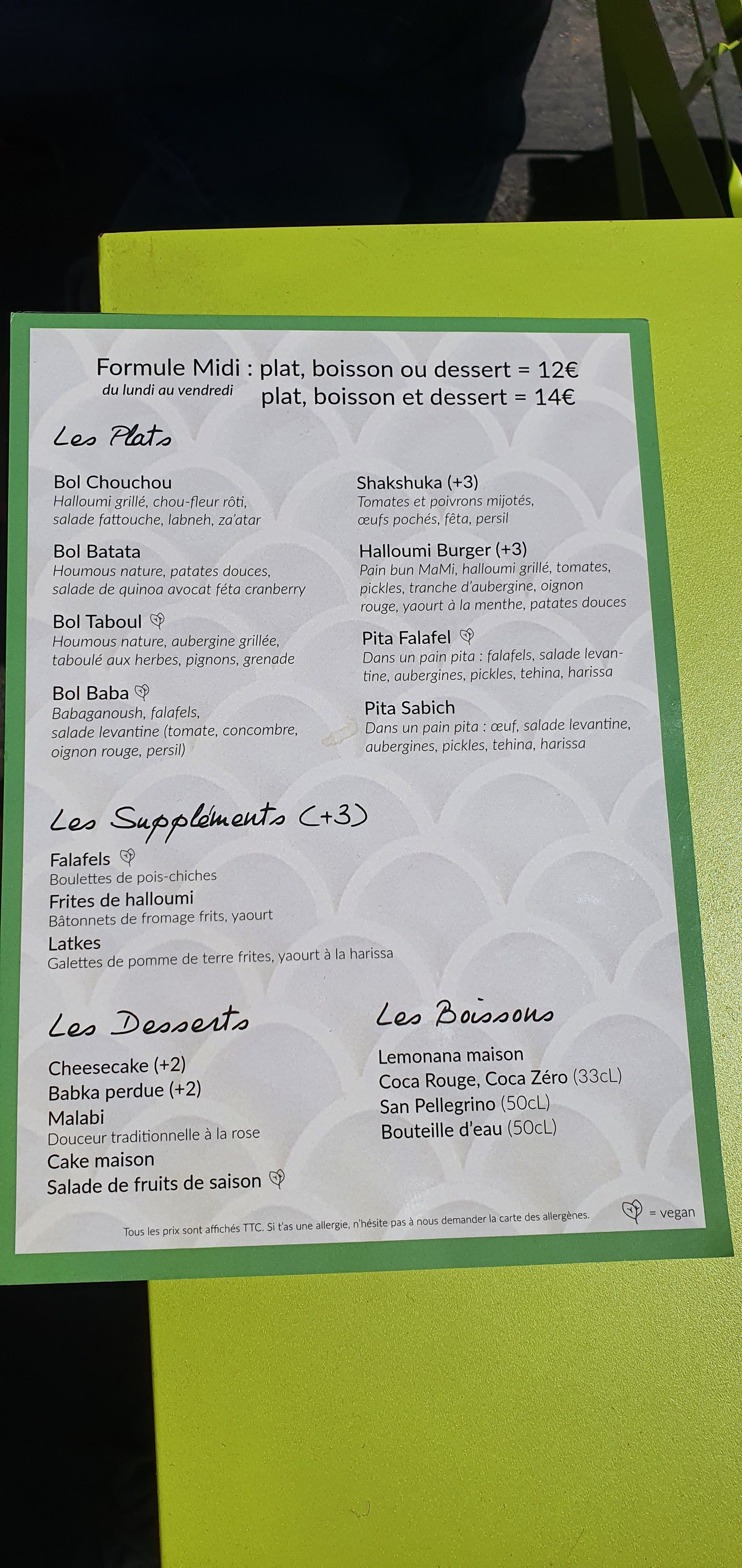 Découverte du jour et je suis très ravi. C'est une adresse végétarienne où l'excellence du Hoummous n'a d'égale que la sympathie des serveurs