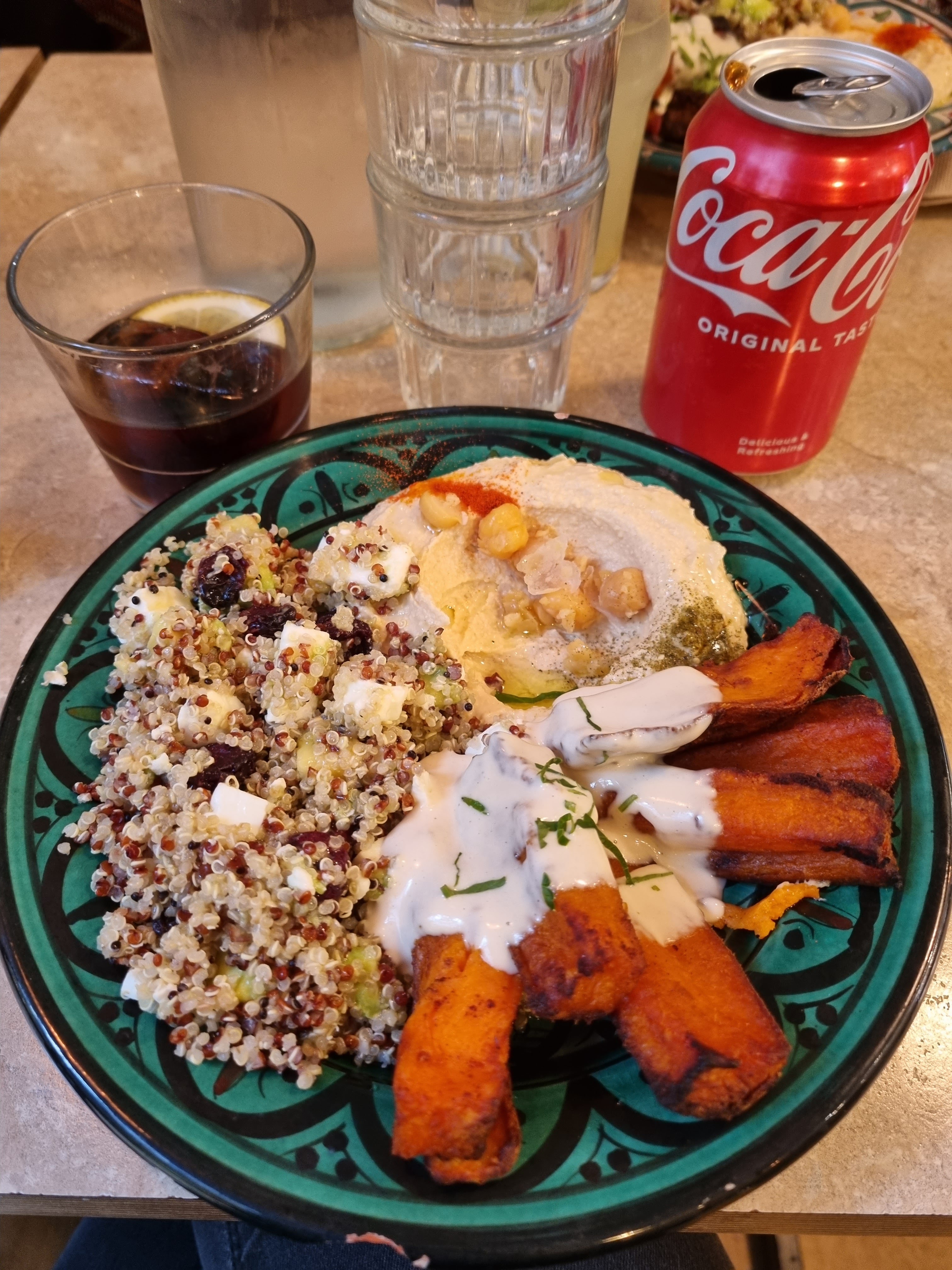 Pas mal. On a beaucoup patienter pour la prise de commande et le service mais l'équipe est adorable. Babaganoush goûteux. Salade Fattoush assez petite mais bonne. Le burger au halloumi était généreux. Jolie terrasse. On se sert des épices en self service au comptoir.