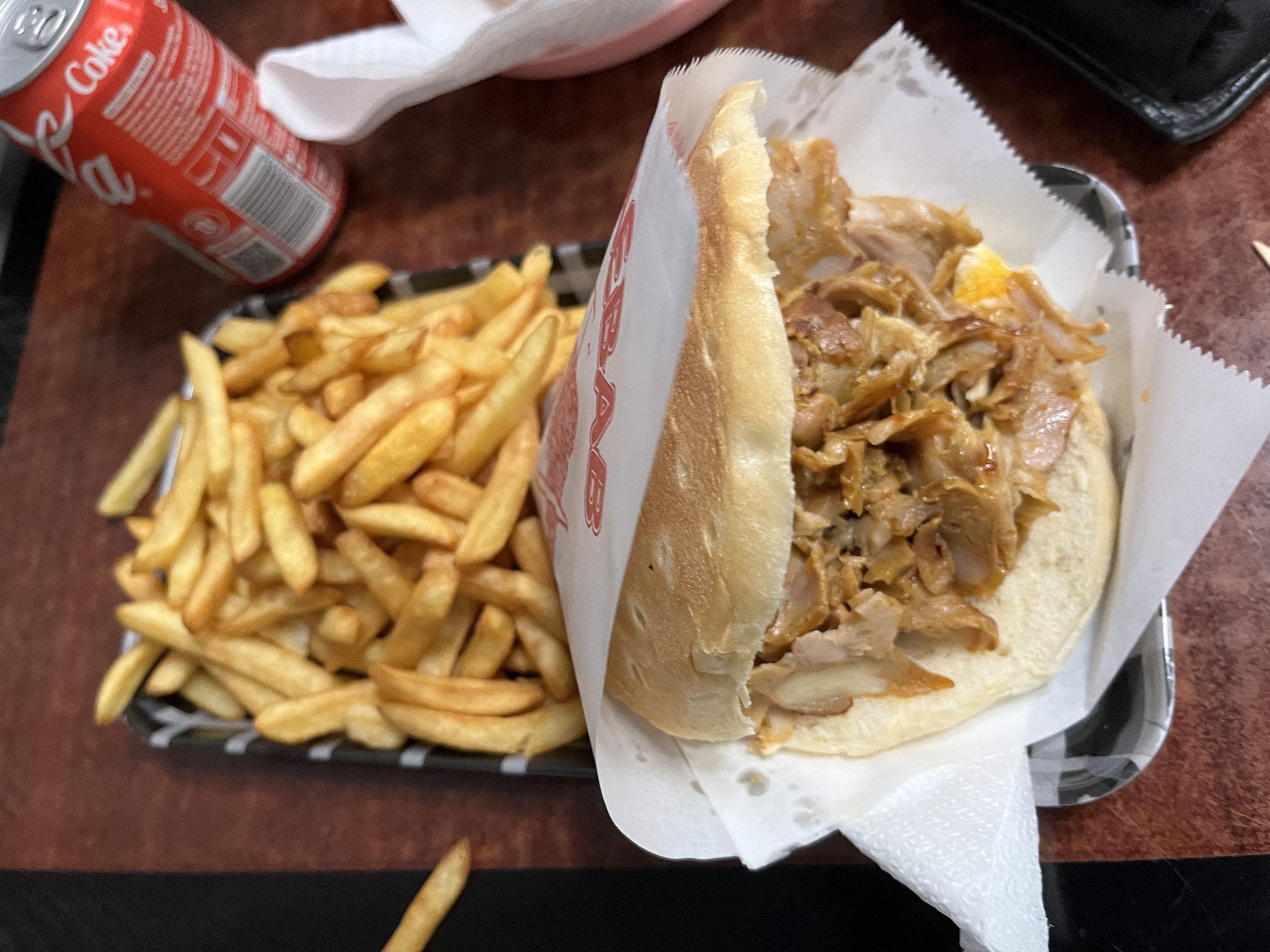 Dommage que sa a beaucoup changé La viande c'est de la graisse Piment il y en avais pas Beaucoup de sauce demandé et la sauce à couler au fond du sac Franchement déçu
