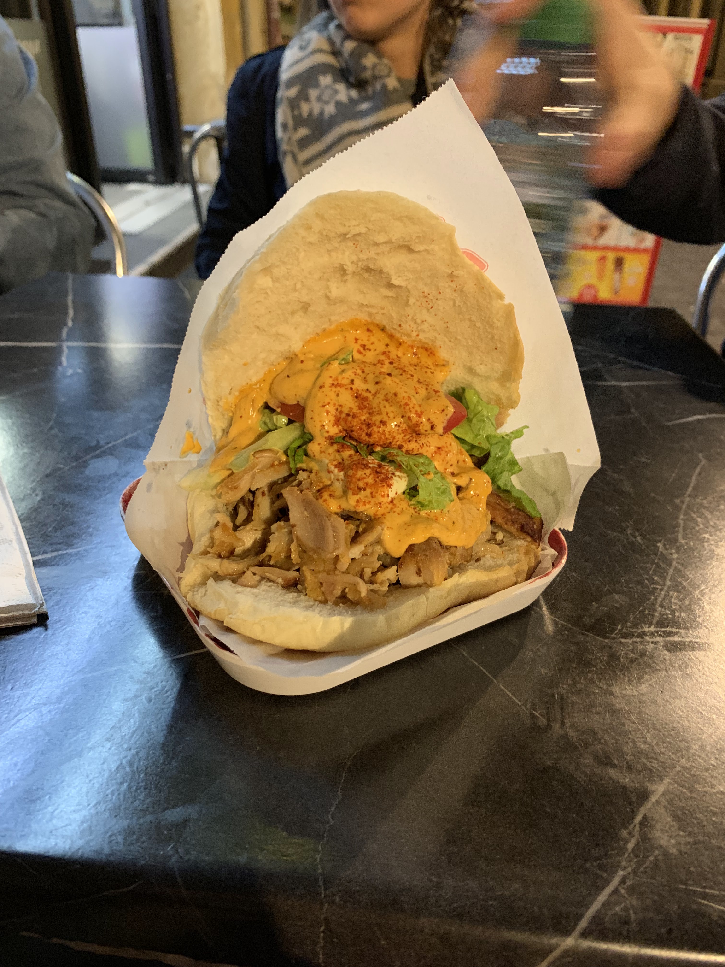 C'est carré (très bien ) dans ce kebab tu te sens en confiance et après le super truc chuigomme à la fin pour malaxer la machoir