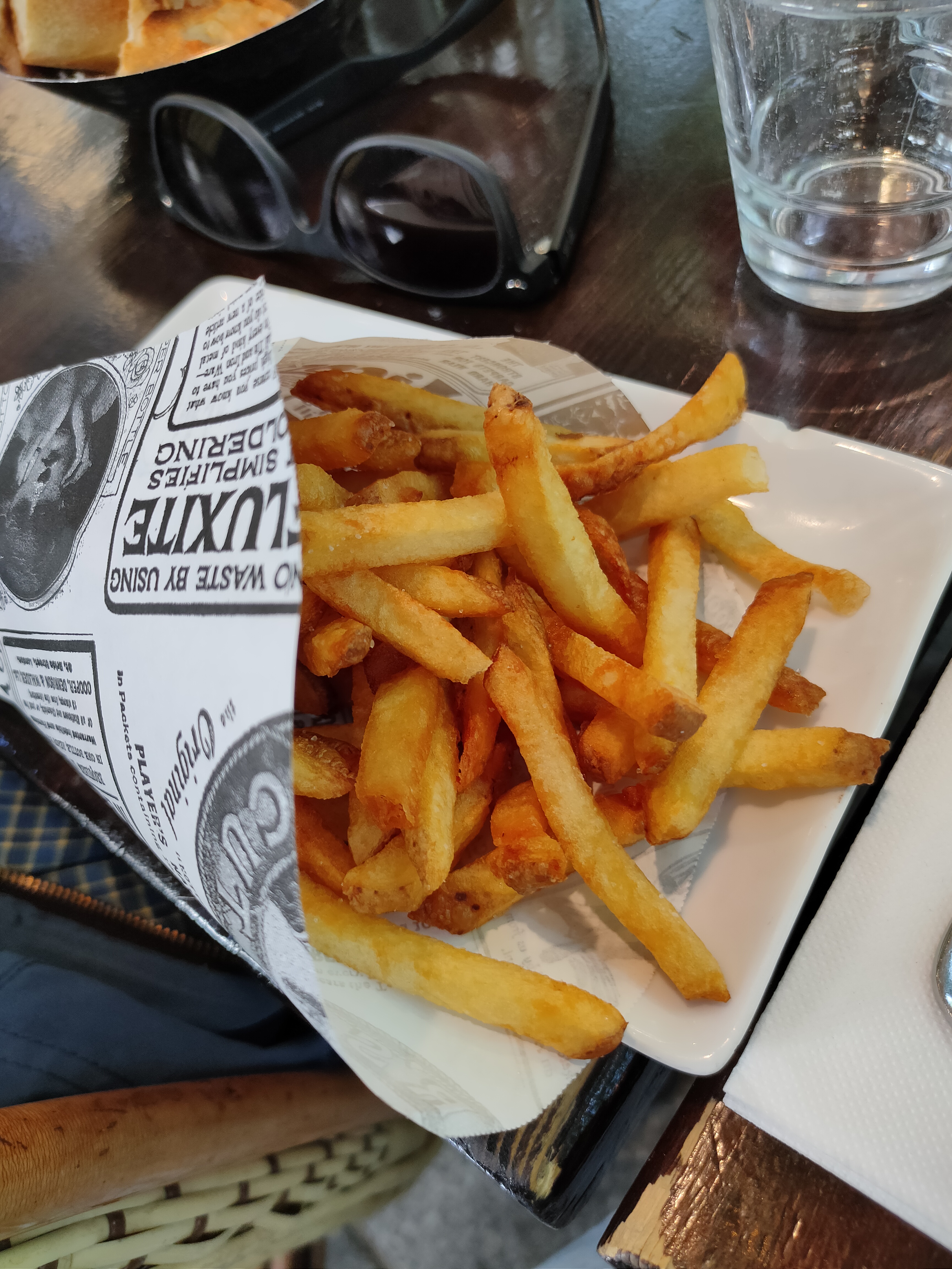 Bon accueil, serveuse agréable et efficace. Frites à partager en plat généreux et prix abordable en plein centre de Paris !