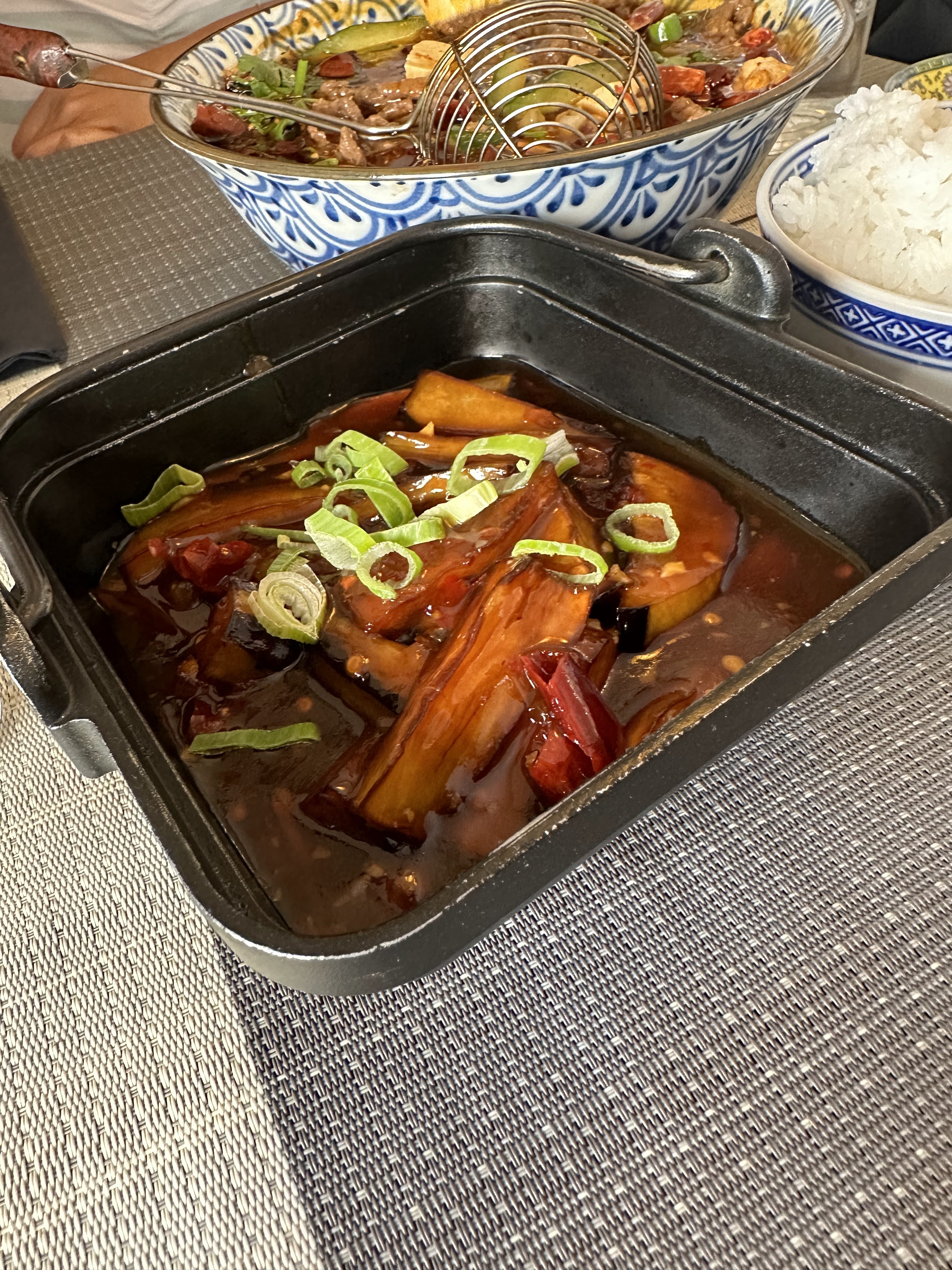 J'aime bien ce restaurant. J'y vais souvent à midi en semaine. Ils ont deux plats végétariens à base d'aubergine ; je préfère de loin celui en marmite avec un bol de riz. Mais que les mangeurs de viande se rassurent, la plupart des autres plats comportent de la viande ou du poisson.