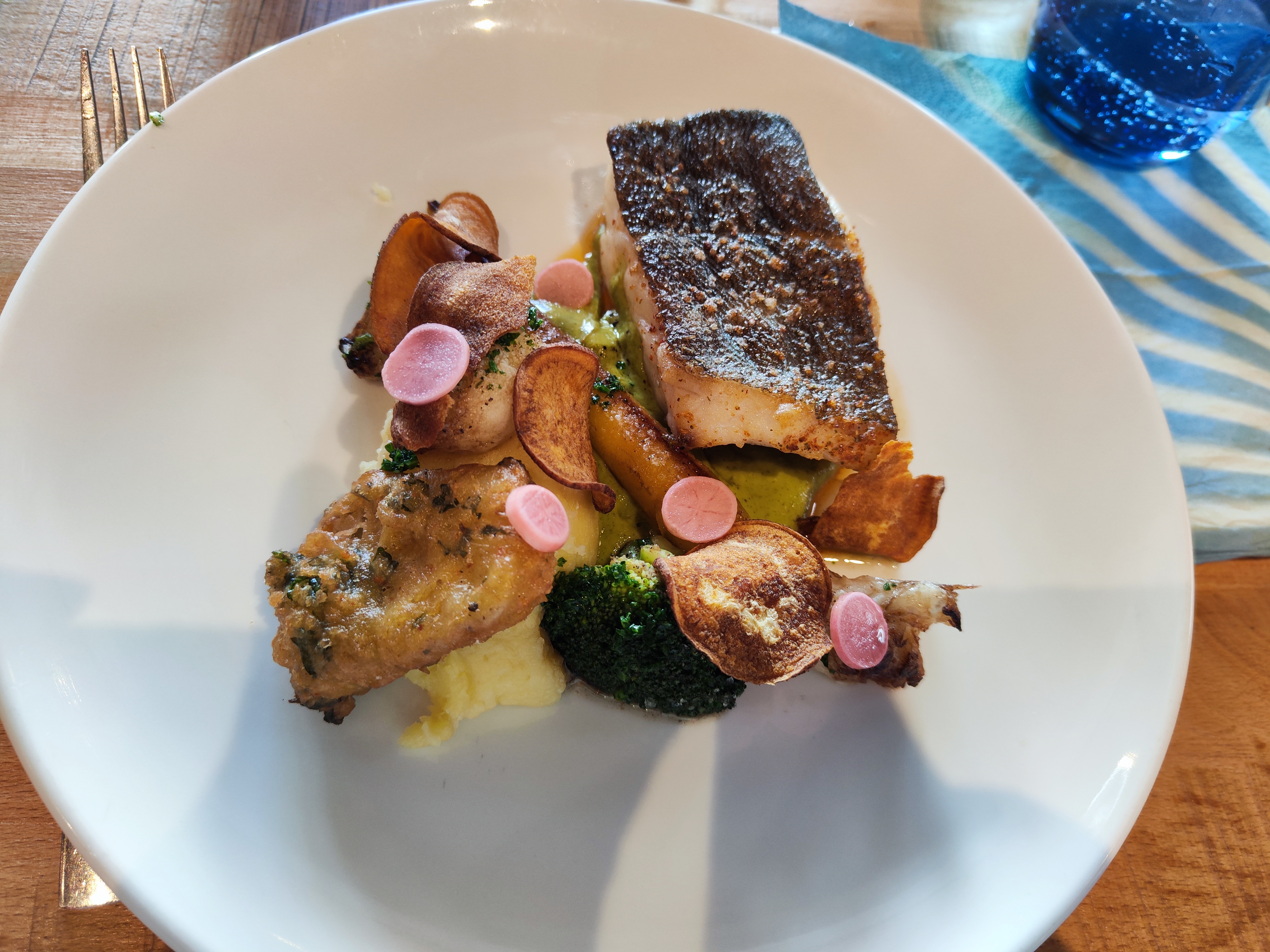 Un cadre très agréable, un accueil chaleureux et une serveuse disponible et à l'écoute. Nous avons choisi du cabillaud et du bar. Une belle présentation des plats, une cuisson parfaite notamment pour le cabillaud que nous aimons nacré et des assiettes généreuses. Le mille-feuille caramel pecan était super ! Une belle surprise et bonne adresse à découvrir.
