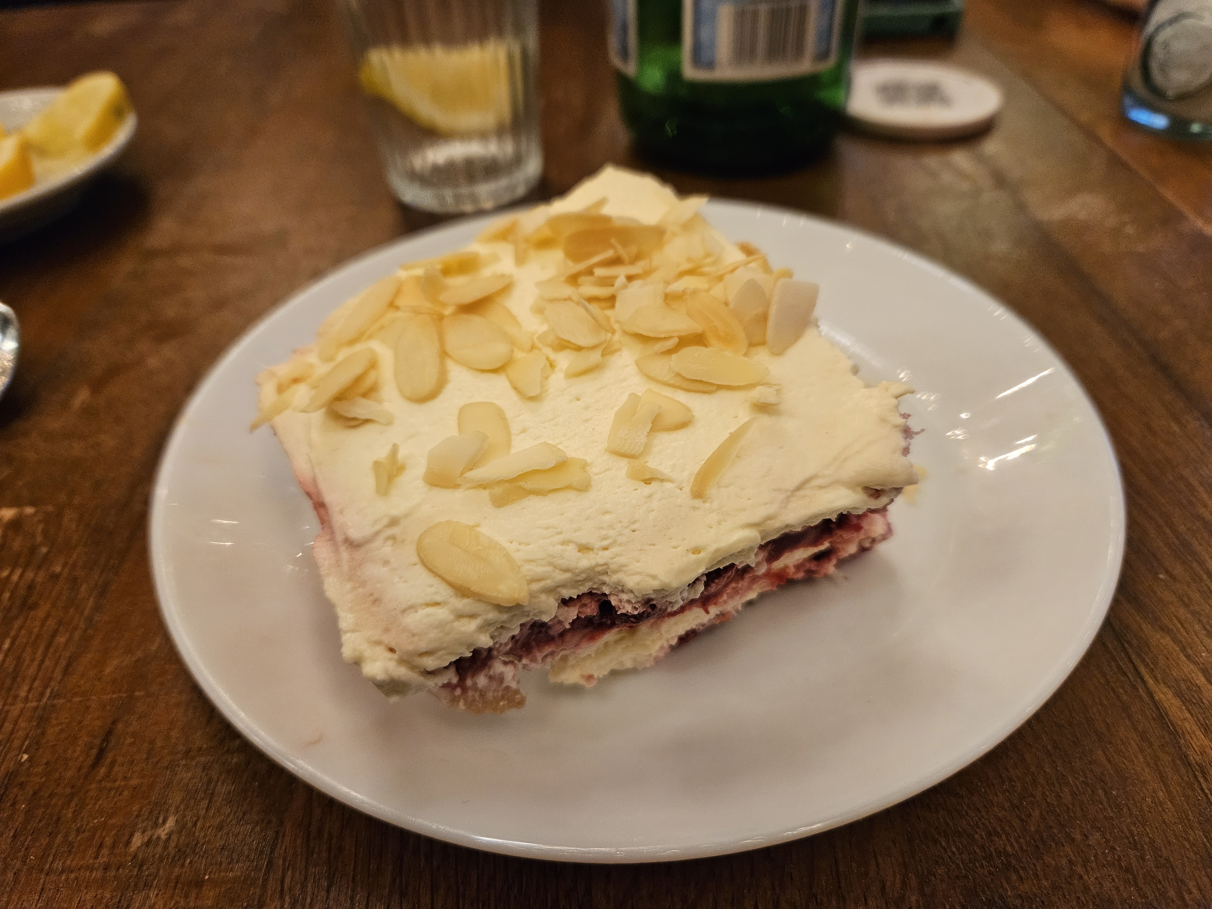 Nous avons pris les gnocchis. A premier goût, le plat est correct mais je trouve qu’il y a beaucoup trop de sauces ce qui devient lassant à force. La qualité du service est moyen. Un des serveurs a renversé le petit bol contenant du parmesan et n’a pas daigné nettoyer un minimum notre table !!