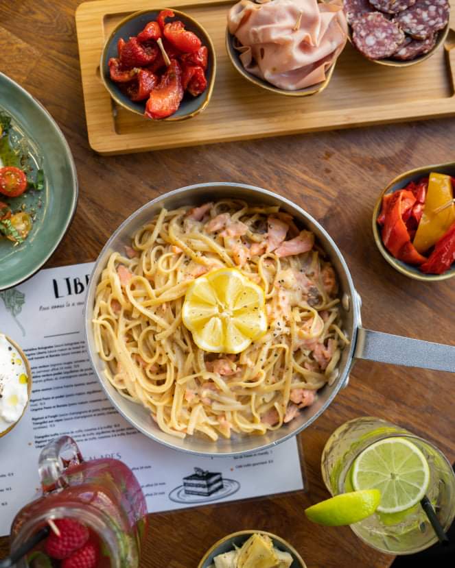 Je vous partage mon expérience au restaurant Le Liberta. De passage à Paris, je me suis arrêter ici dans un cadre agréablement jolie avec un personnel très agréable, accueillant et souriant. Proposant un large choix de plat italien, j’ai opter pour une burrata en guise de mise en bouche ( très bonne 😋 ), puis j’ai continuer avec des linguines au saumon, qui est le coup de cœur de l’équipe ainsi que le miens. Dans la plupart des restaurants nous avons le droit à quelques bouts de saumon qui se cours après mais la, à la fin il ne me rester que ça, une quantité énorme qui séduiront les fanatiques de saumon ! En bref je vous conseilles d’y allez les yeux fermer 👀.