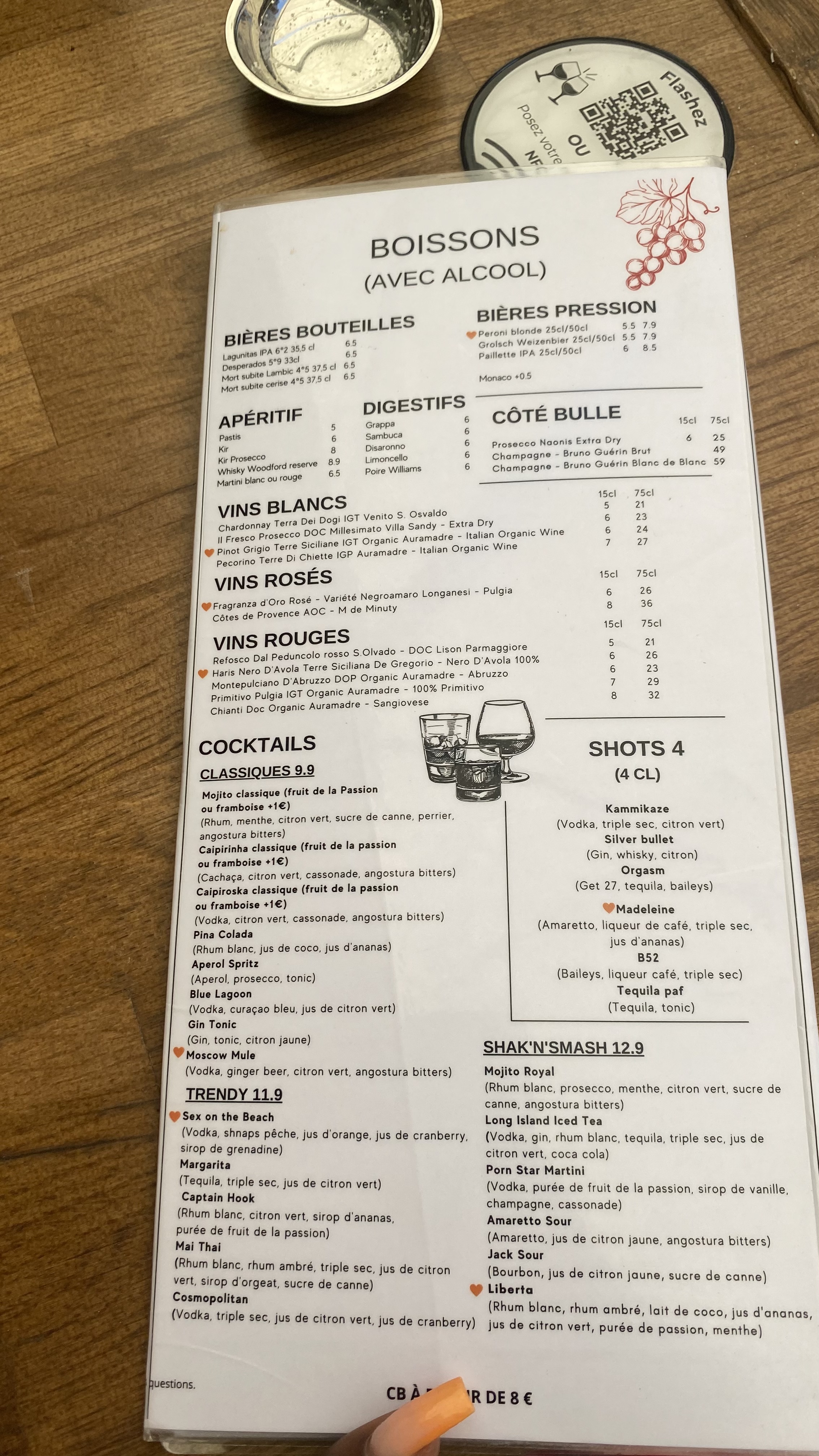 Endroit incroyable. Les portions sont énormes. Les cocktails sont très savoureux. Le personnel est sympathique. Les prix sont raisonnables pour le centre de Paris.