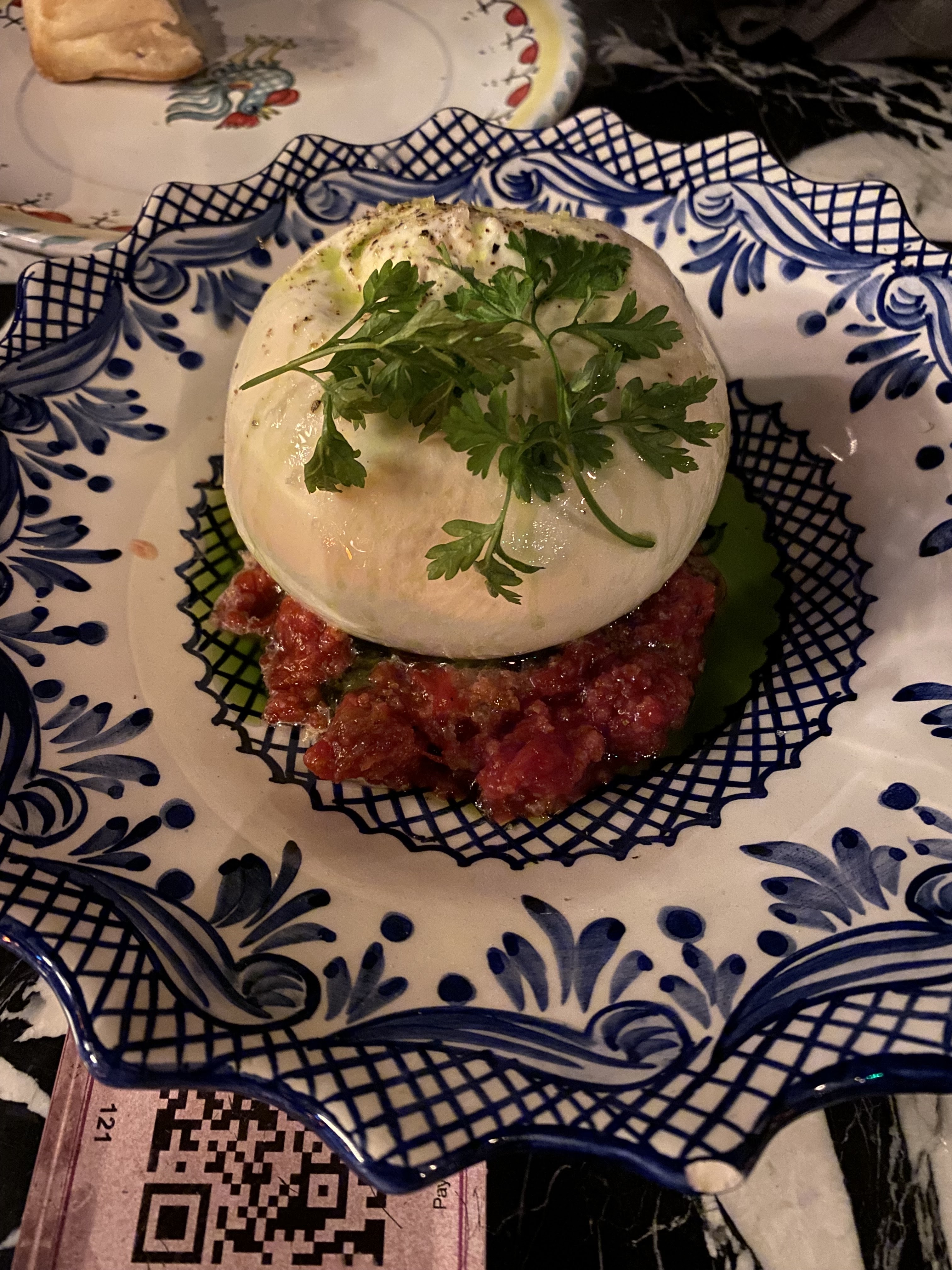 Nous avons dîner dans ce restaurant pour un anniversaire nous étions dans la petite salle en bas ! Les plats sont excellents, le service magique avec des serveurs très attentionnés. Mention spéciale pour la burrata, les pâtes à la truffe, et aubergines avec la stracciatalla fumée. Une bonne découverte on vous le recommande !