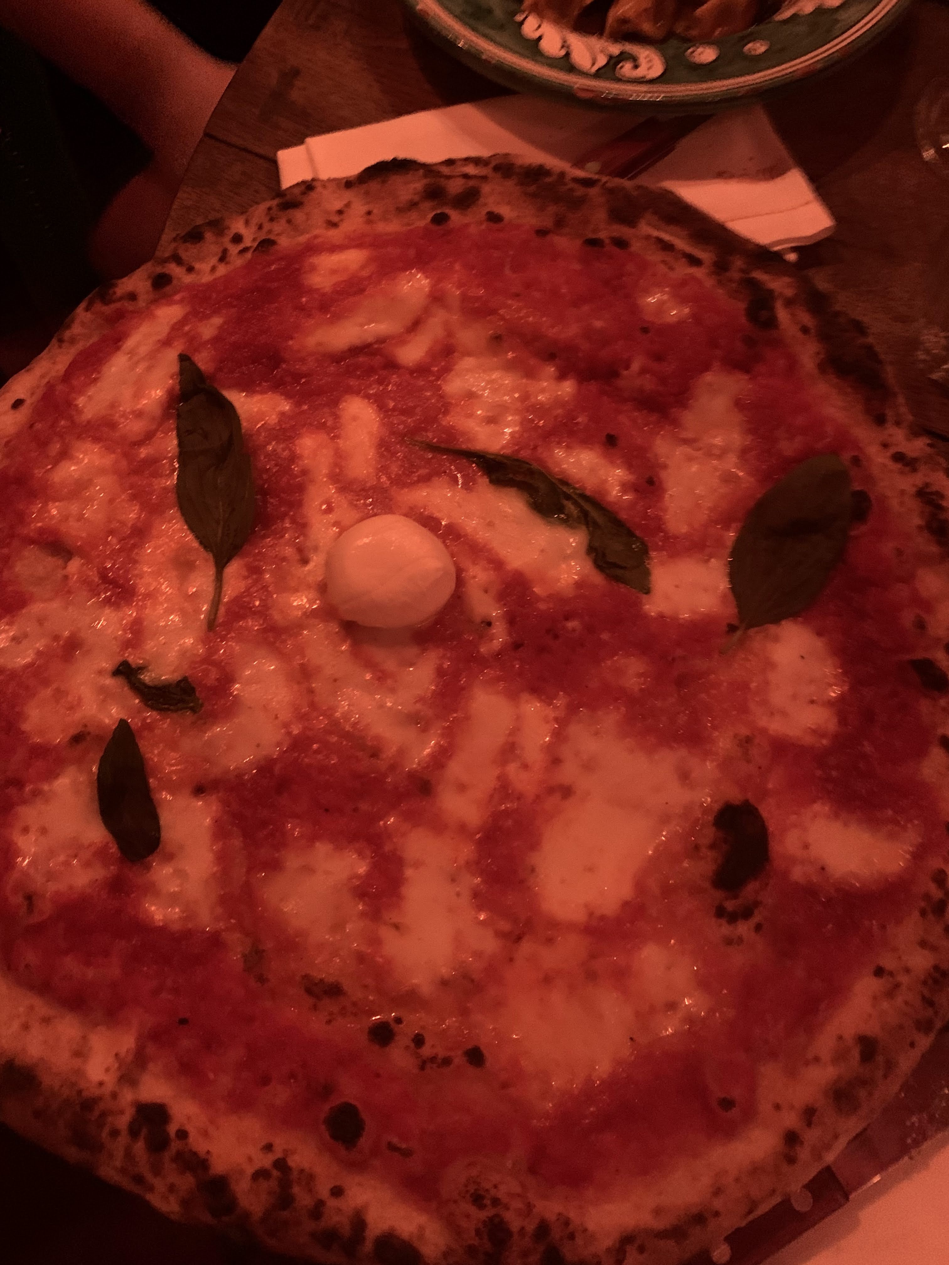 La pizza était bonne mais manquait de sauce tomate ainsi que d'un filet d'huile d'olive. La mozarella ne semblait pas être une fior di latte. La pâte est très bonne et le reste aussi. Le prix n'est pas justifié (18€) pour la pizza en question. Je reviendrai peut-être goûter la Margherita.