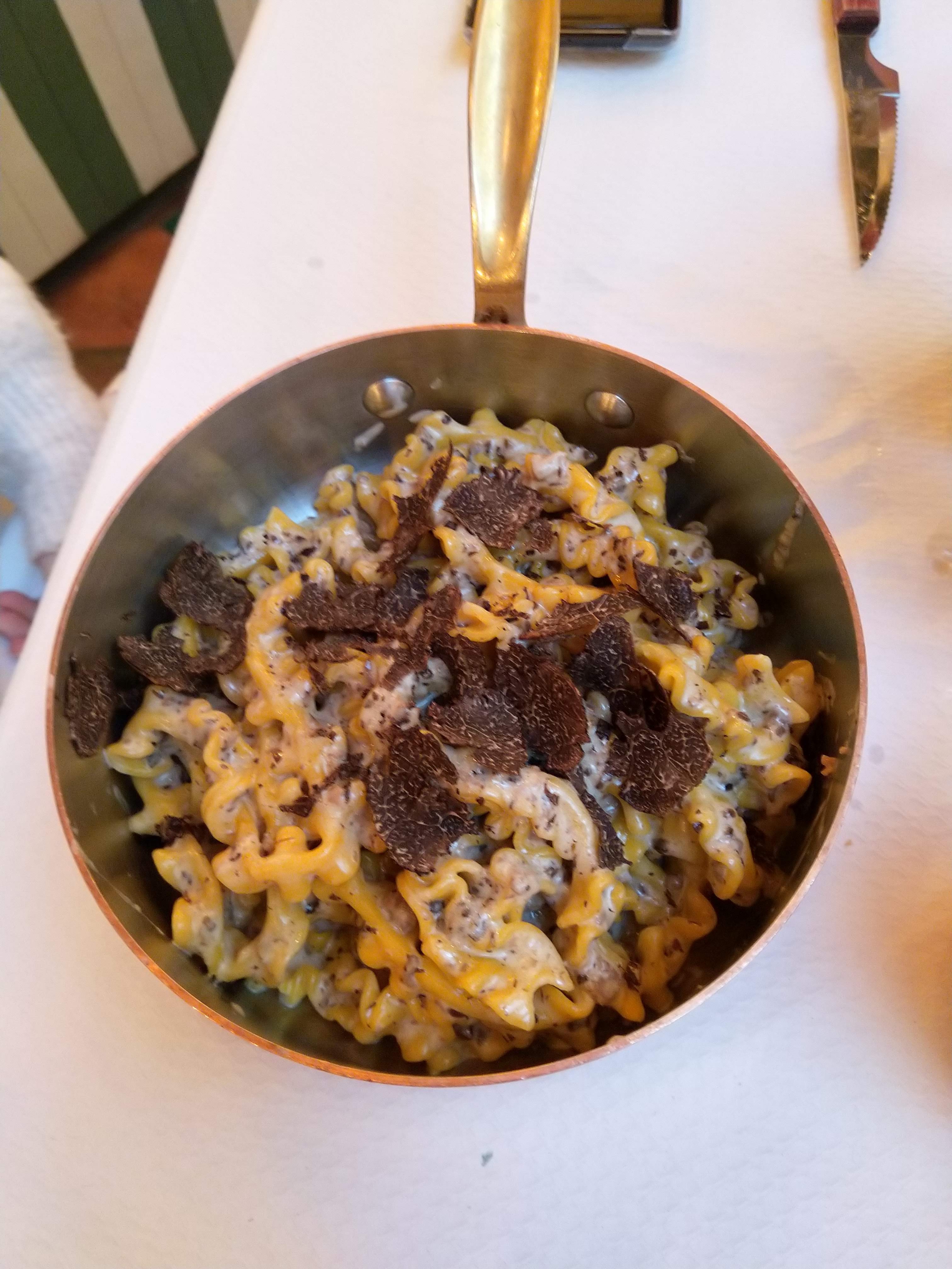 Très bonnes pâtes à la tomate et à la truffe. La pizza aussi était un délice et le tiramisu super bon.